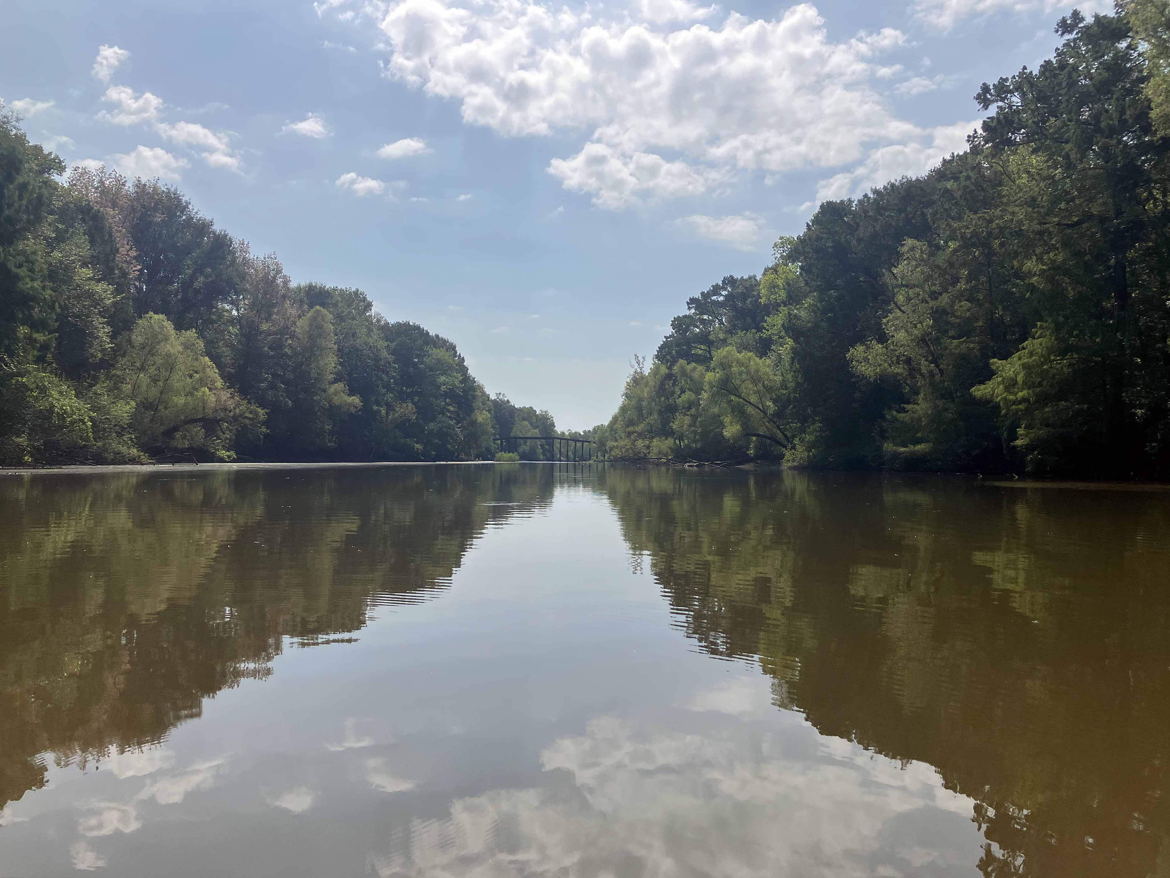 The above kayak paddle trip begins at the boat launch in the Sherburne WMA/Atchafalaya NWR at the start of Big Alabama Bayou. The launch is south of Krotz Springs LA just below 190 on road 975, which is the east side of the Atchafalaya River. There is a primitive campground here (and shooting range), although I stayed at Lake Fausse Pointe SP about an hour south. To use the boat launch you need an LA WMA access permit (available online) as well as the two part day permit (available onsite). The campsite requires a third permit, talk about big government. The route above is out and back, first up Bayou Close to the Iron Gate Road crossing, then down the Big Alabama to a point where the bayou branches. It was summer, and hot, and that was long enough. For this trip water levels were very low, and I wonder if it might be possible to do a Bayou Close loop route if levels were higher, but I don’t know. Lots of alligators, mostly in the water but a few in the shade along the shore. This is a flatwater paddle in a wide channel with nice scenery, not a swamp exploration paddle.