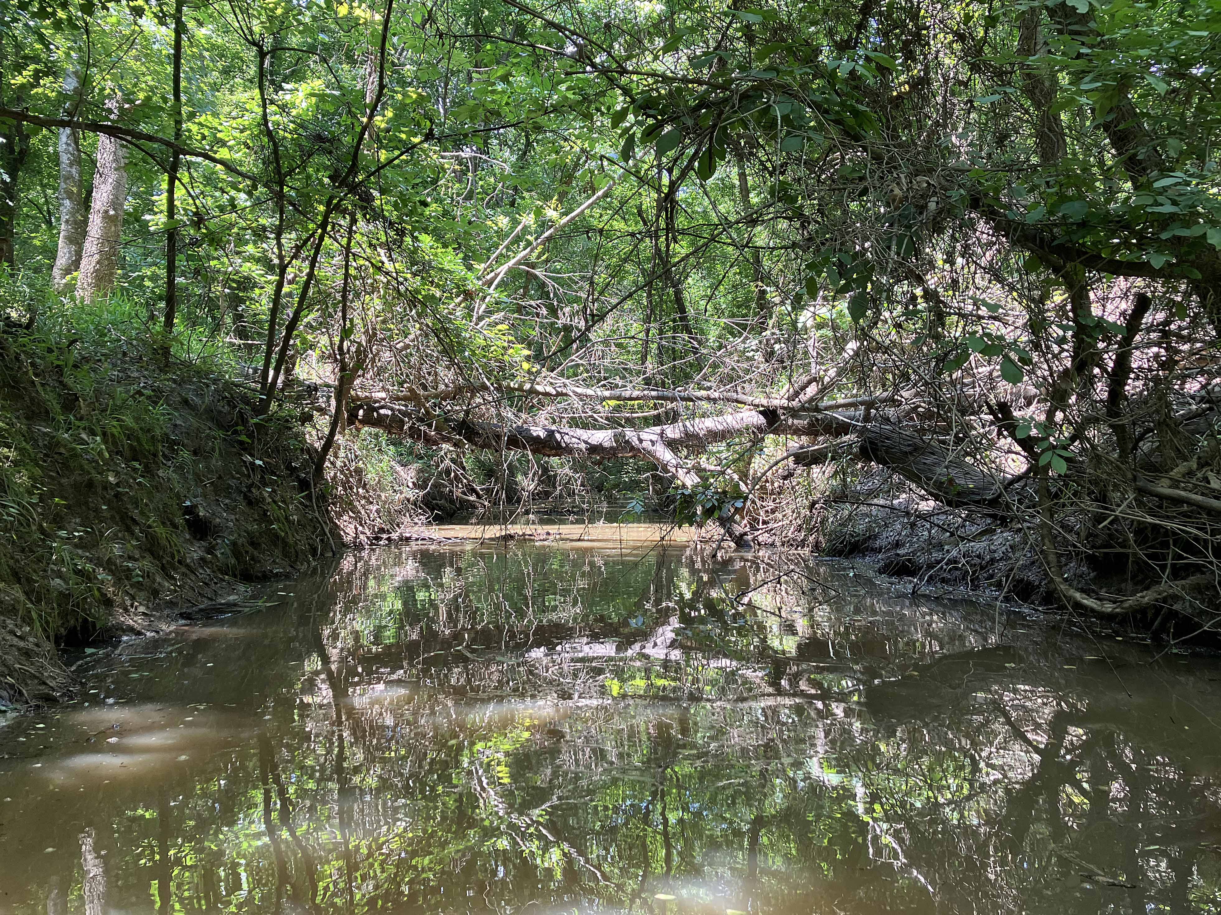 Above: The creek narrows quite a bit farther north; this would be at or near the turnaround point shown on the map.