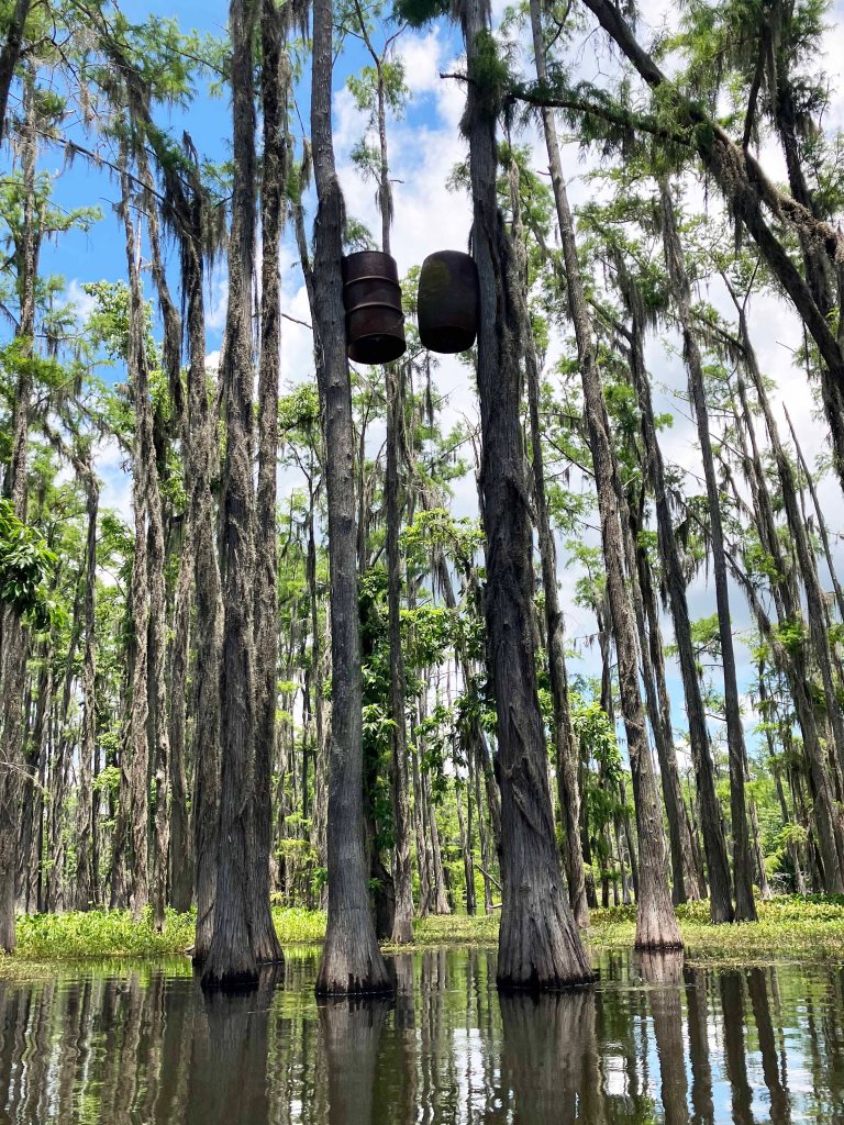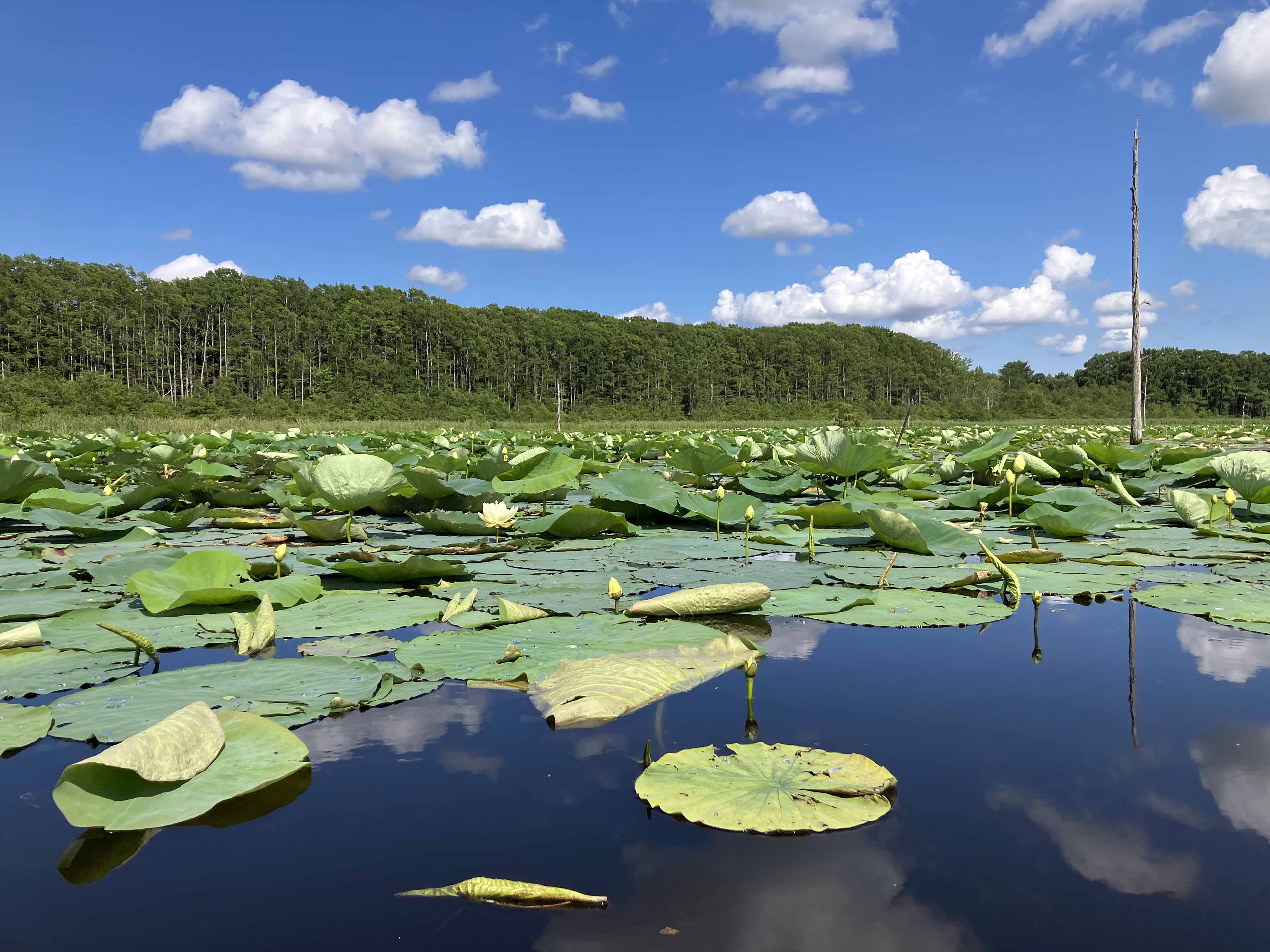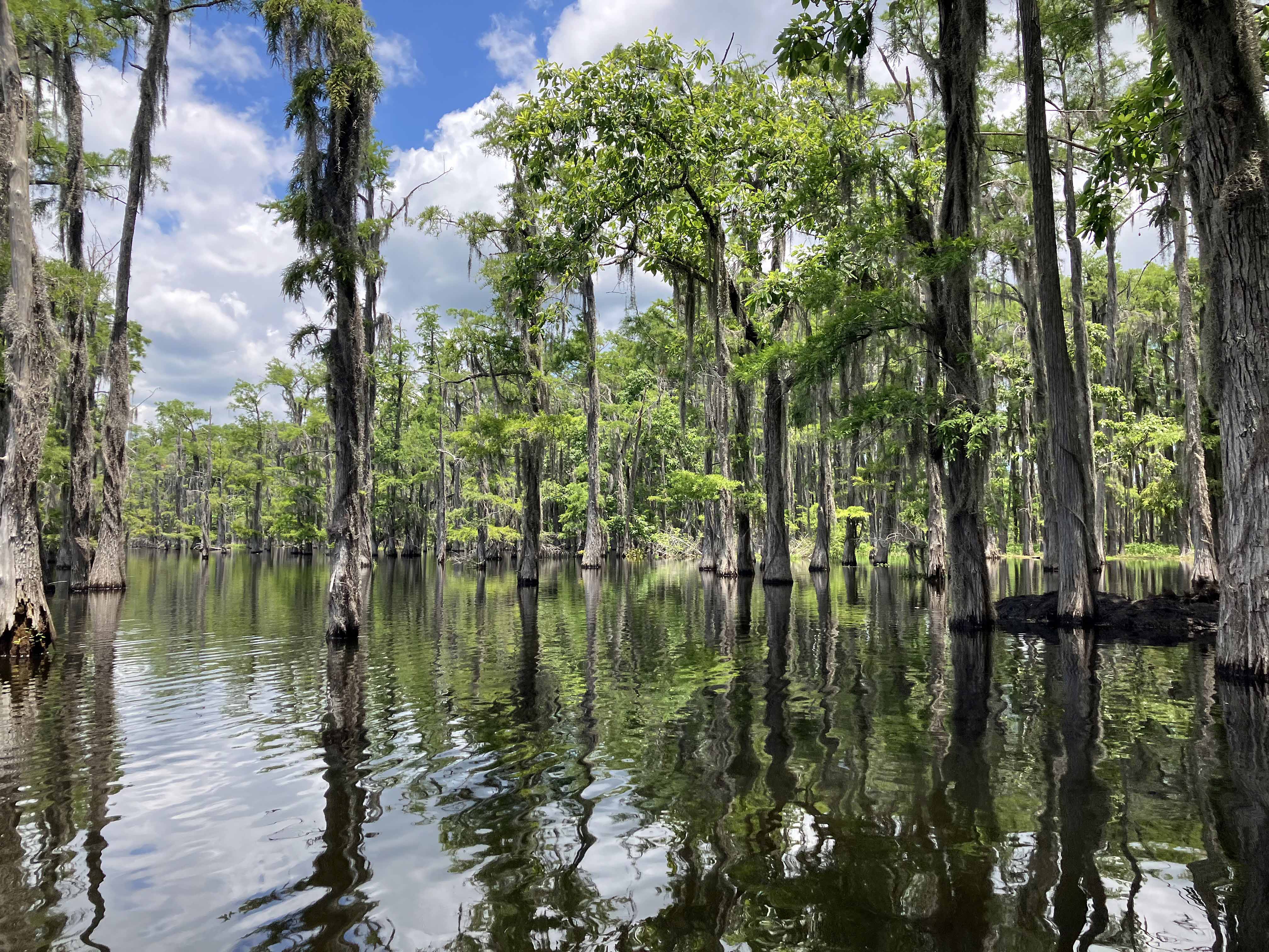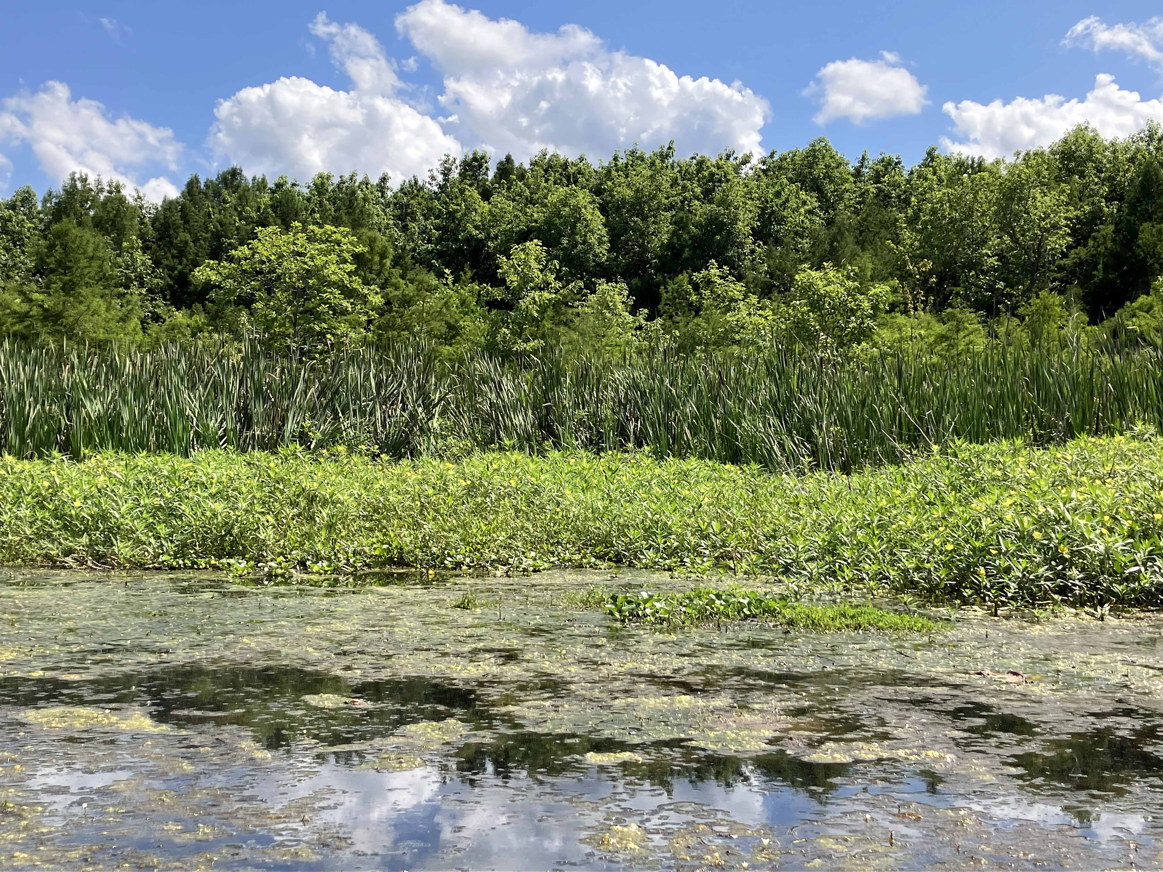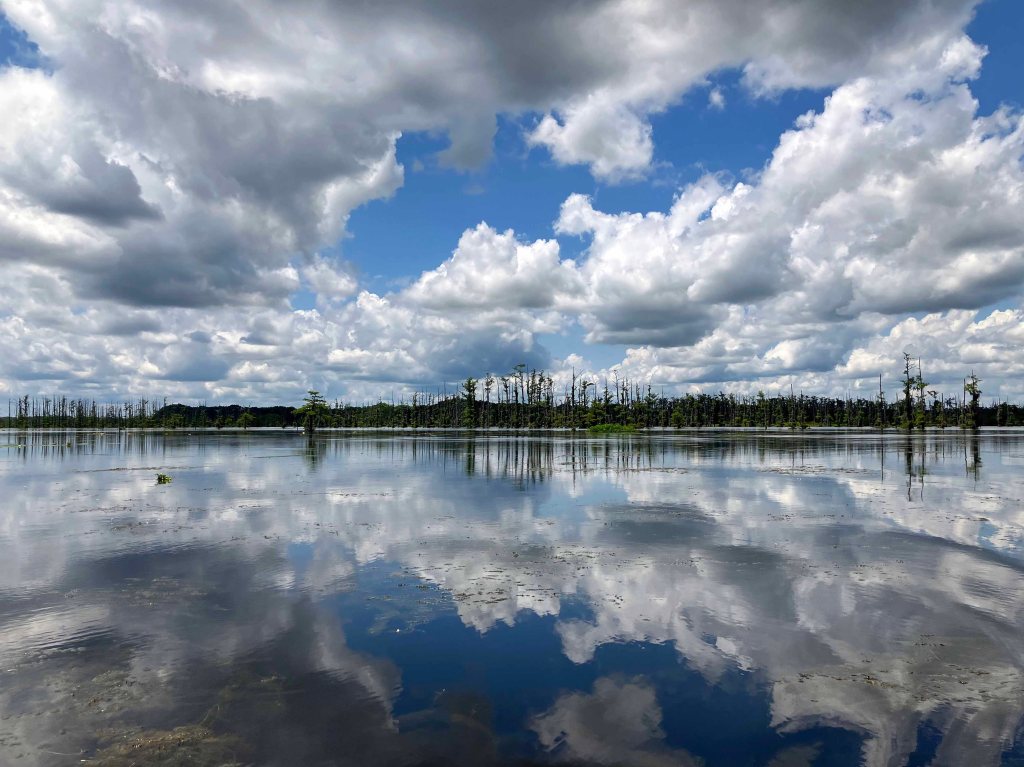 The kayak route in the above map explores the Black Bayou Lake NWR just north of Monroe, Louisiana. This is another option among many in the Monroe area including Corney Bayou, Chemin-A-Haut, and D’Arbonne NWR. The NWR has a launch at the north side close to the visitors center and you paddle out a long corridor formed by the lilies to get into the main lake. Some of the areas to the northeast were either off limits or were heavily congested with invasive vegetation. Still, there were quite a few nooks and crannies to investigate, and you can paddle out into the large lake portion of the refuge to the west. I had several alligator sightings, and the sky for this trip was spectacular.