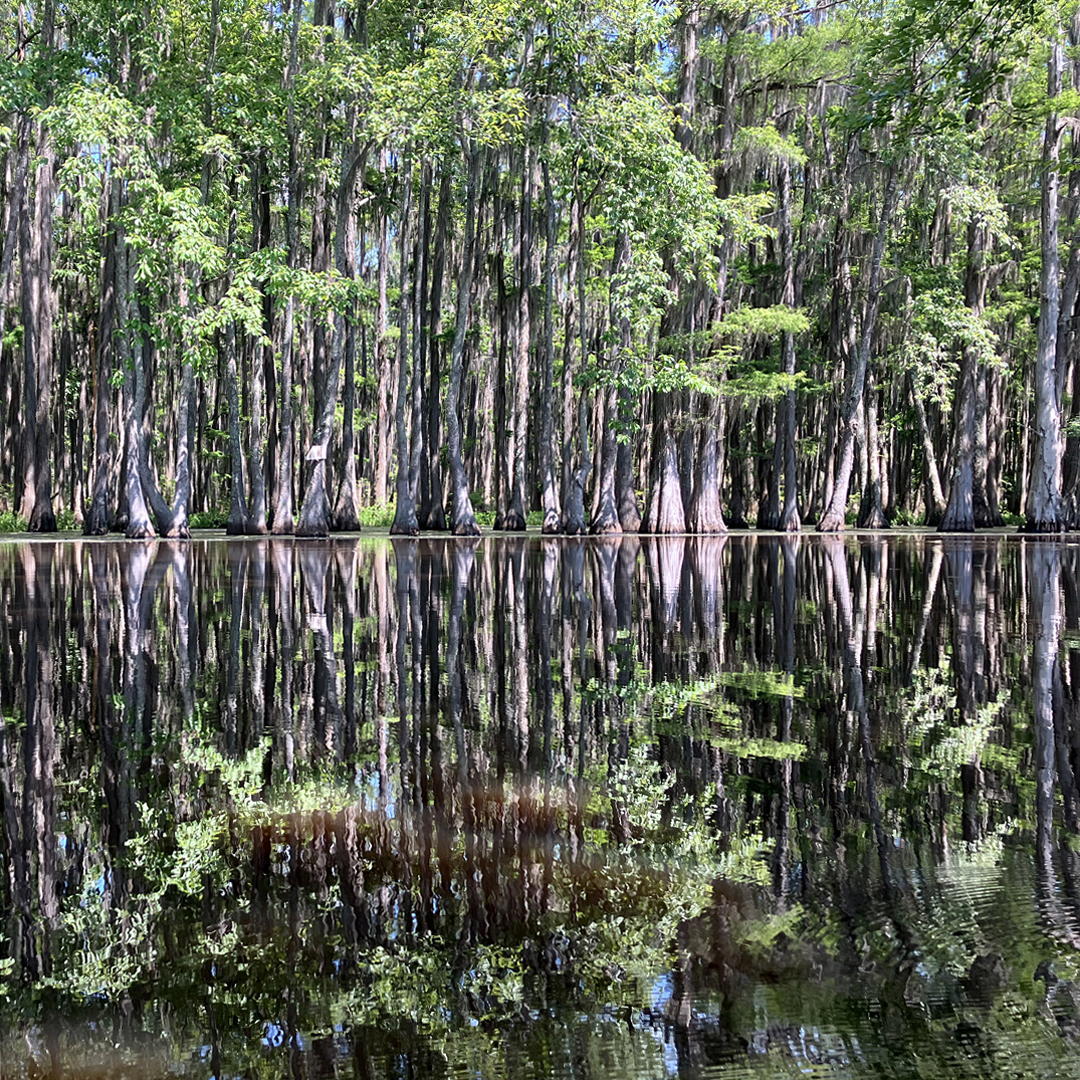 Above: Trees line the main channel of the Black Bayou.