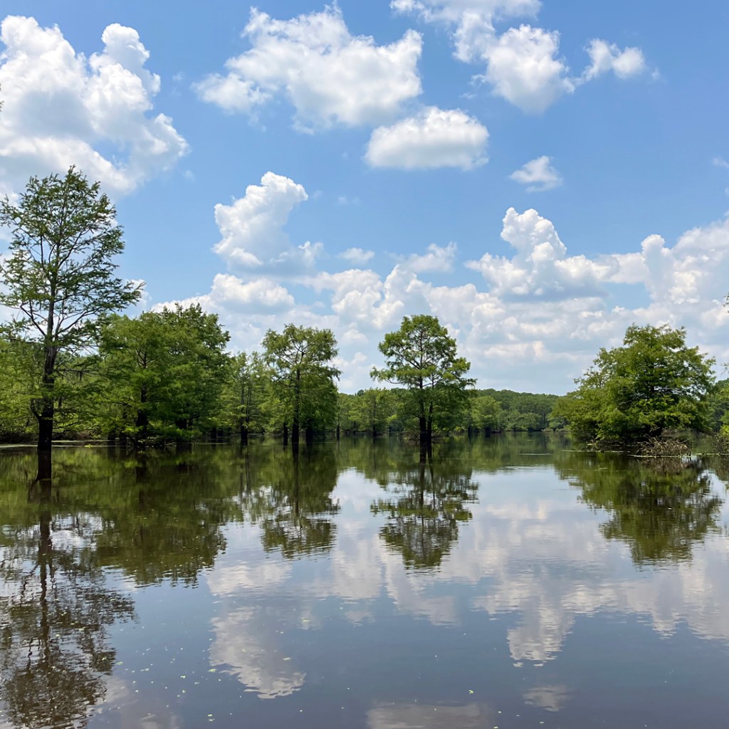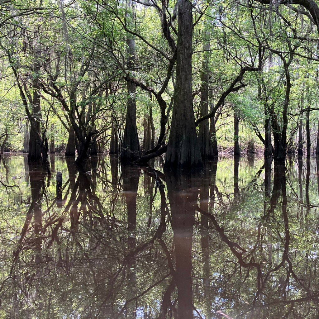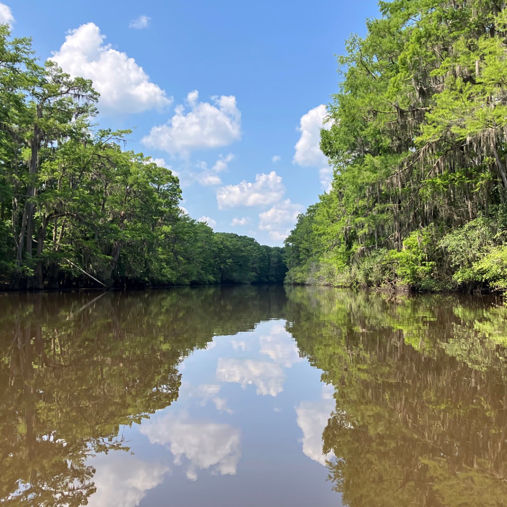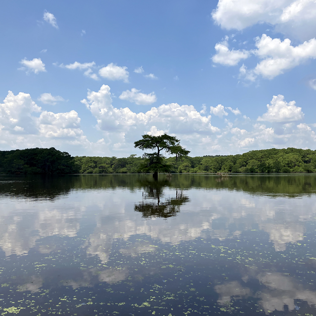 The Bodcau Bayou paddle trip shown here, and the one that launched north from Highway 2, are among my favorites here at Bodcau. This route launches from the Highway 157 put-in and goes south to Bodcau Lake. The section down to the lake had a few spots where the turns were a bit tricky or uncertain, but was for the most part fairly clear. How easy this is will depend on the water level, if it’s high the bayou may overflow the banks and you will be in open forest. The downstream lake is beautiful, open, isolated, nobody there. Very nice.