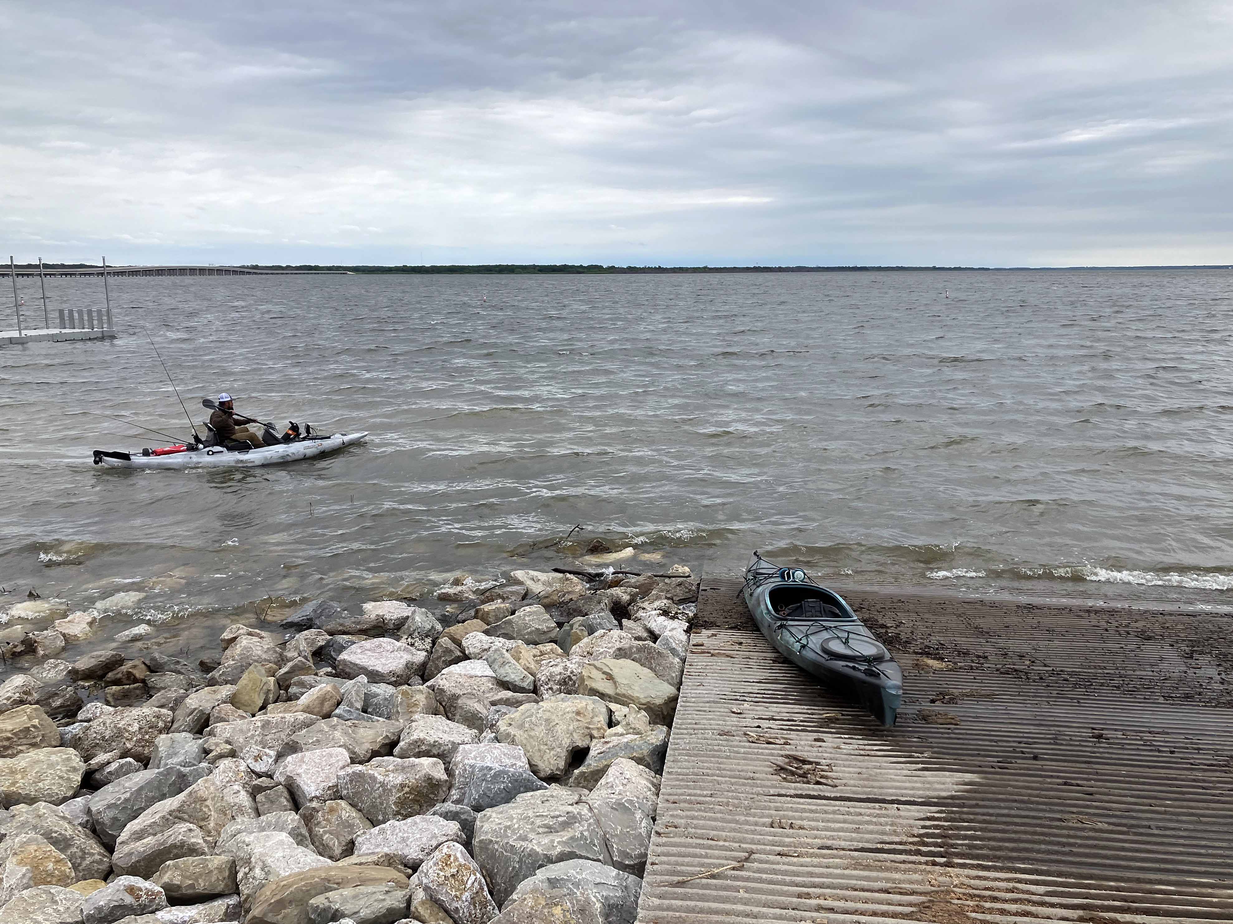 Above: 897 Bois d’Arc Launch. Lots of boats, including quite a few fishing kayaks, were there.