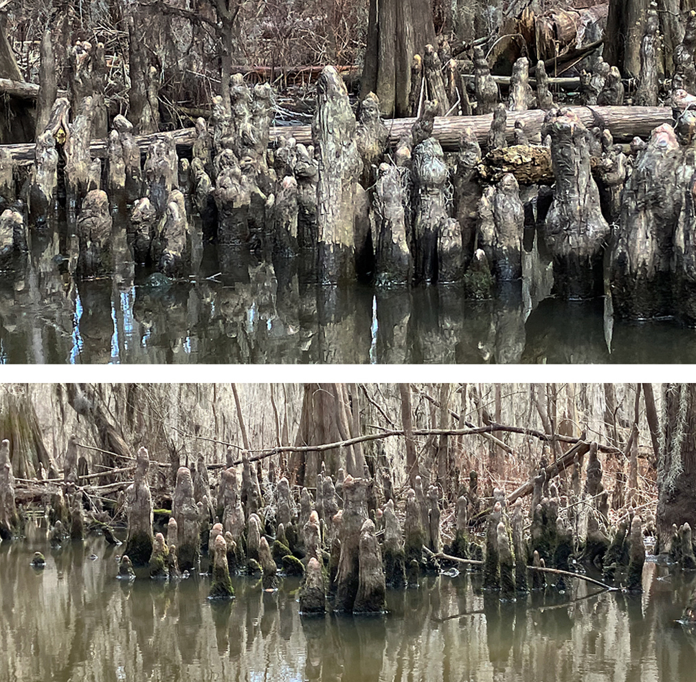 Above: Clusters of cypress knees.