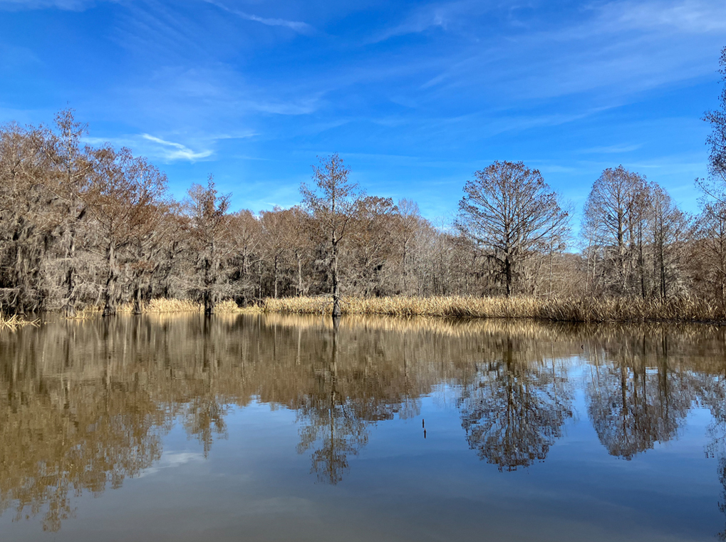 A paddle route at Caddo, starting at the 805 WMA put-in. This one hangs an immediate right at the launch site to explore the nearby inlet. Even though this inlet is not very big, I once got all turned around and lost in it, every direction looks the same. The paddle route continues to explore another longer inlet that extends quite a ways south, then heads north through Back Lake and Clinton Lake to get back onto Carter’s Chute. Instead of taking this all the back the route detours into Jenkins Slough and Old House Slough (including a tunnel!), and finally returns to the launch. The water was pretty high, there was a bit of current on Carter’s Chute, and because of this a complete transit of Jenkins and Old House was possible. Otherwise these might not be doable, they can be shallow and very brushy. Good trip.