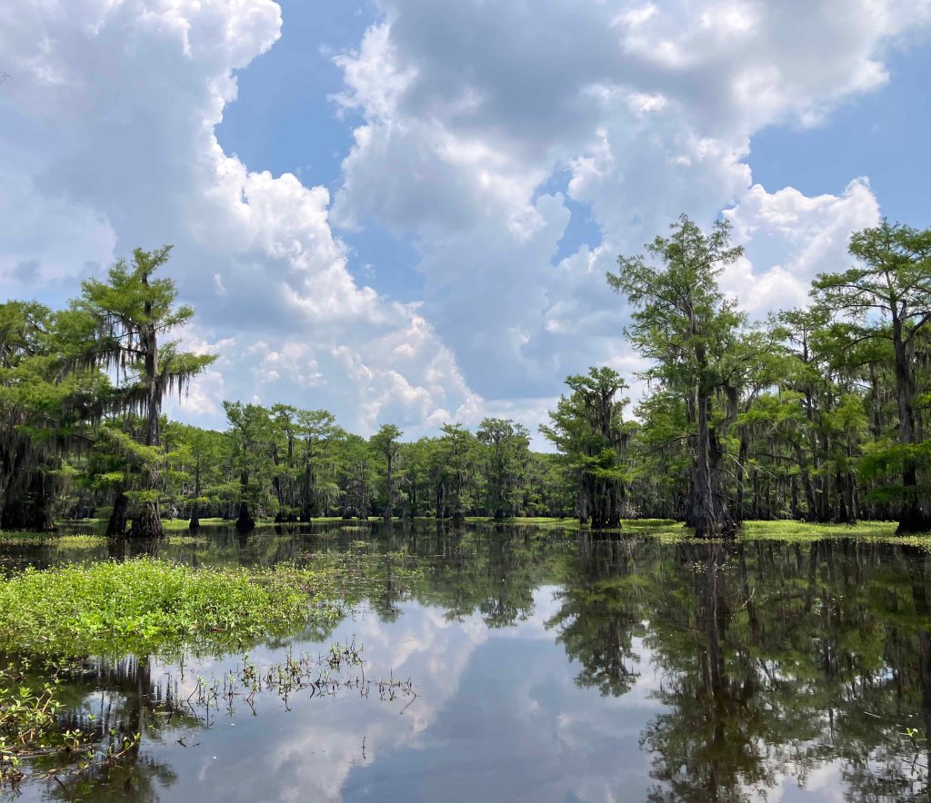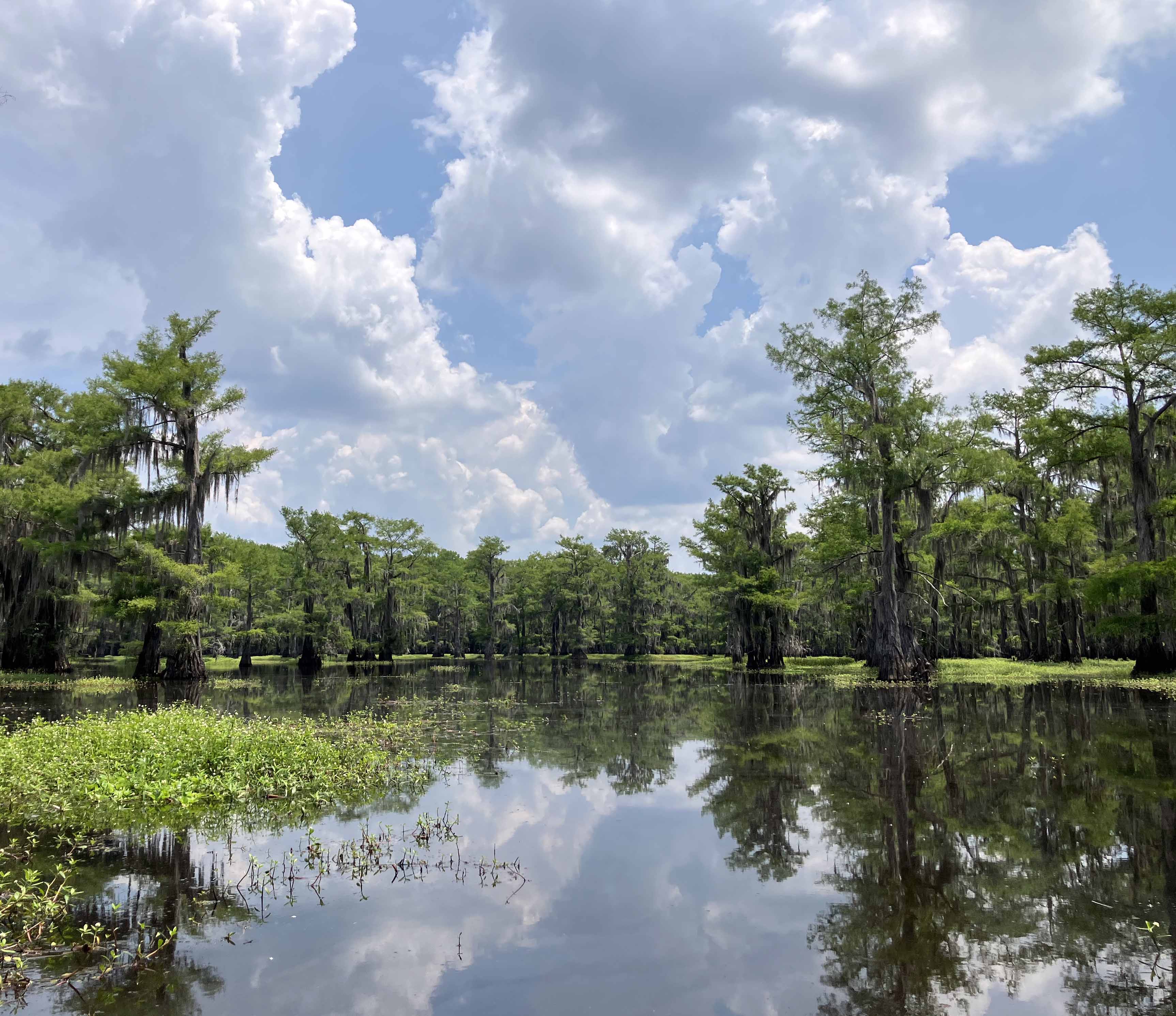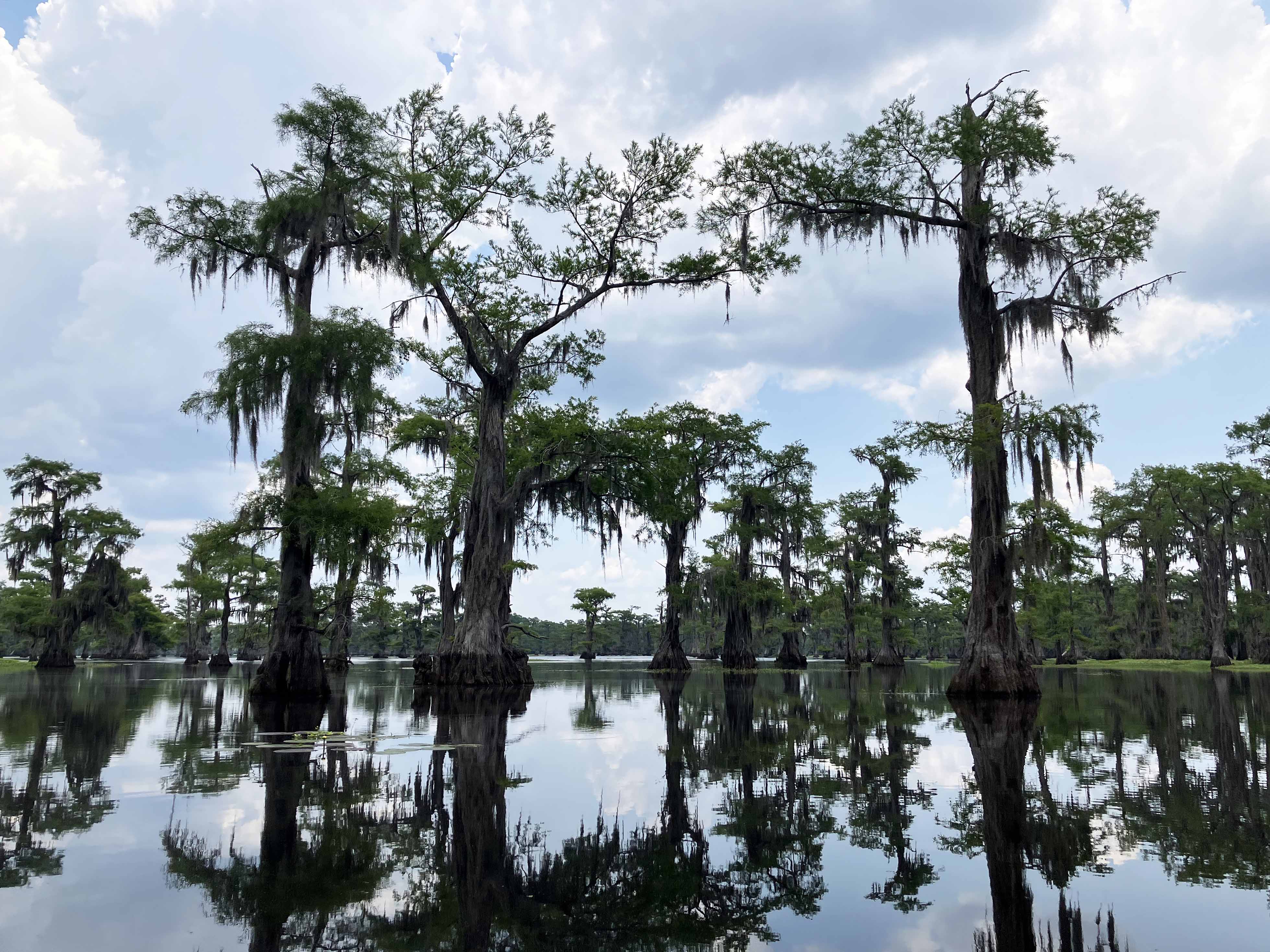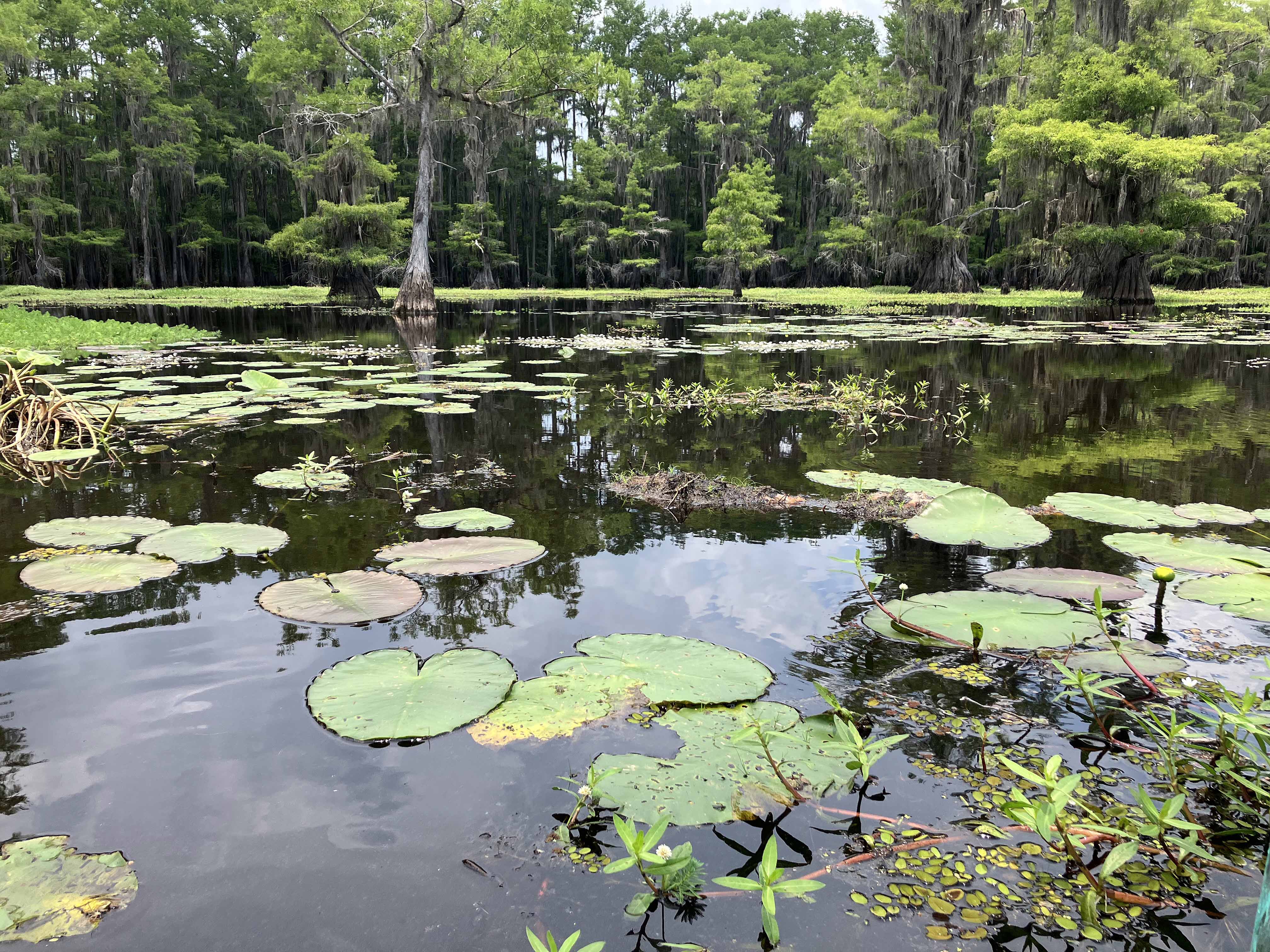 A Caddo kayak paddle map route starting, as usual, at the 805 WMA launch After a while there is a certain amount of repetition to Caddo paddles, and so this route goes over some of the same areas as some earlier trips. It first goes through Back Lake and out Whistleberry Slough into Clinton Lake and back again through Carter’s Chute. And then out Smith’s Slough to the Big Cypress Bayou and back through the Canal towards the launch site. Perfect day. I once had to portage, which really means drag the boat by hand in the woods, across the east-most end of Goat Island. The reason was I got really disoriented in Back Lake but I knew that going straight north would get me back to Carter’s Chute. Wasn’t easy, there were several water filled ravines that had to be crossed, trickier than I thought. But this trip was easy enough. Although you have to watch for powerboats in Smith Slough.