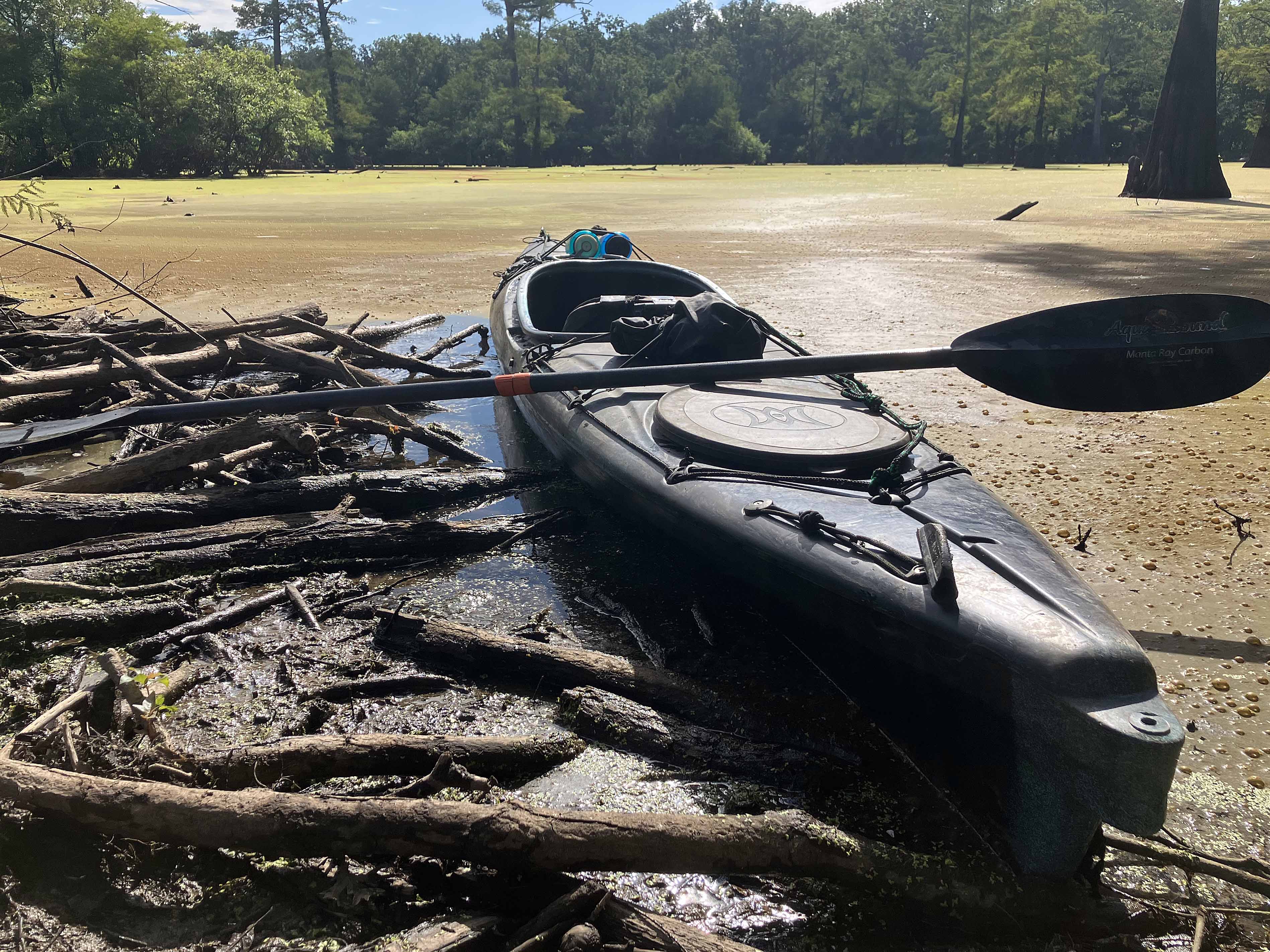 Another Beer Joint Access kayak trip off Highway 82 into the Felsenthal NWR. This route requires a mile or so flatwater paddling on the Ouachita River, going west then north, before you reach the interesting backwater swamp areas. But afterwards you get into some nice isolated lakes and dead-end passages with quiet water, big cypress, and even some big tupelo. Very impressive. Depending on water levels some of these logged backwater lakes can be pretty shallow, and there was a lot of paddle chopping into the mud to make progress. I high centered on cypress logs and stumps probably 20-30 times, and hard, which required using the paddle as a pole to push off, and which ultimately caused both ends of the paddle to split, which resulted in an excuse to buy a new paddle. Saw half dozen deer, lots of wood storks (no babies), and quite a few old beaver dams. Area access requires self-signed Felsenthal NWR permit.