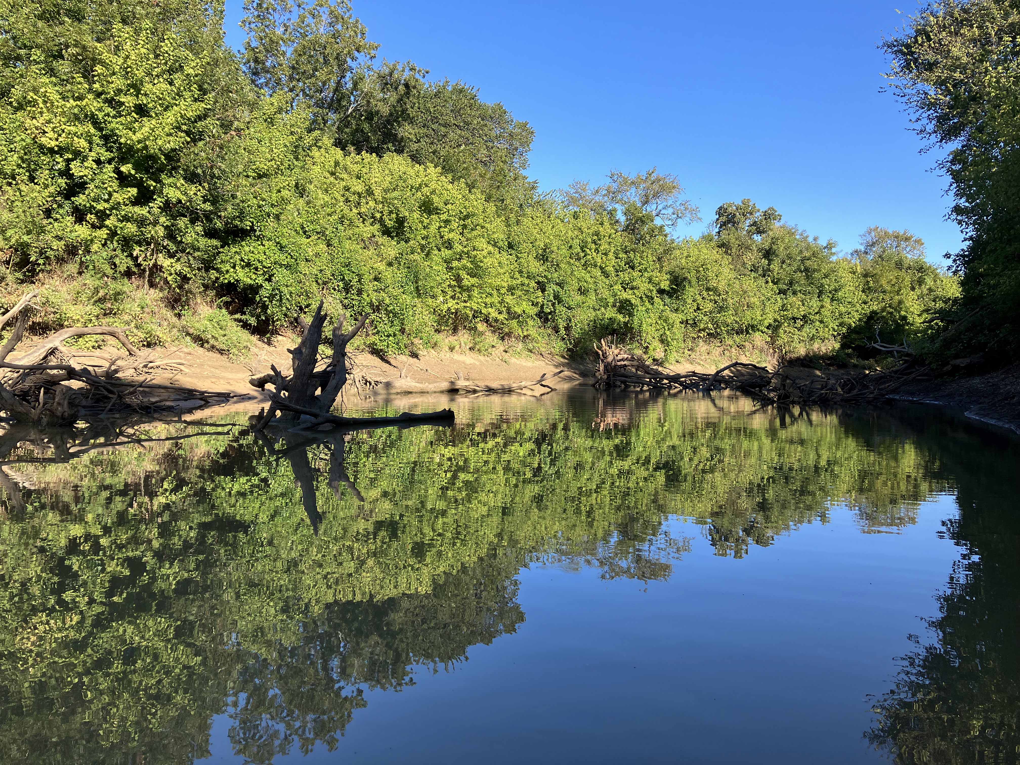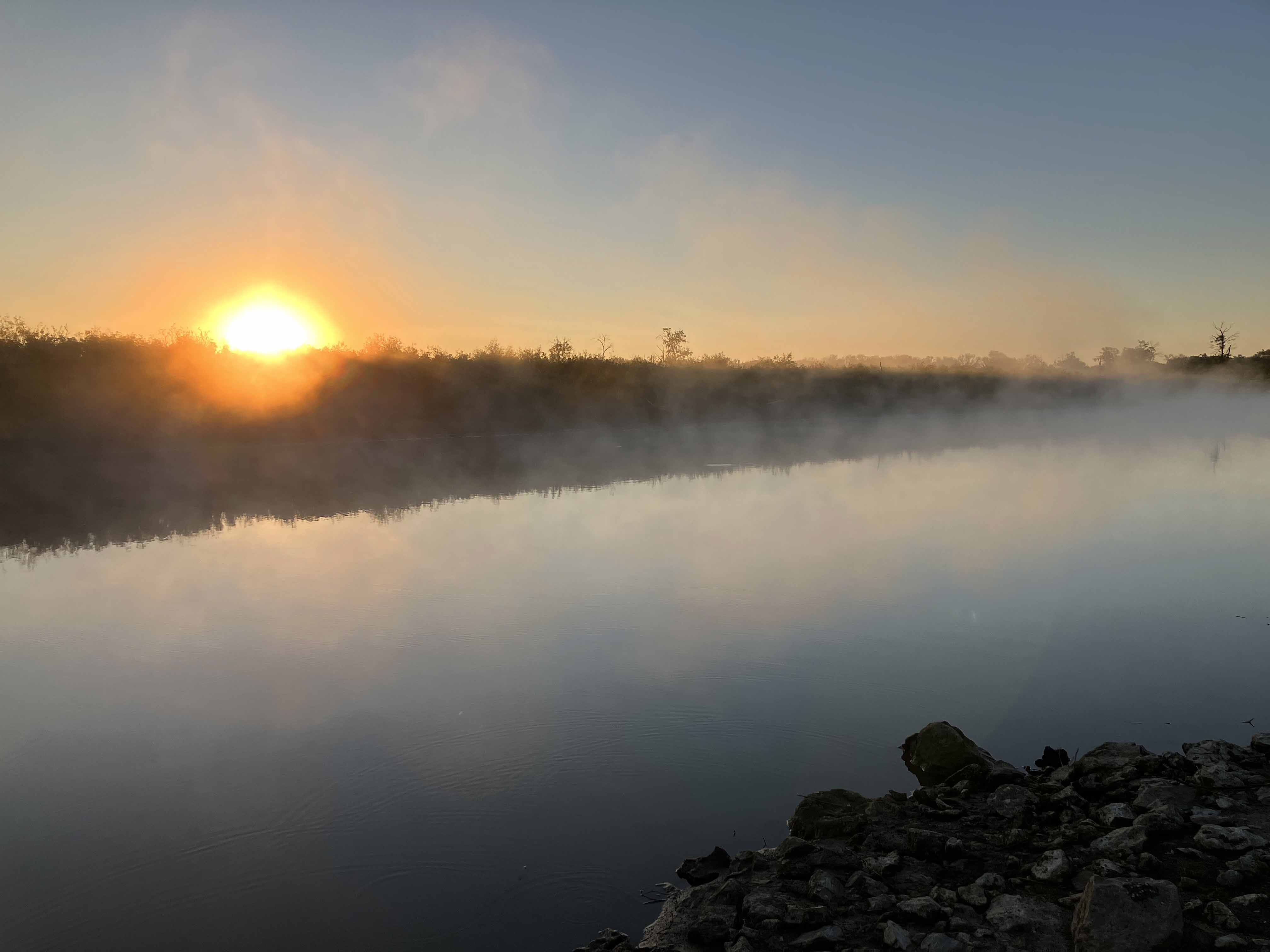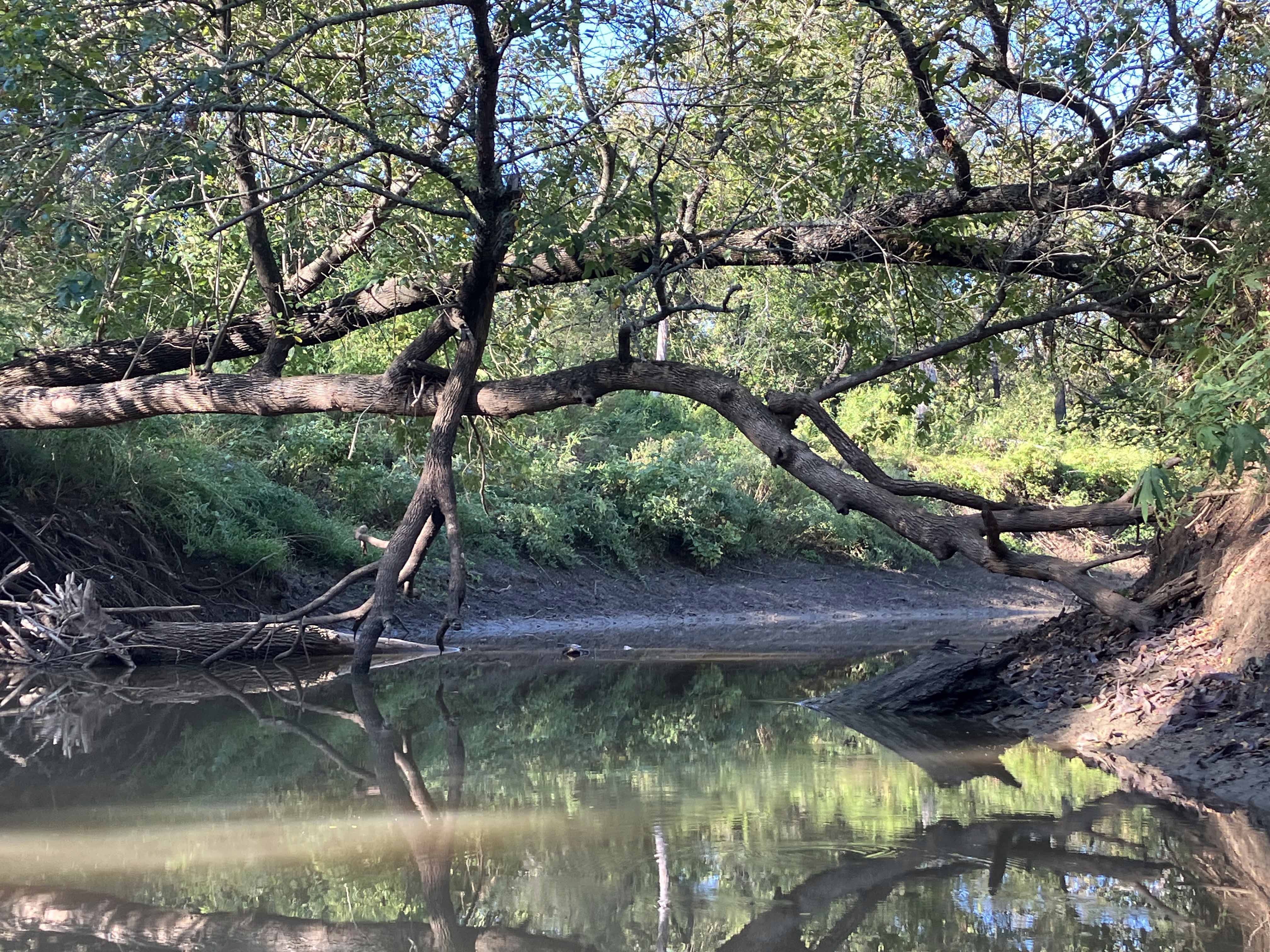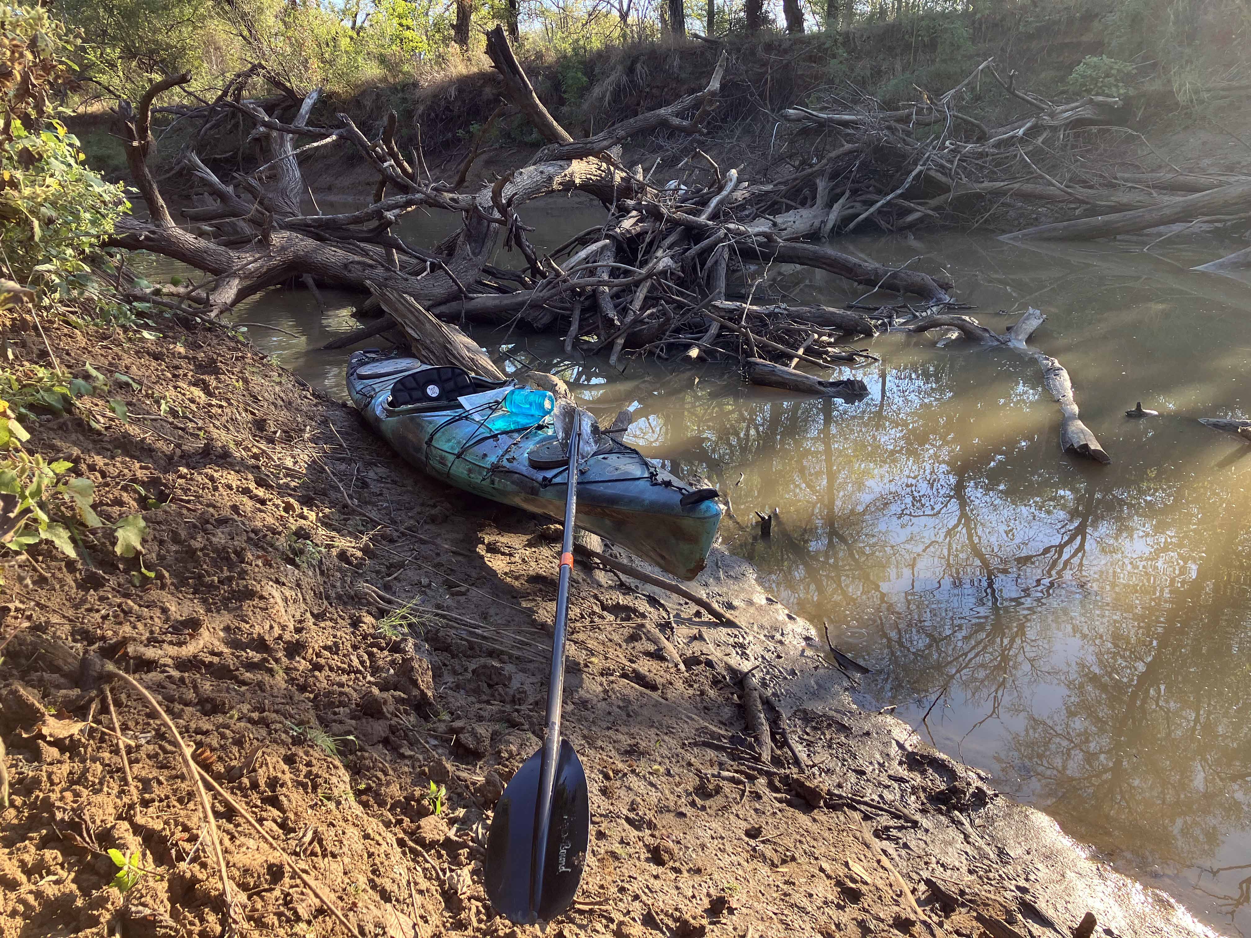Hagerman National Wildlife Refuge (and oil field) is about 20 minutes west of Sherman TX on Highway 82. It’s a very popular birding location and there are some boat launches for paddling and fishing. The boat launch on Pad L was used for this trip (see map above). I first tried to go out to the lake but the water was too shallow and I got stuck. So, I went the other way up Big Mineral Creek until it too got shallow. Hagerman seems different every time, there is always something new to see, the birds add a lot of life to the place, and there is a lot of season to season variation. This trip I saw three deer crossing the lake (see picture) and scenery in the early morning light was amazing.