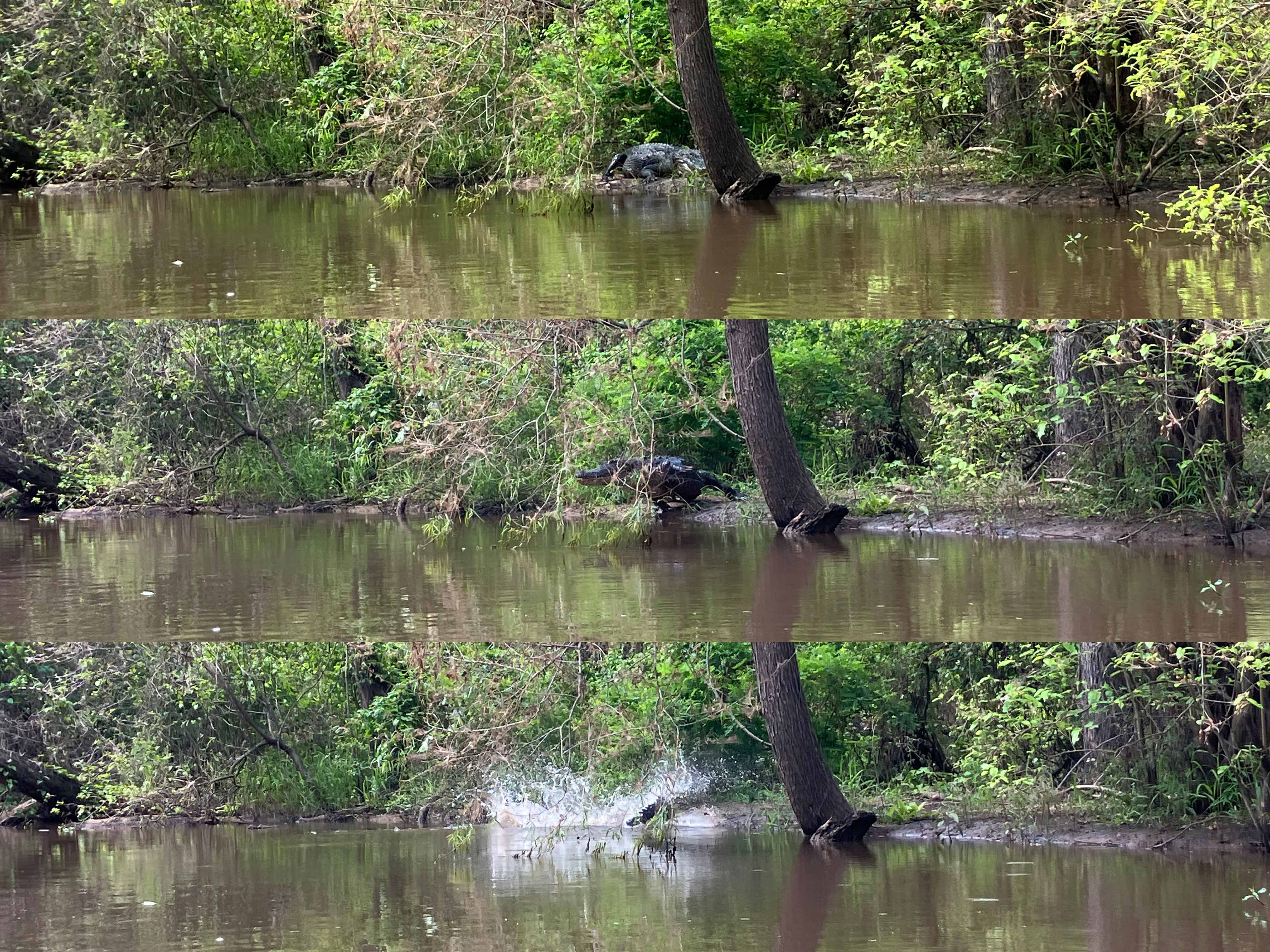 Above: The picture doesn’t do it justice, but this was one of the biggest gators I have seen. It just launched itself into the air.