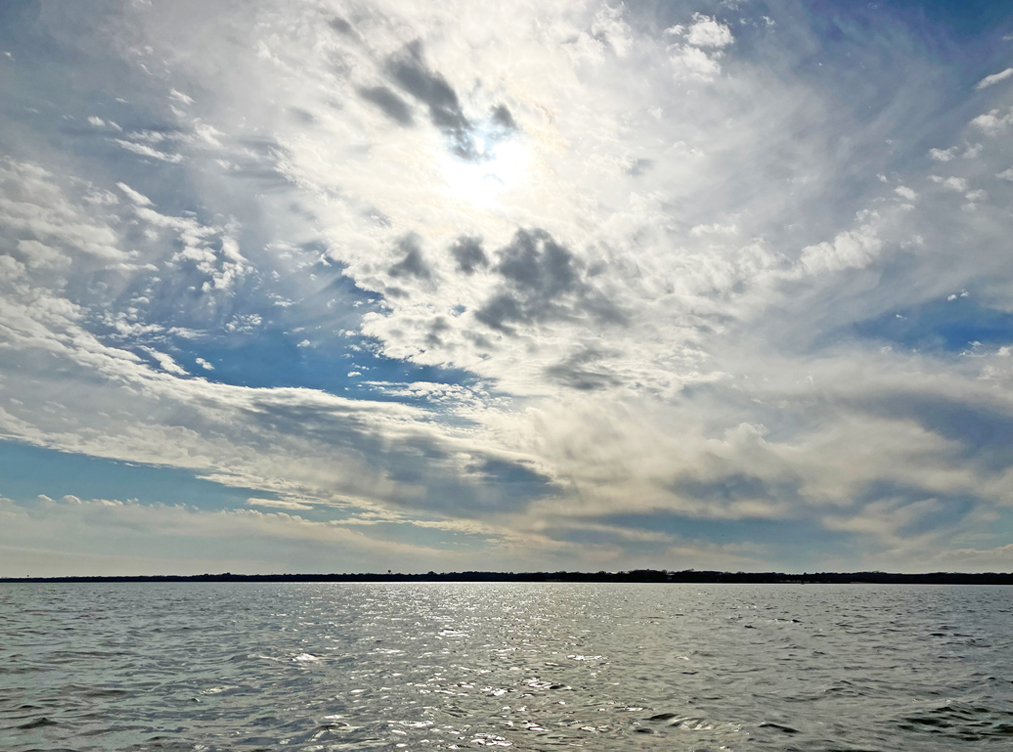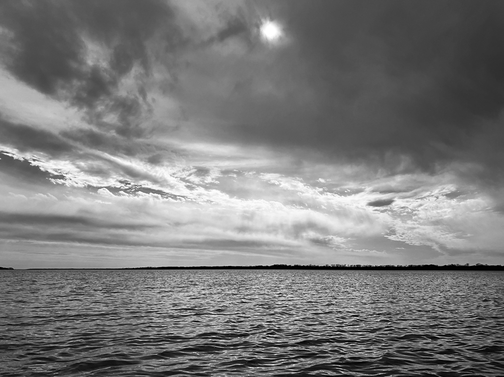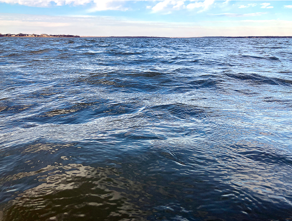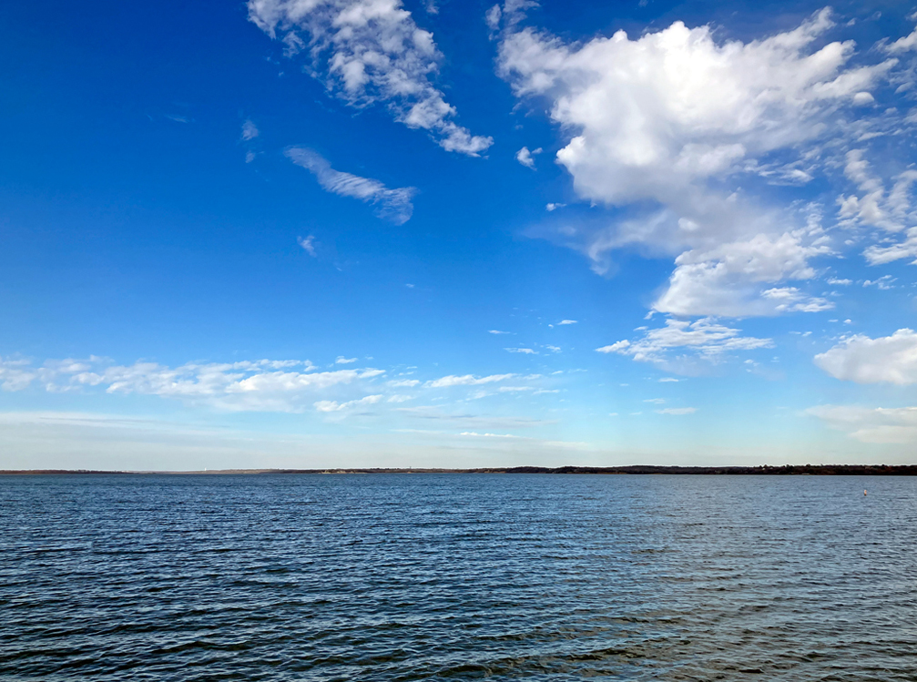 Above: Pretty calm day. There is a well known distance illusion when looking across water like this: it’s farther than you think.