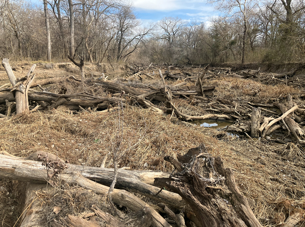 Above: Big log jam on the Elm Fork of the Trinity below 380.