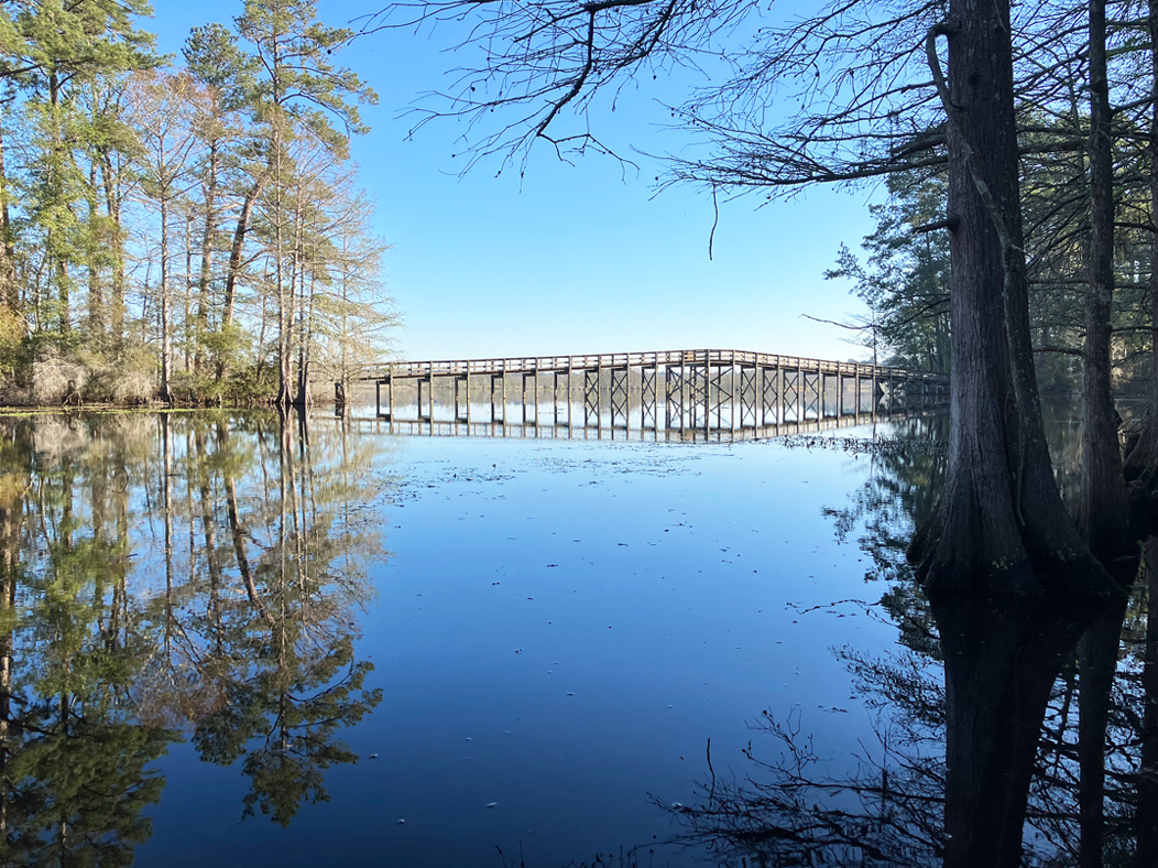 Above: The walkbridge seen from the kayak launch at Martin Dies.