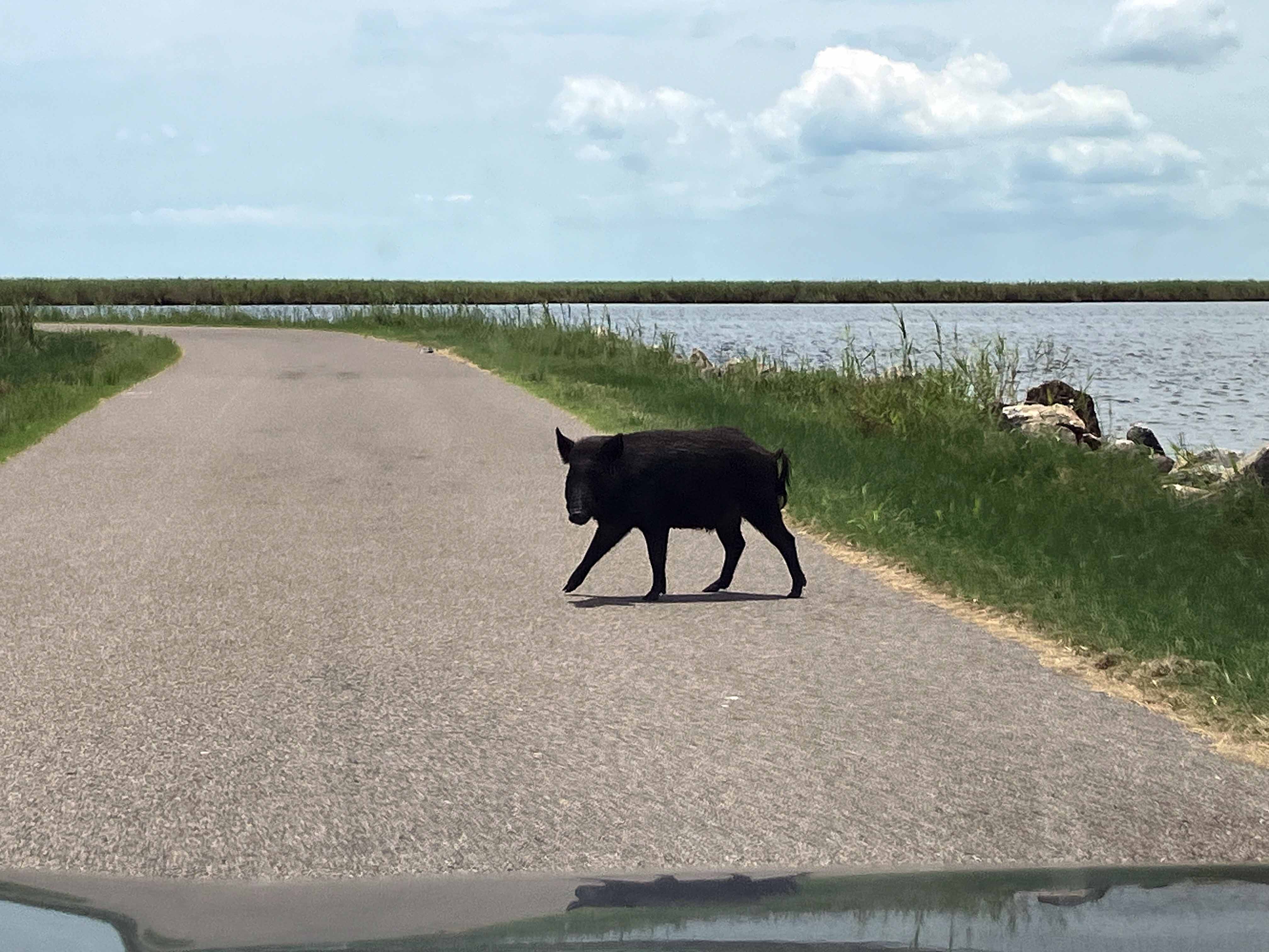 Above: Driving through McFaddin NWR, this pig was ready to square off.