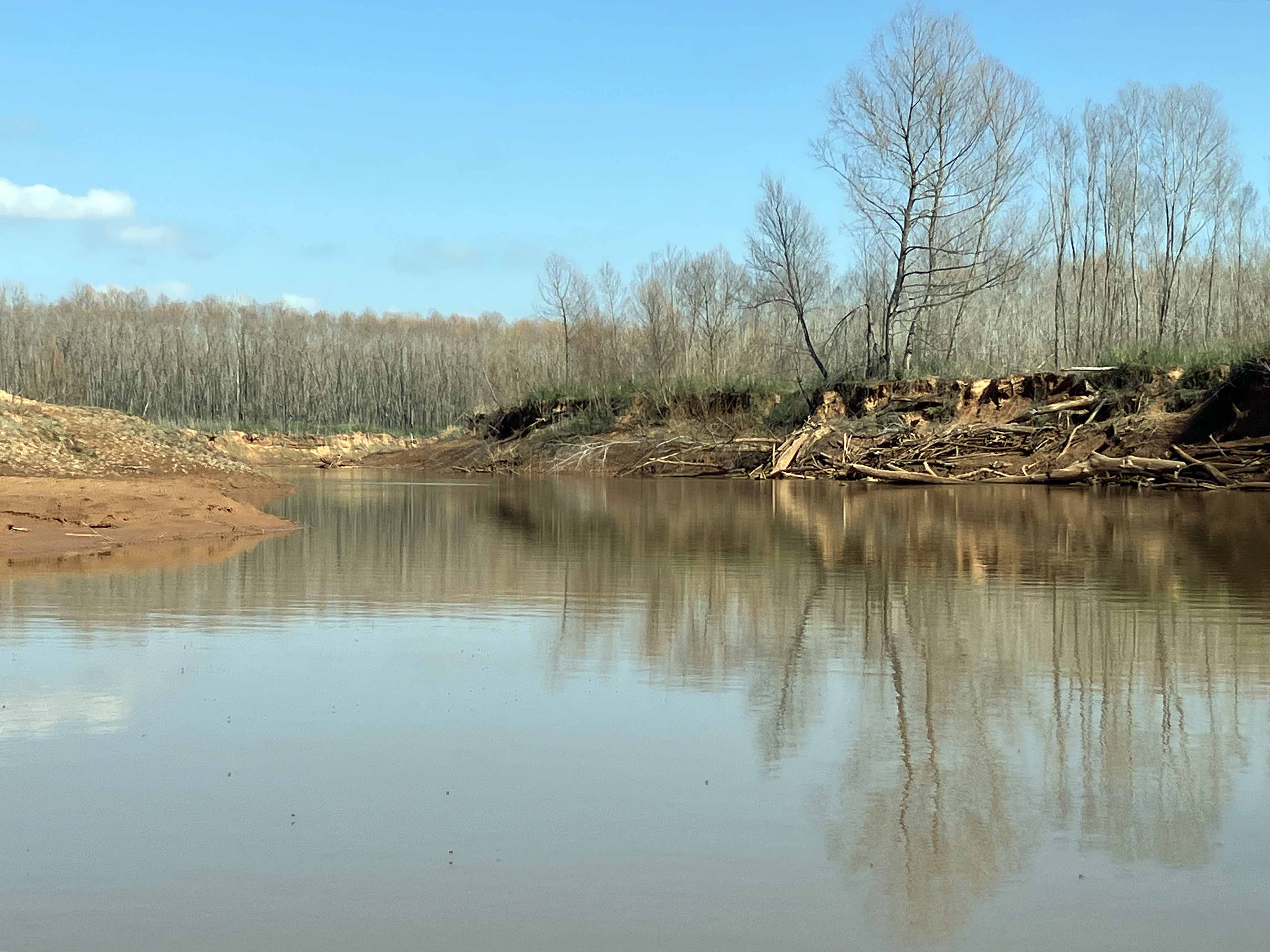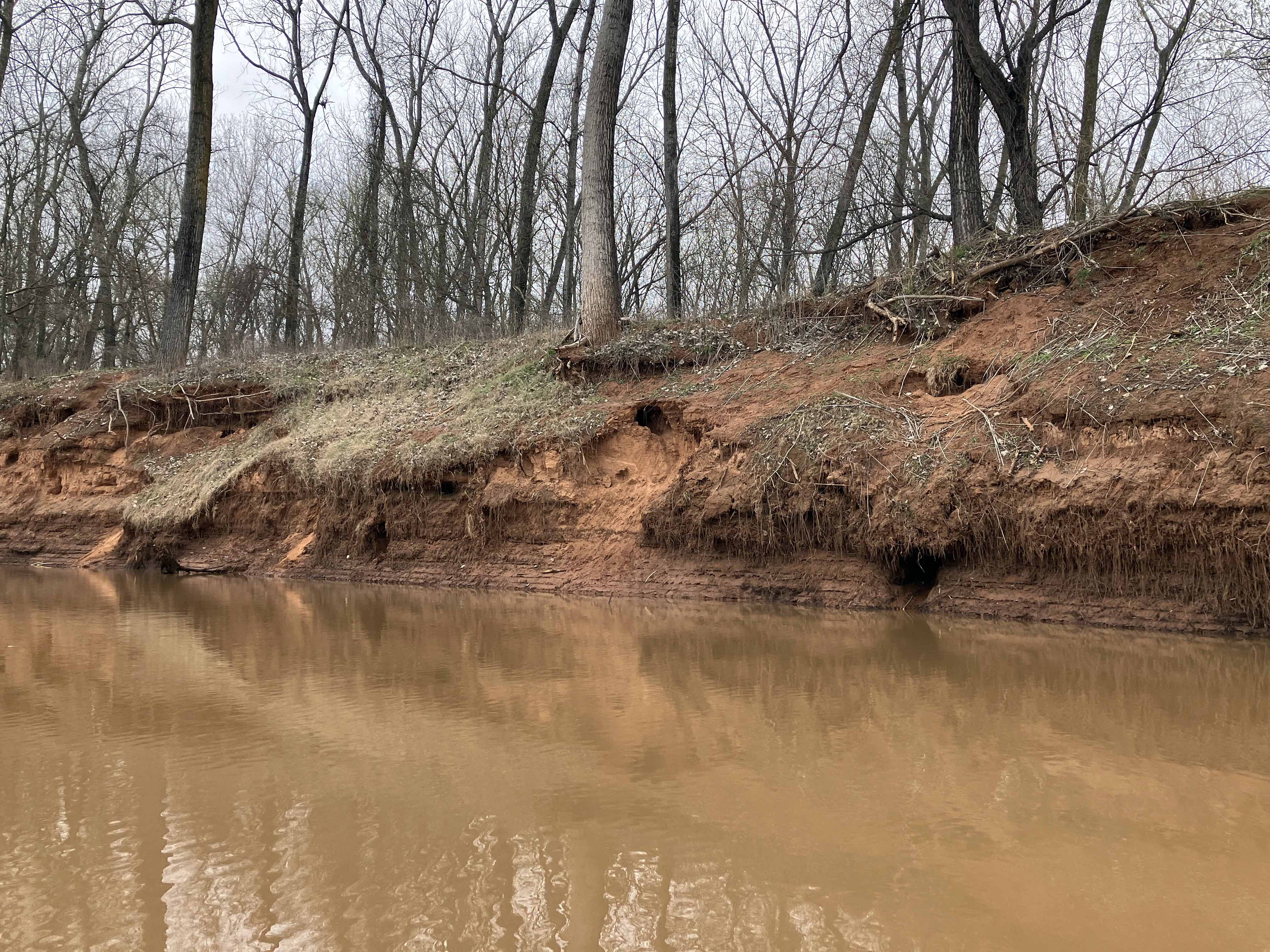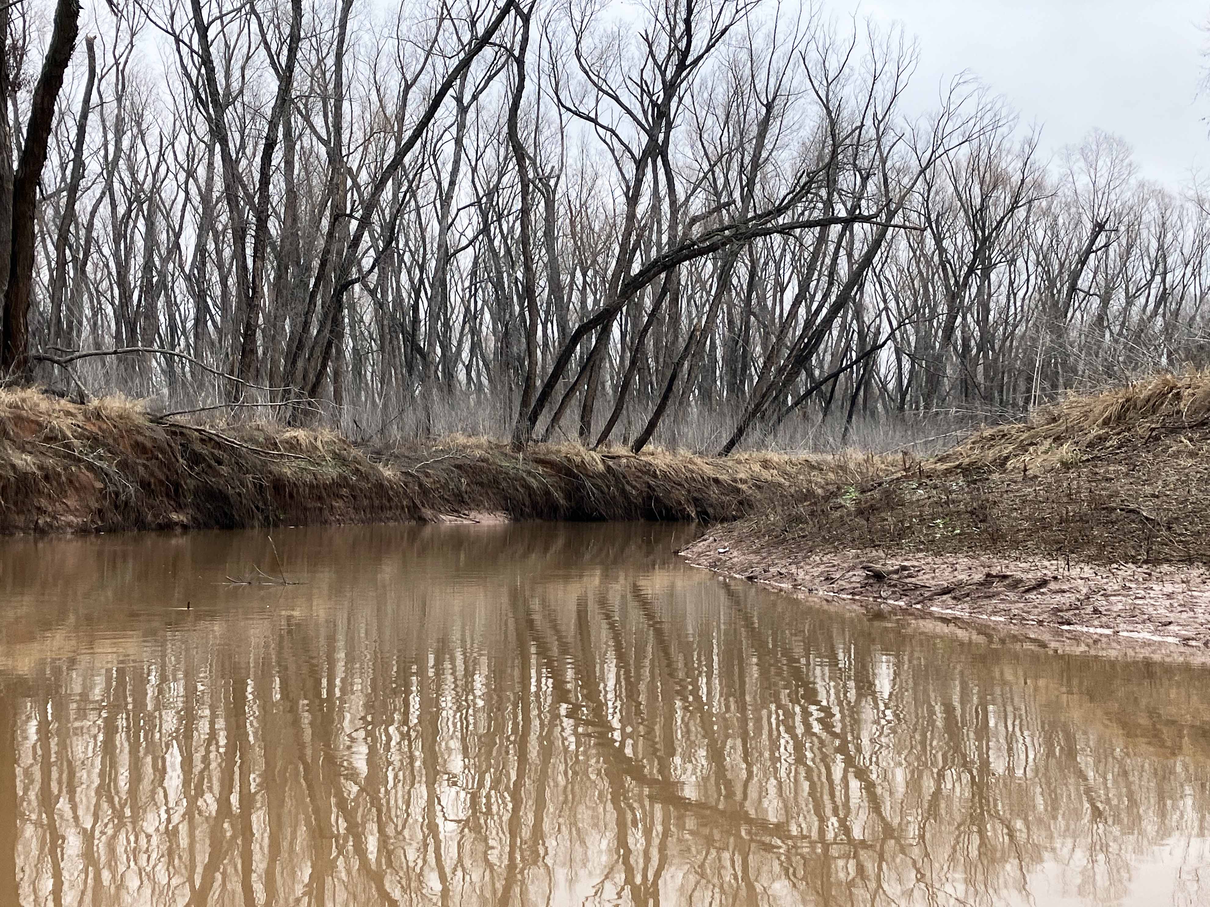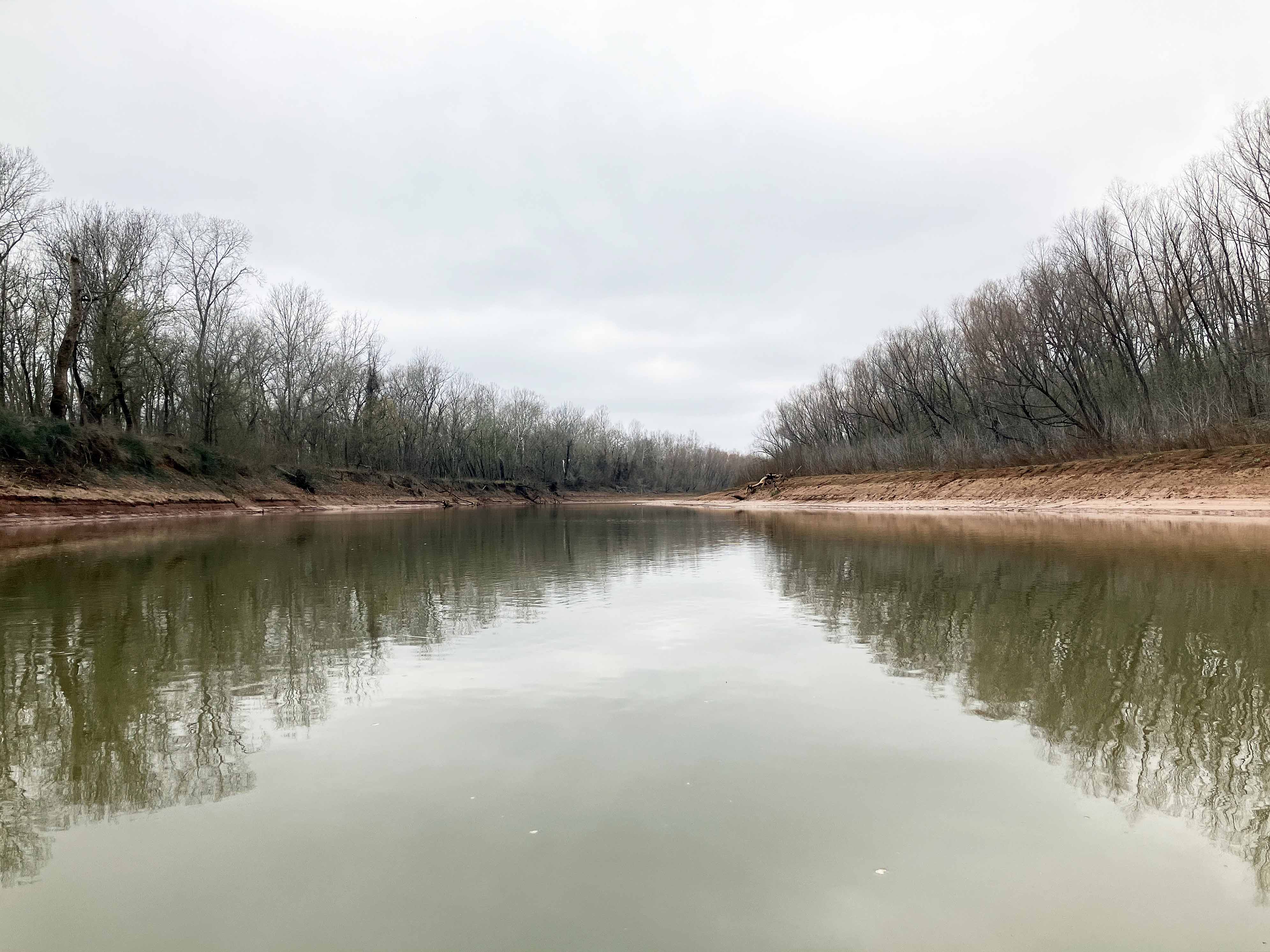The Tishomingo NWR in Oklahoma is just north of Lake Texoma. It is open seasonally and I had been waiting to do it all winter. There are a couple launch sites, but the Nida Point access is supposedly for canoes and kayaks. Another launch is on the other side of the lake where the headquarters is located; this location also allows camping. From Nida Point you can go south using a connecting stream into the Washita River, although there is a big logjam to portage around to get there. I went up the Washita River thinking I could do a loop but the channel back into the Cumberland Pool area was too sandy and shallow so I had to backtrack the same way I came. Once I portaged the logjam a second time I went into the main lake and down the same channel from a different direction. They say that in the Washita River area there is quicksand but I don’t know. Beavers are everywhere here, there are dozens of holes in the bank and sometimes they jump out when you paddle by. All in all a unique and beautiful place…and nobody else there.
