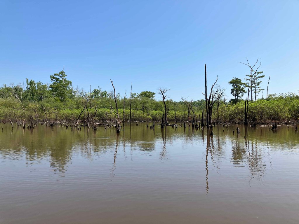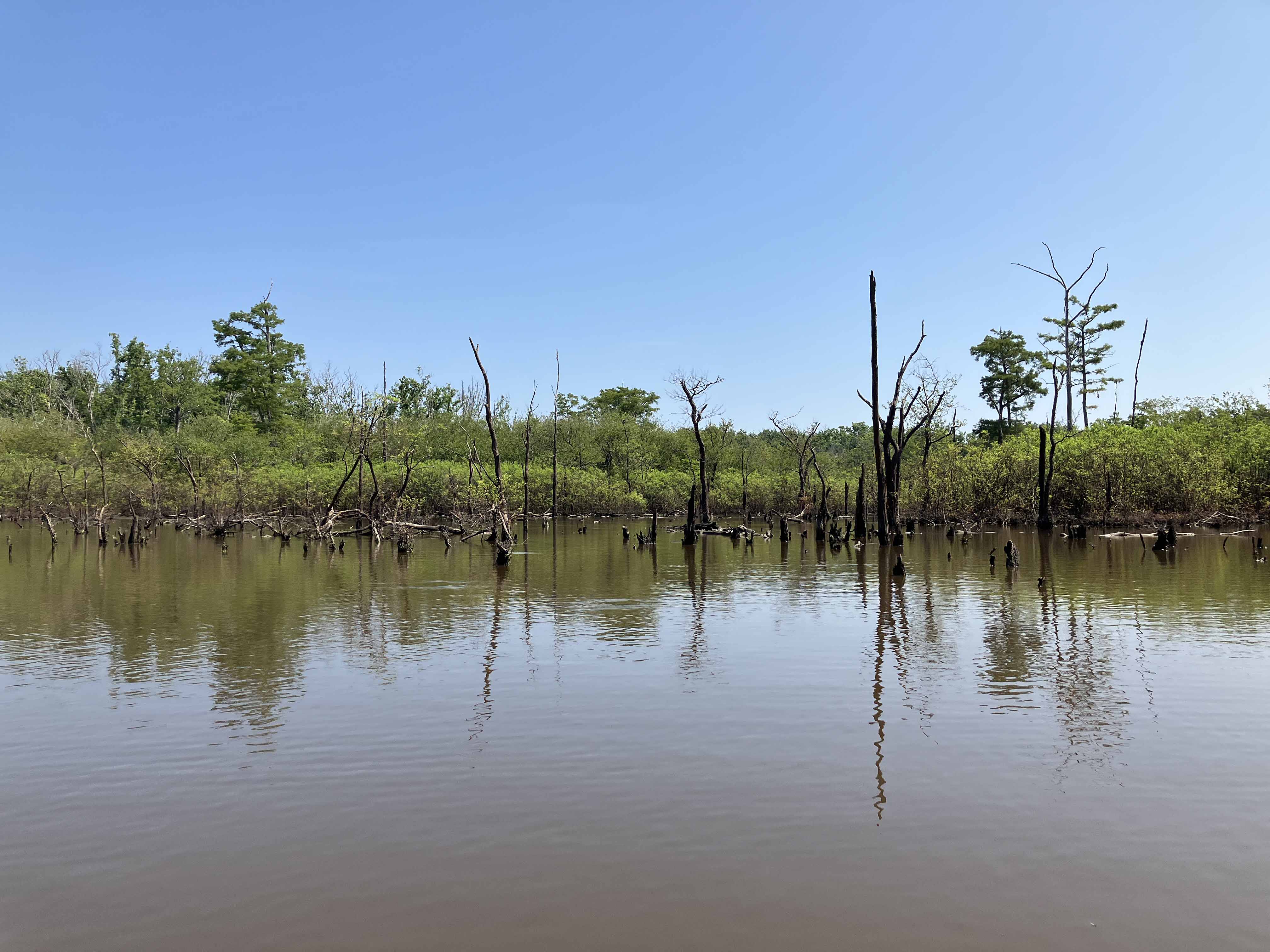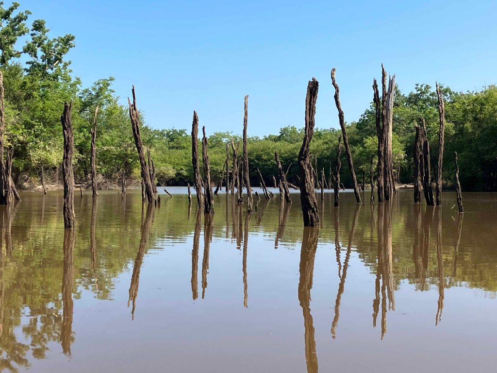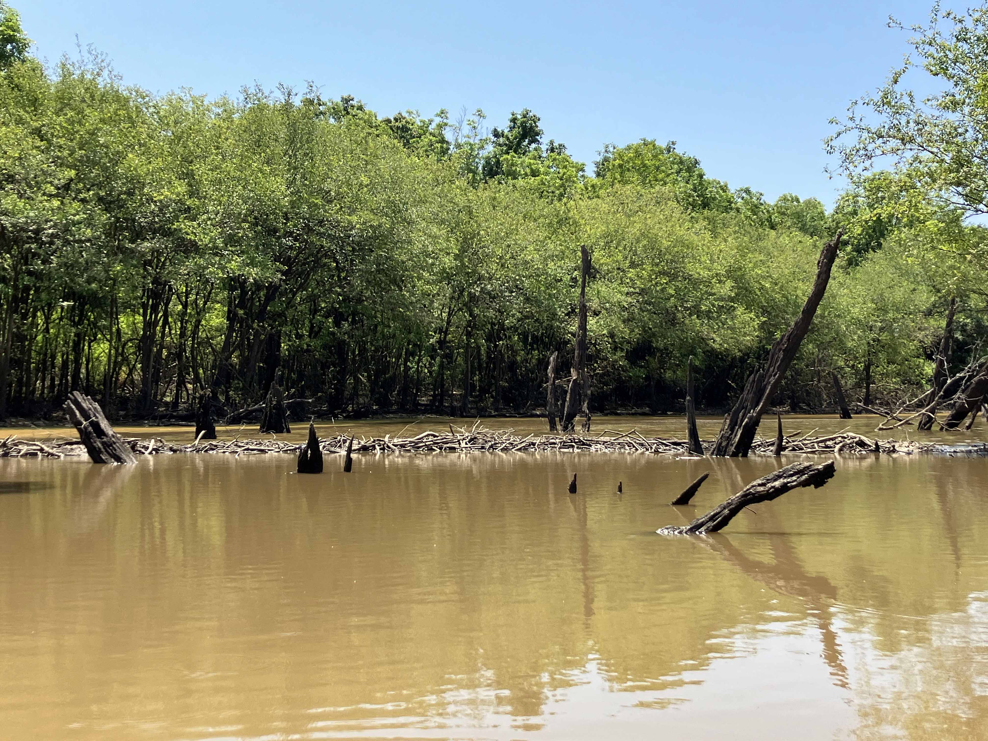 The Ouachita River flows out of the Felsenthal Lock and Dam about 18 miles upstream. But the trips in this section stay below that point. Some, like the one in the map above, launch at the Finch Bayou Rec Area and go upstream to find side channels to explore. The route above is the first one I did here. The plan was to paddle up the Ouachita to a side channel going west and go from there as far up as possible. At the most northern turnaround the water started to get shallow. According to google maps this northerly region looks kind of open but it wasn’t possible to do it when I went. Some of the remote areas are shallow and filled with old trees and shrubs that block progress. Water levels in the Upper Ouachita NWR vary a lot and this means that large areas of the refuge can at one time be lakes, and at another time be dry land. A great first trip into the area, and I saw one alligator in one of the side channels.