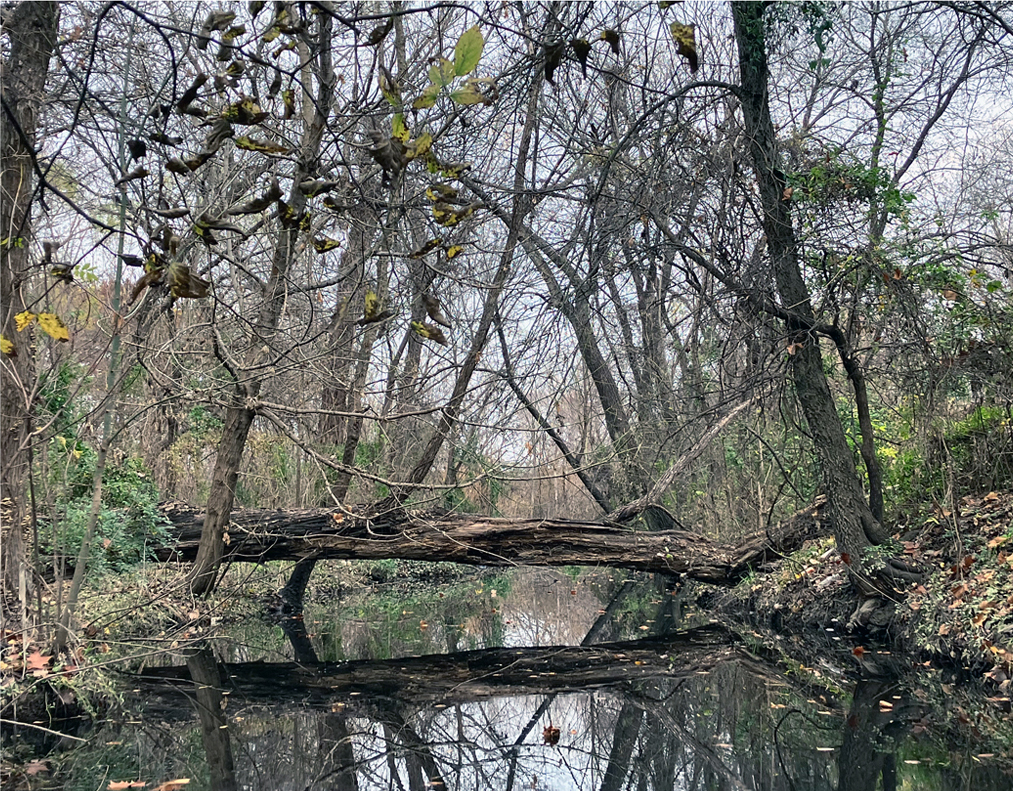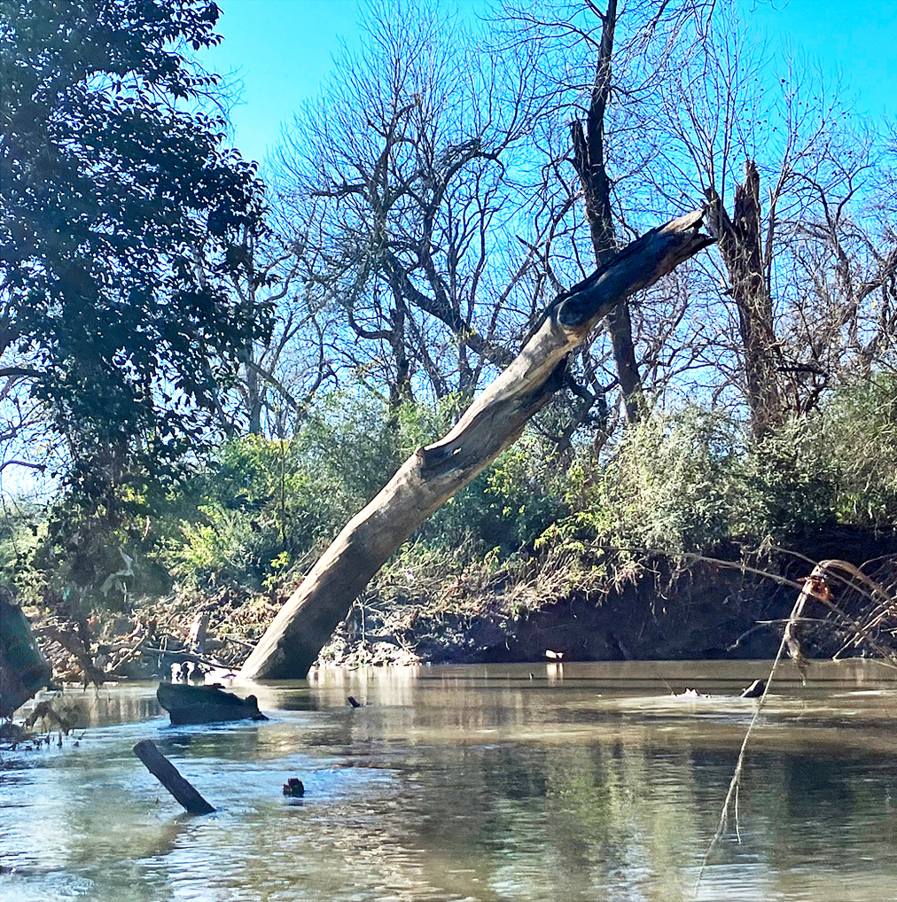 Above: This angled tree trunk has been a feature on the creek for years.