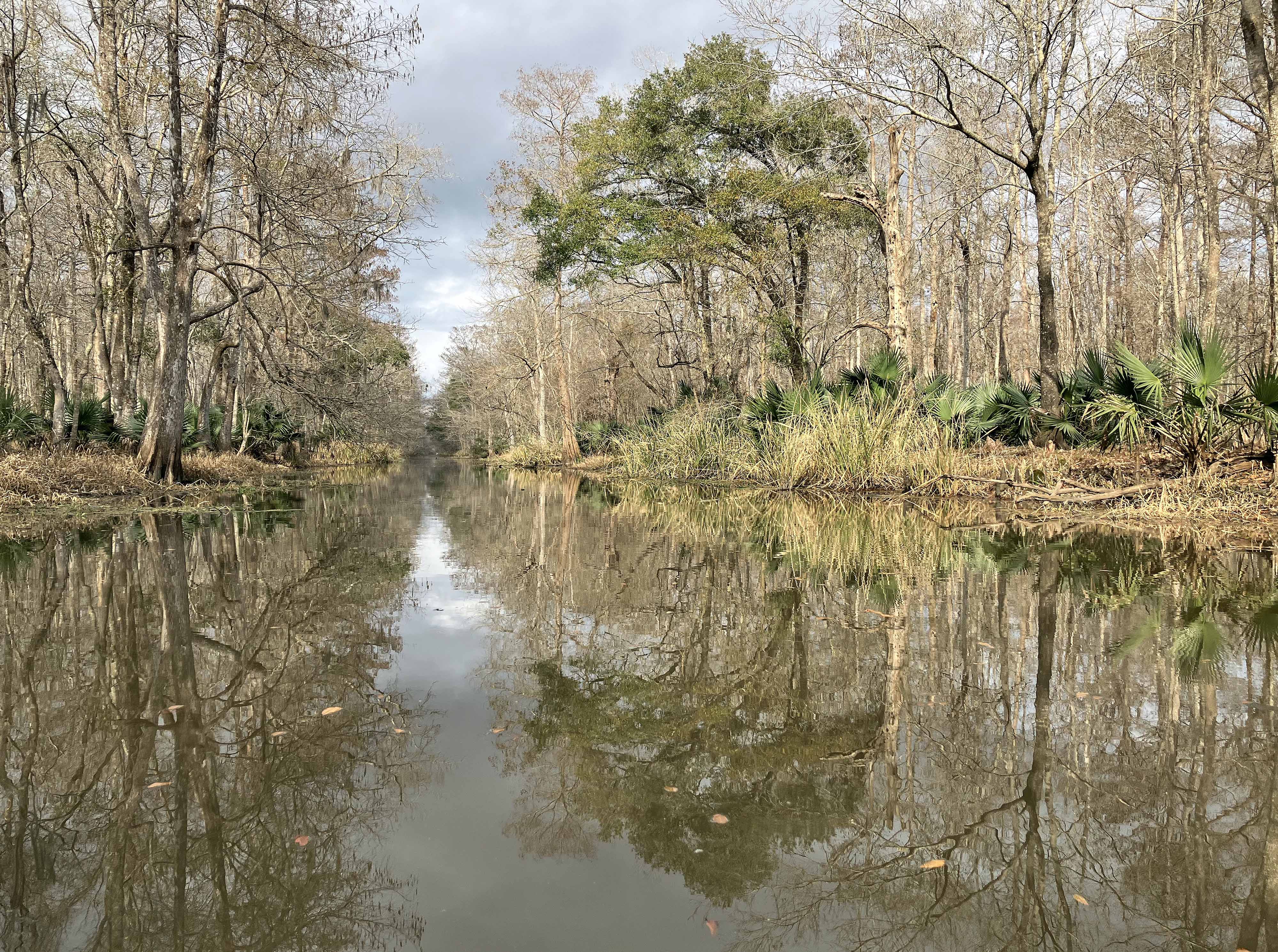 Above: Navigating the cypress along the shore and looking out on the lake.