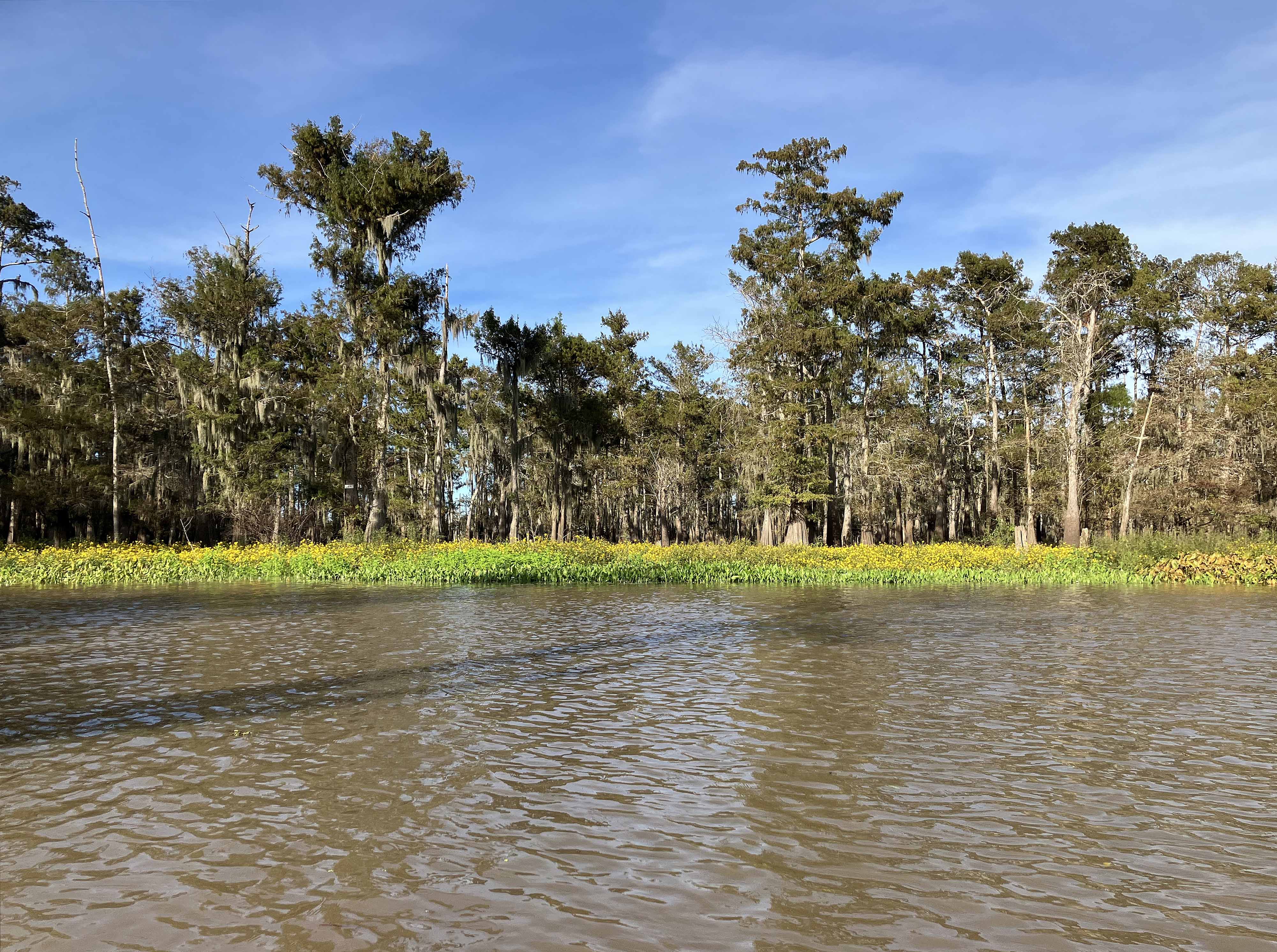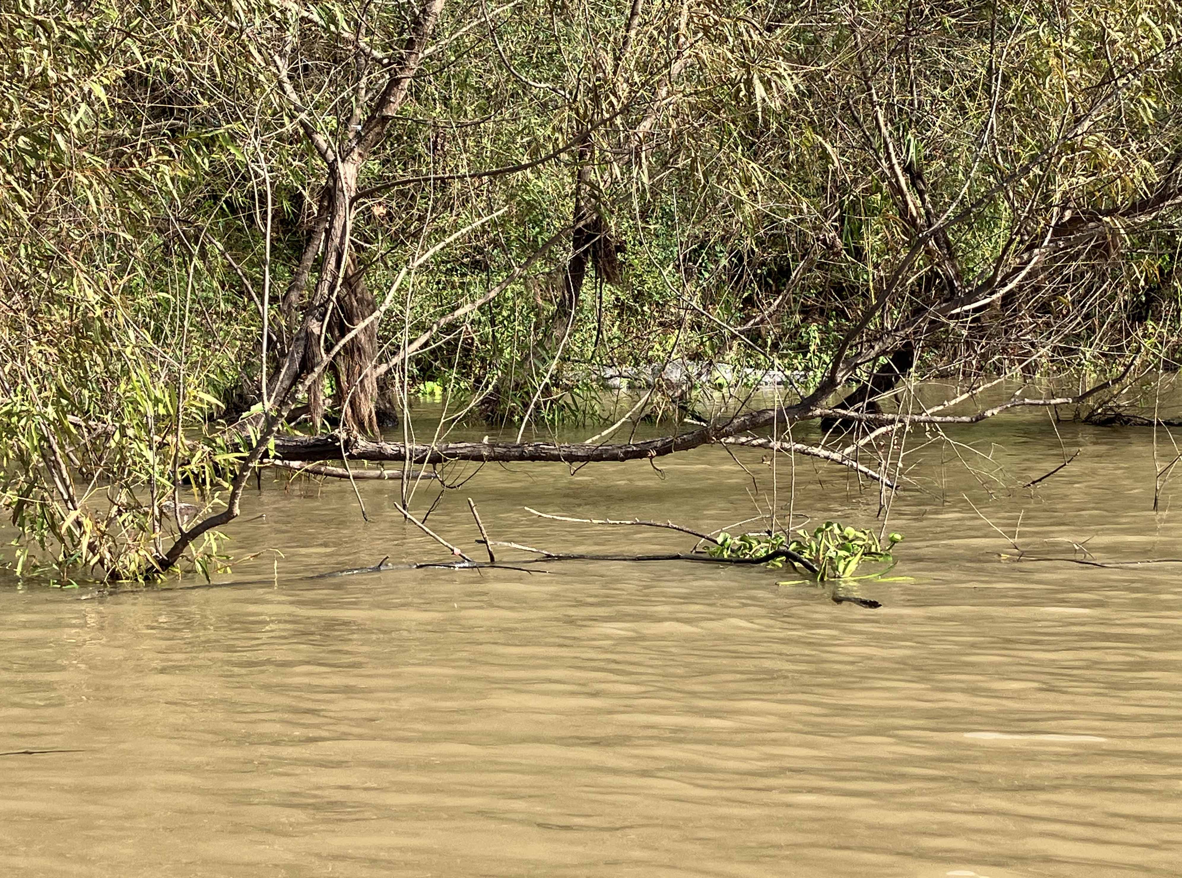 Above: I easily saw 20 alligators along the route but they were so skittish it was hard to get a picture. There is one hiding above though.