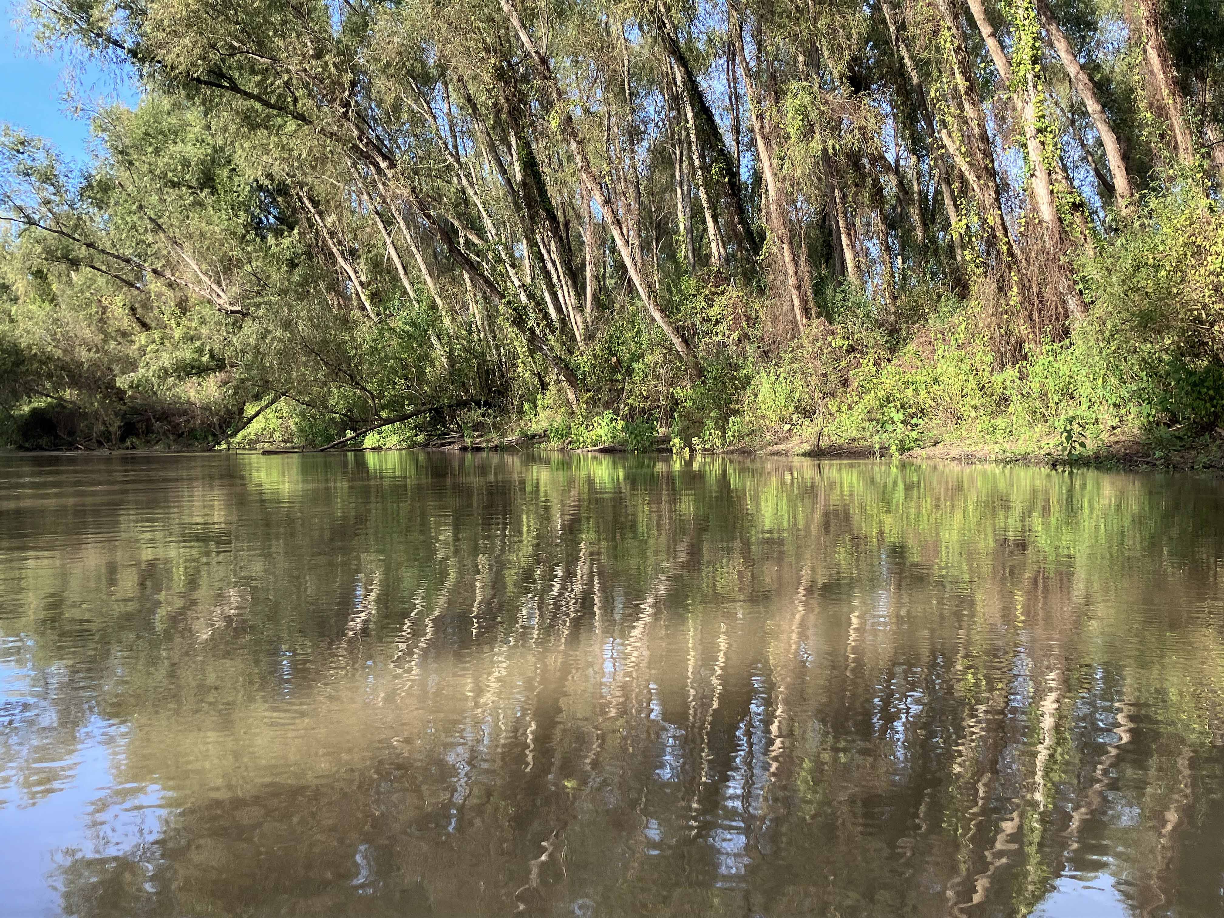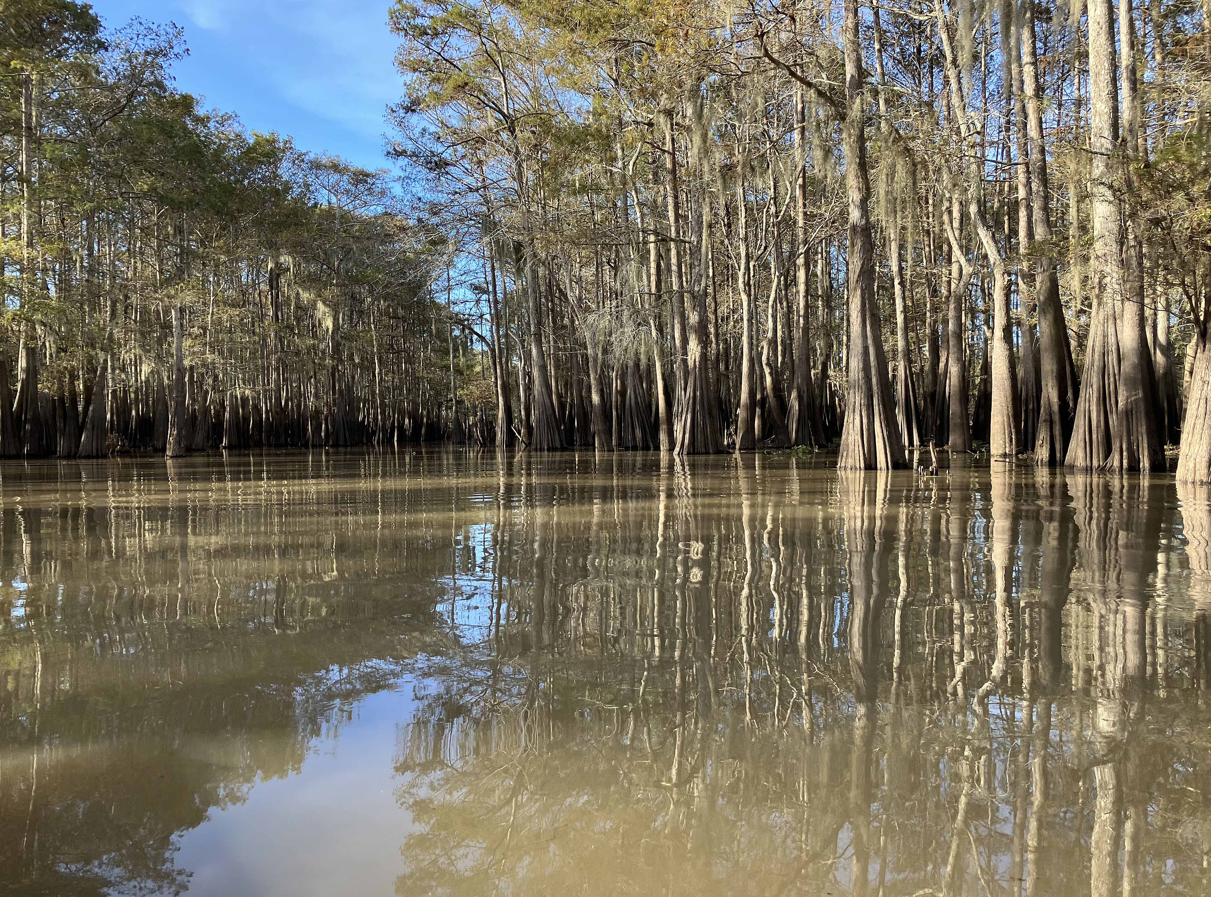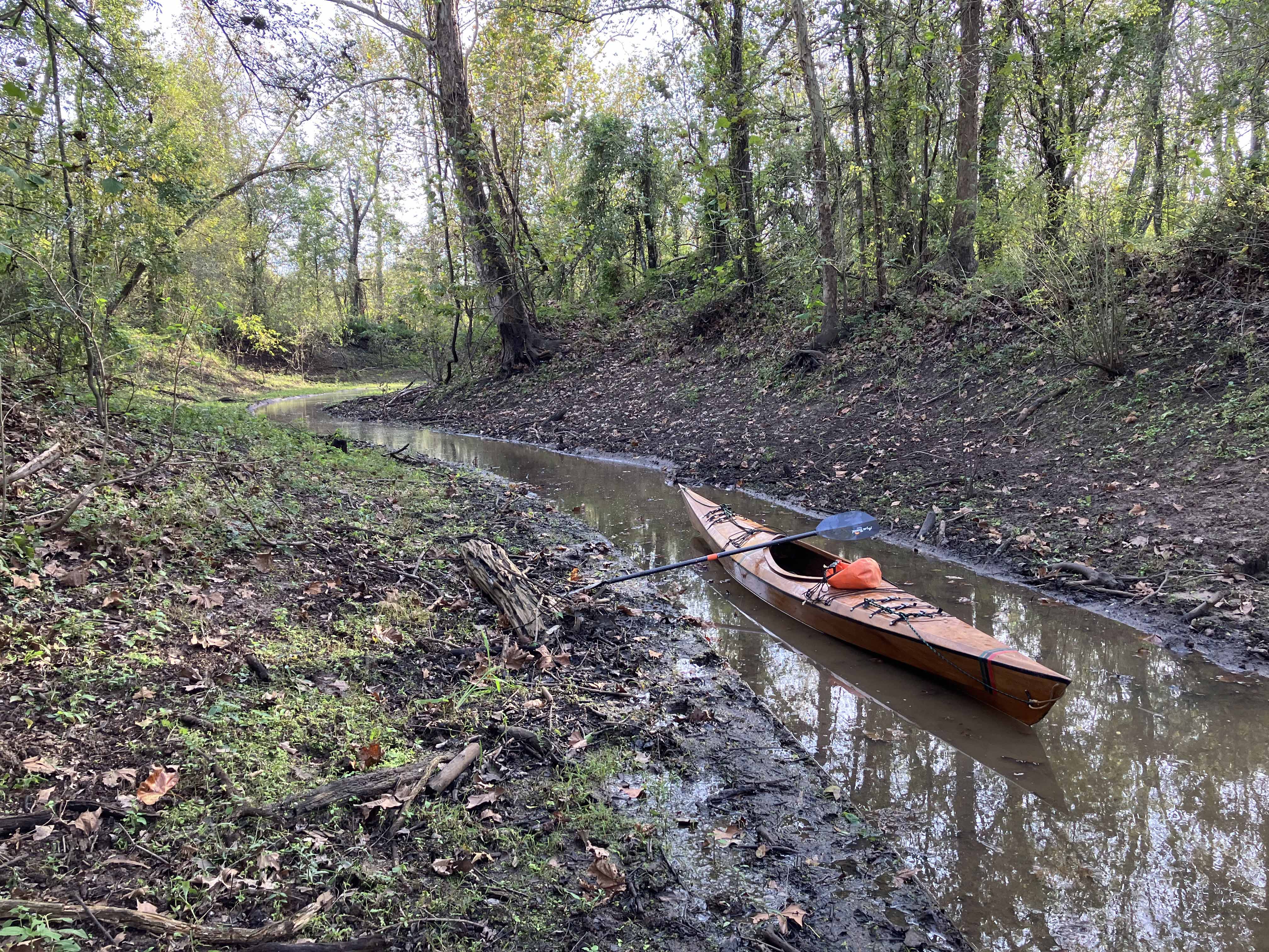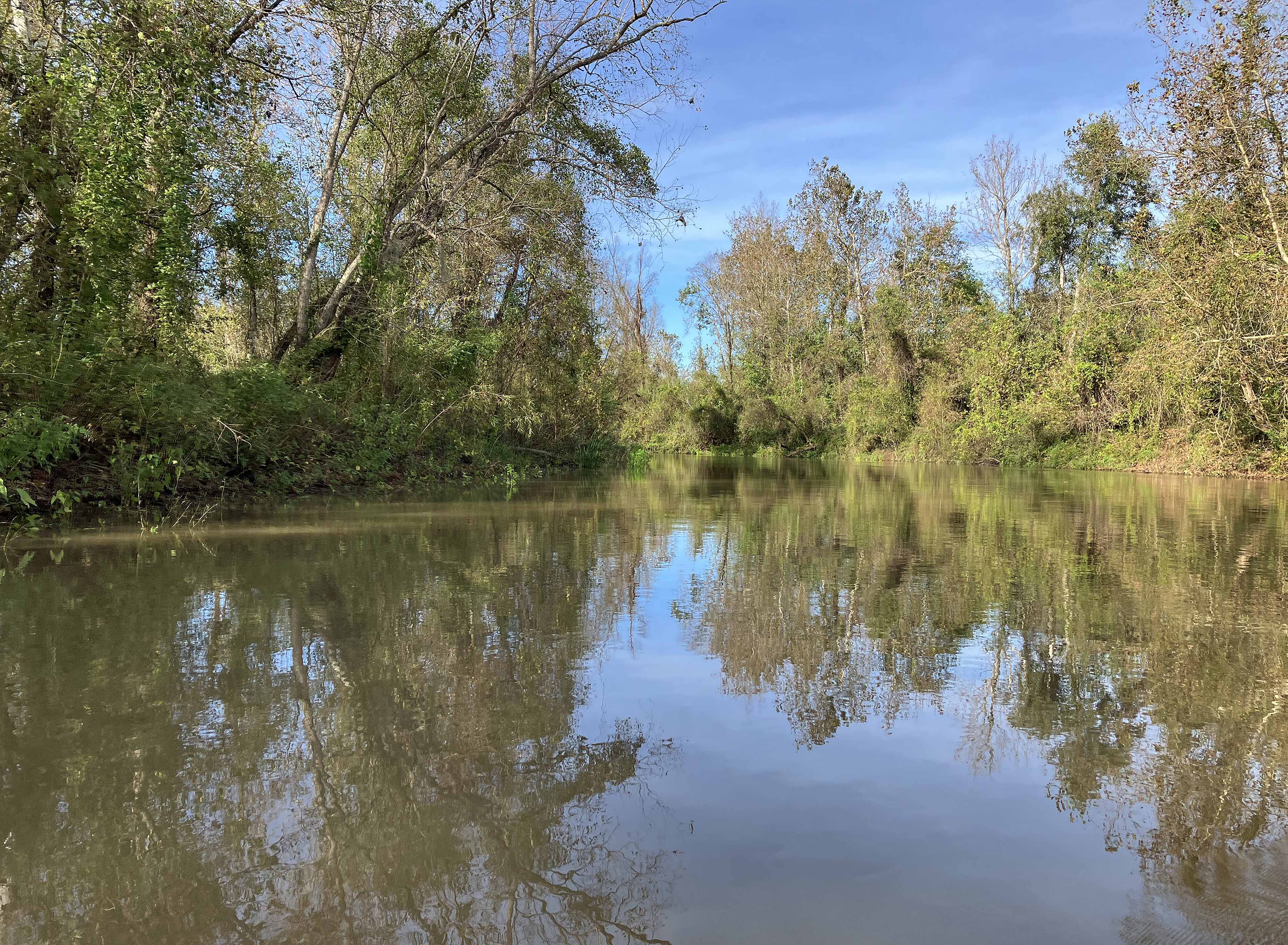 The kayak trail map route above launches at the so-called northern Sandy Cove Landing off of Levee Road south of Lake Fausse Pointe State Park. Although the route is fairly short, only about two to three hours or so, it’s actually a very nice Atchafalaya paddle. Unlike many routes in this area, which tend to follow this or that corridor or canal, this one feels more swampy. The trail is noted in Herndon’s book and there is a good map on the Pack and Paddle website. There are a few side channels that would be nice to explore, but I launched mid-afternoon after driving from Dallas and, not being familiar with the route, and particularly the portage, I wanted to be sure to get back before dusk. The level of darkness at a given time in the evening changes (a bit) as you go east or west within a time zone, and in mid November at 5 pm it was car headlight time and at 6 pm it was black, stars out. The crossover point back to the big Bayou is a narrow curvy channel that had very little water. I had to pull the boat a couple hundred yards through this before reaching the actual up and over back to the main channel. Better than if it were dry though. If you don’t mind the portage, this is a good Atchafalaya paddle and one that is conveniently close to Lake Fausse Point State Park. Atchafalaya @ Butte La Rose gage about 6.