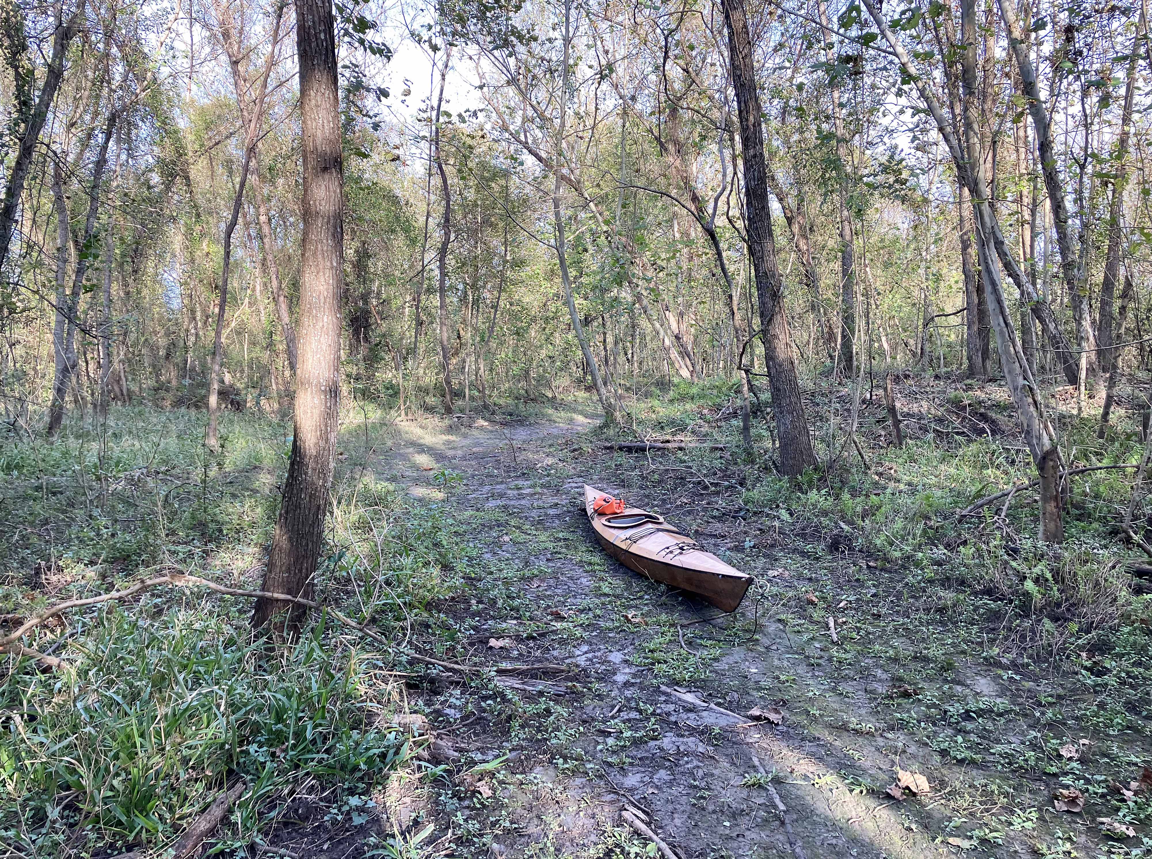 Above: Pulling the boat through to get back to the bayou.