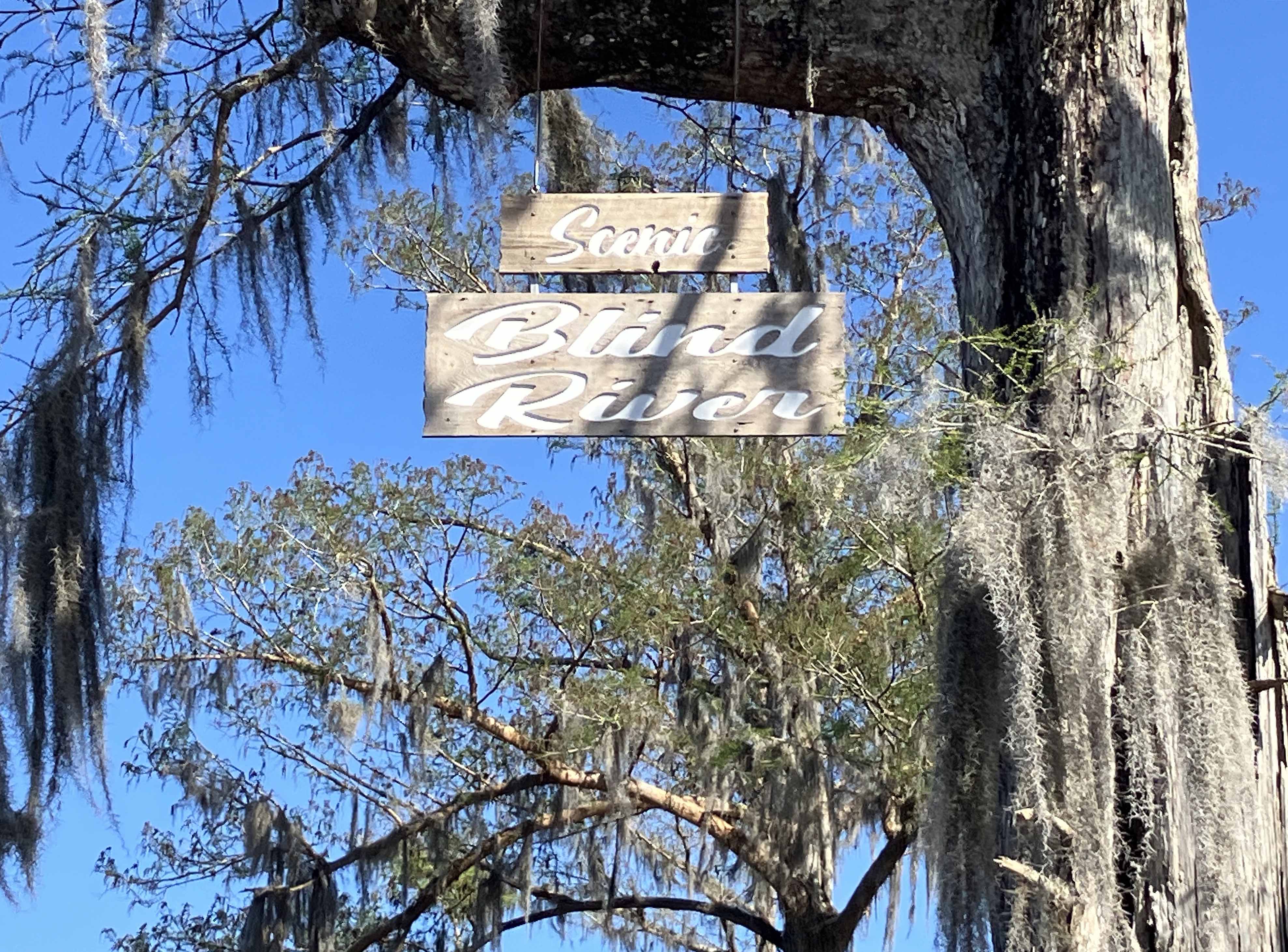 Above: ‘Scenic Blind River’ sign hung along the river.