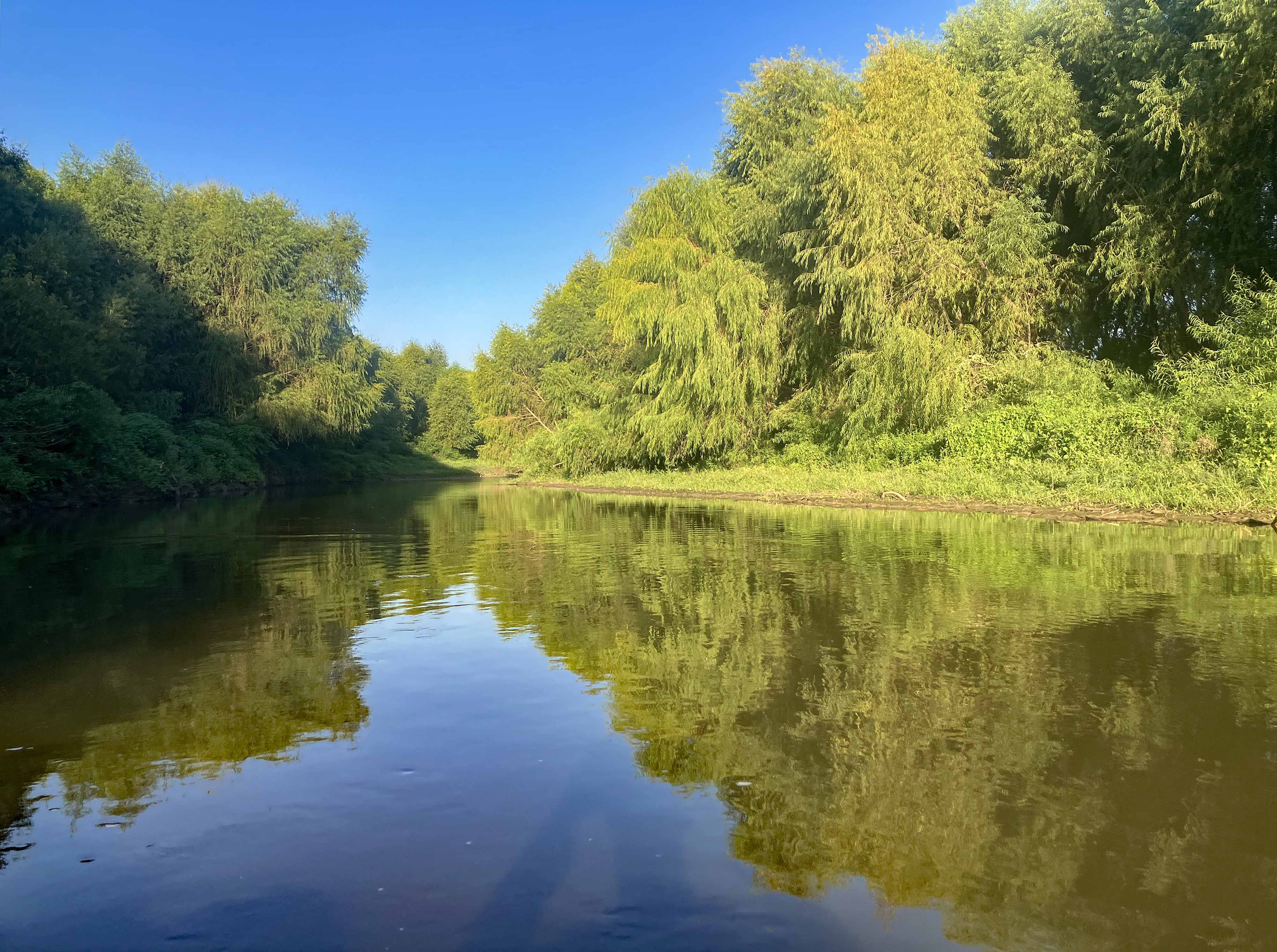Above: This was a portage on the way upstream. Here I pulled the boat around the logs. Coming back I went directly through the logs… and got the boat stuck pretty good, which took a bit of pushing and pulling to get it free.
