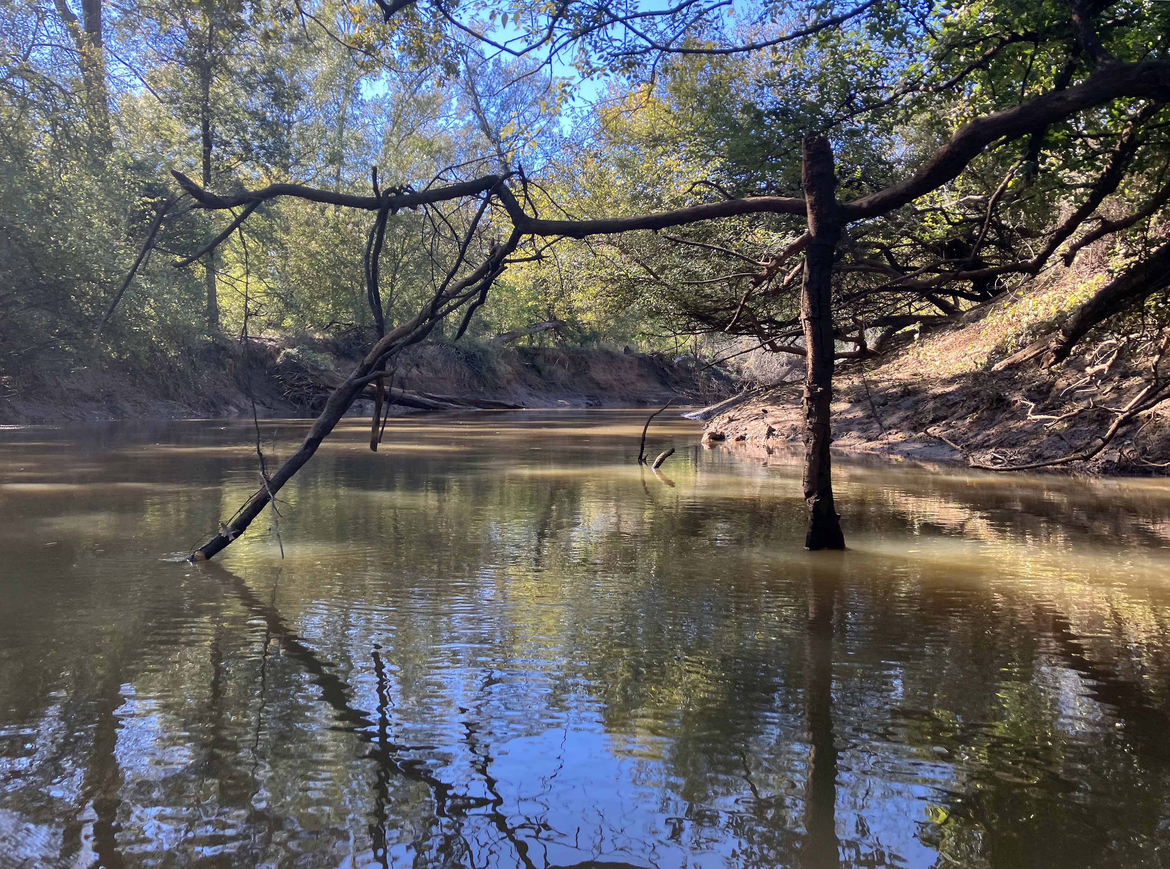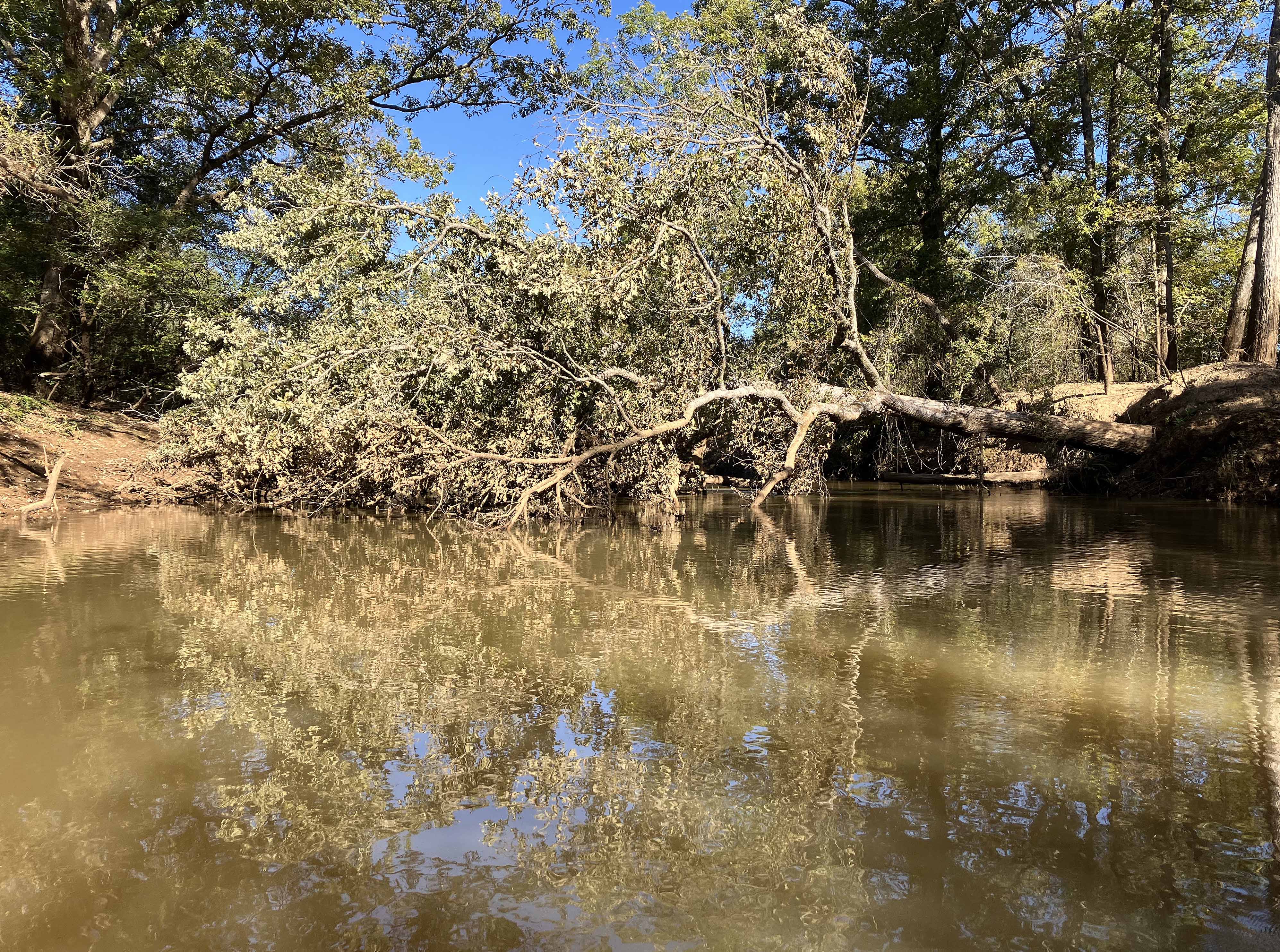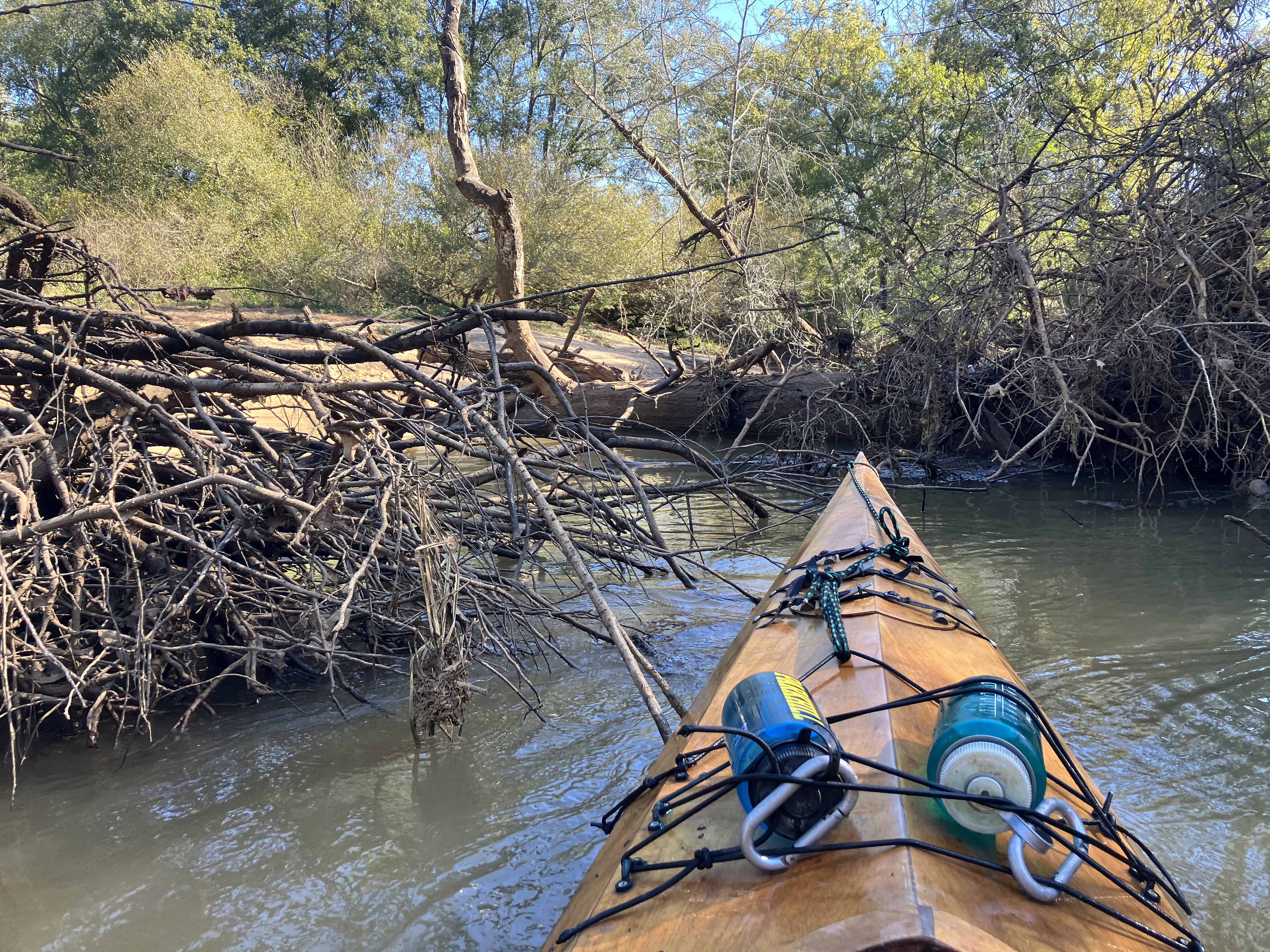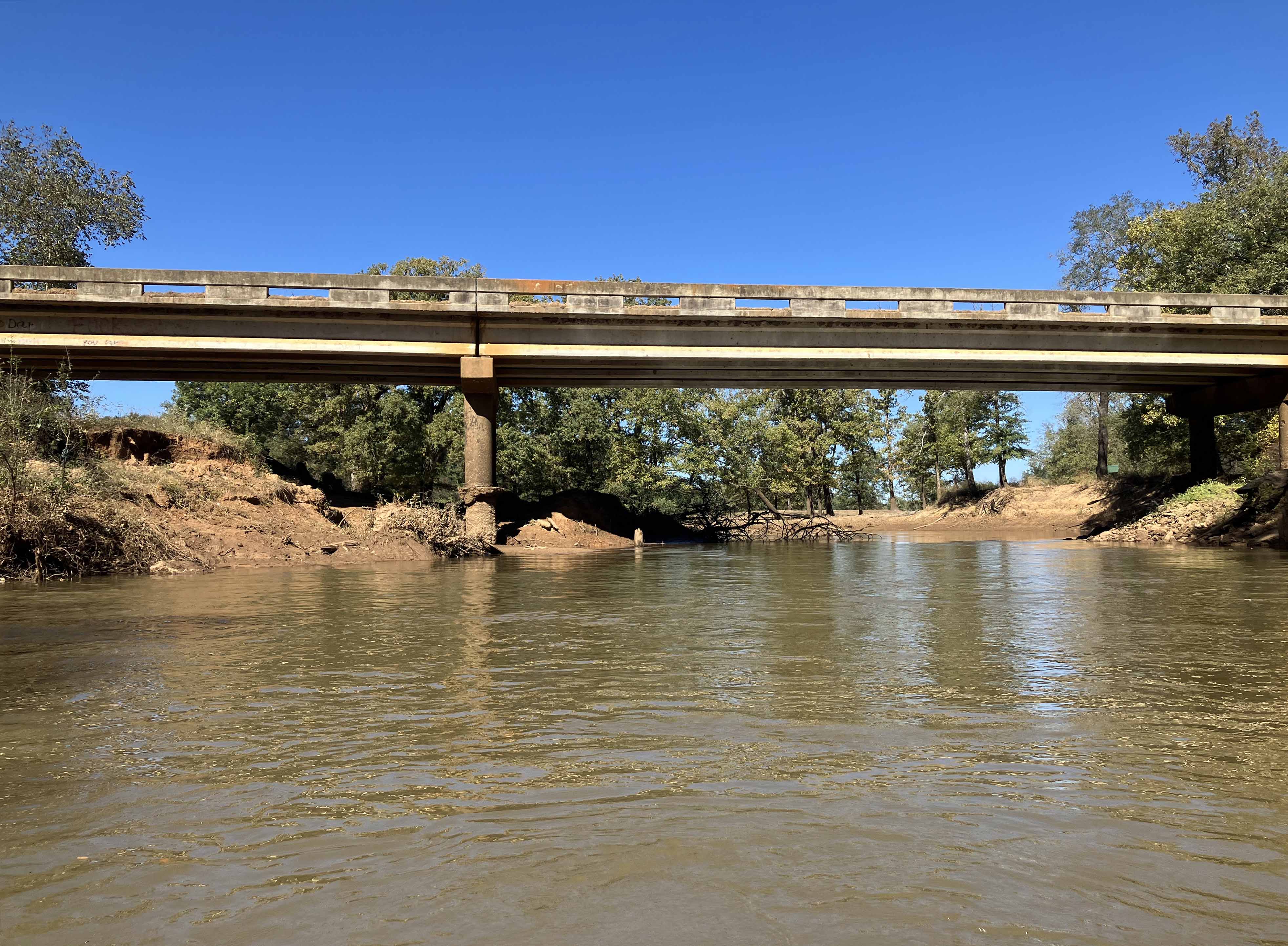 Kayak paddle trail route map on the Neches River near Palestine, Texas. The route here starts at the Highway 79 put in, goes upstream to the 335/3315 bridge near River Run Offroad Park, and returns to the launch. The route is the same as the “Cherokee Neches” trail on the TPWD paddle trails site. That one is a point to point, north to south, going one way downstream. Nice fall paddle, clear weather and cool. There was quite a bit of fallen tree debris in the river but only two or three spots required ‘get out of the boat’ workarounds. The rest could be solved as little paddling puzzles, over, around, under, etc. Or by scooching, the unh unh unh to get off of a high center, there was quite a bit of that. The turnaround point, about 6.5 miles up, is the bridge near the River Run offroad park. Across Highway 79 is the Neches River NWR; a dirt road leads into the refuge and there are several nice hiking trails. Didn’t see much wildlife on the paddle this day, but the scenery was great. The USGS gage Neches Rv nr Neches read about 120 cfs, mild current. It took about 2 hours to go up and an hour and a half to get back.