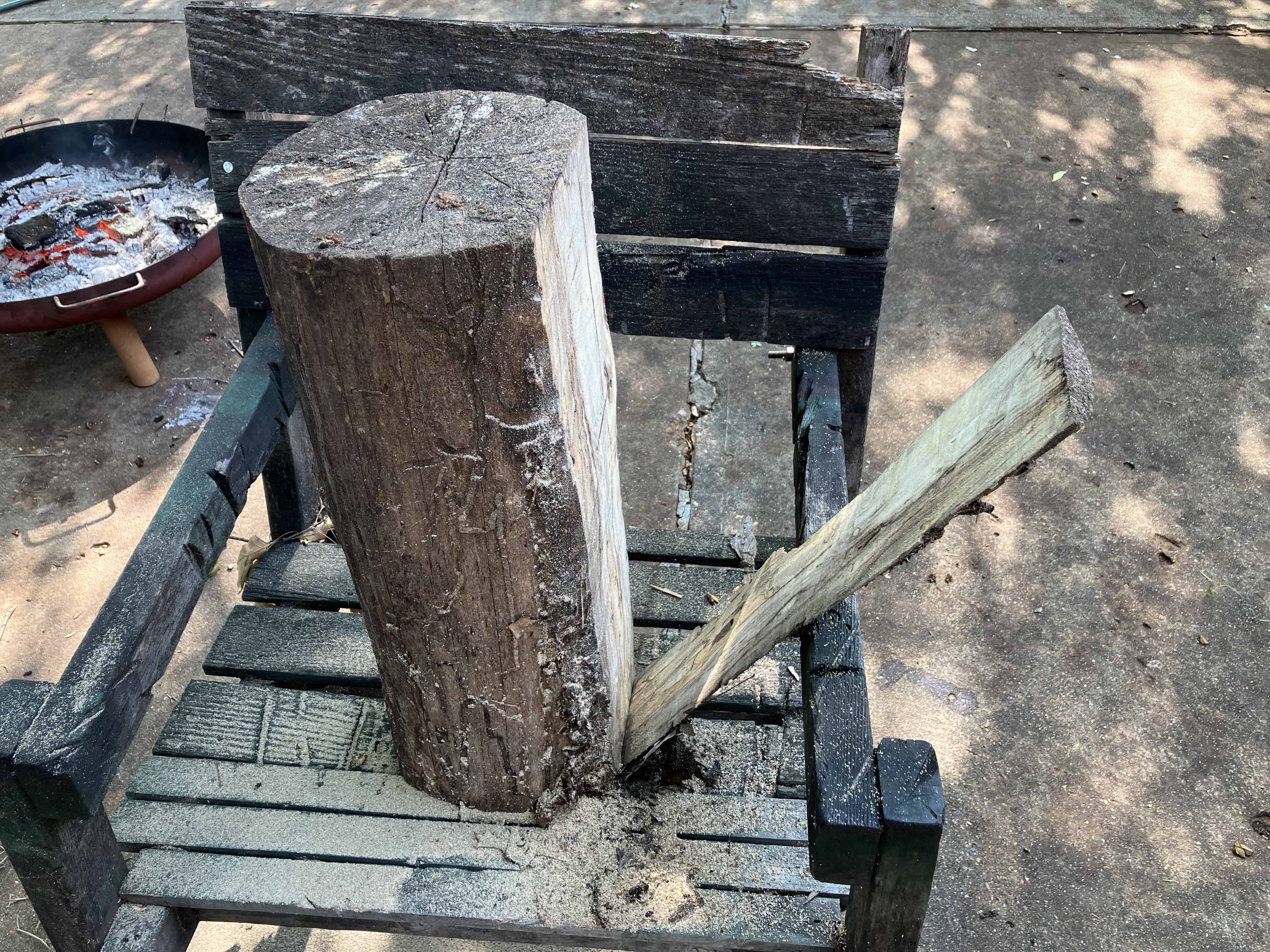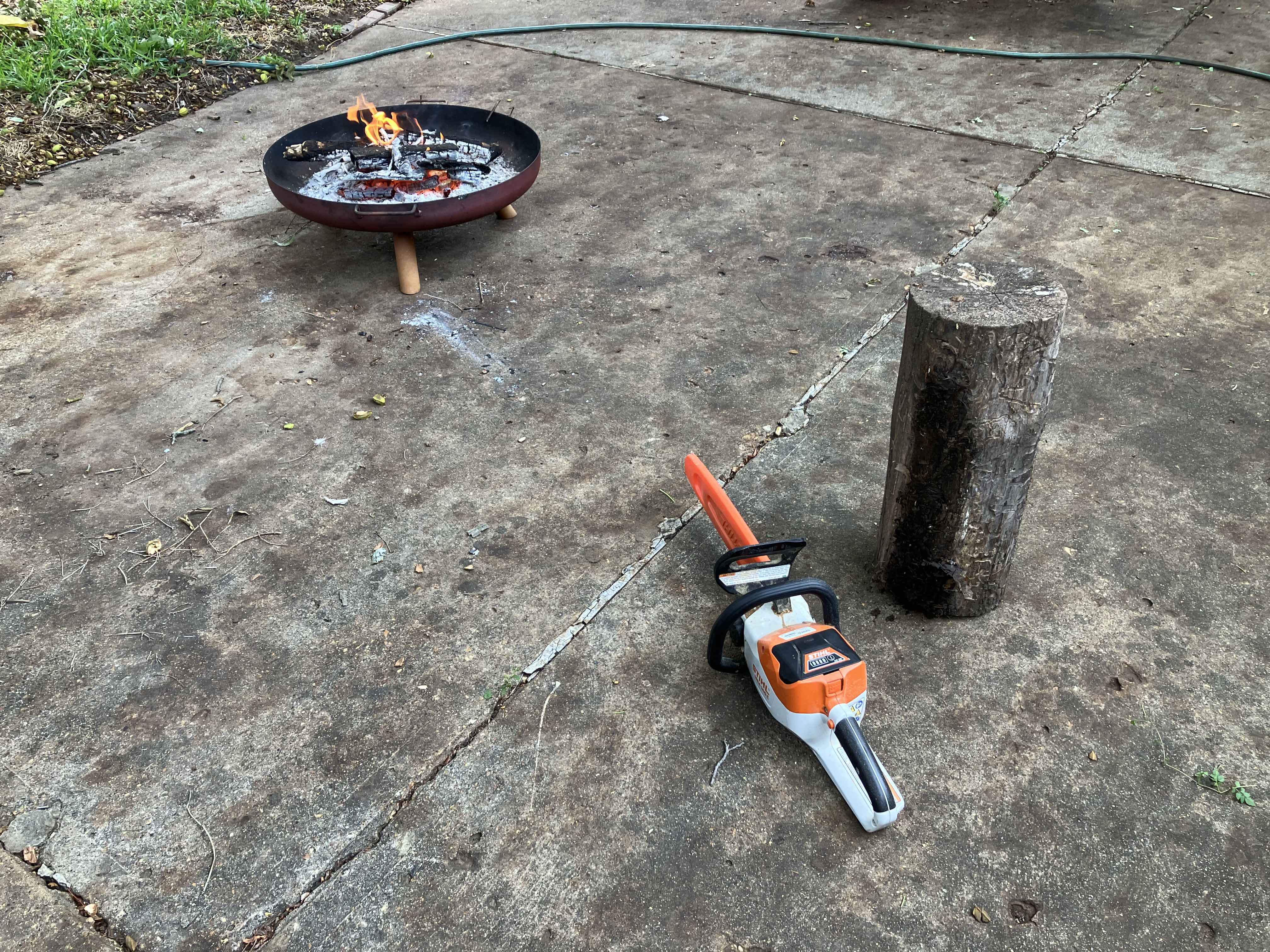 The chainsaw is used to make the first cuts, the fire is for discards.