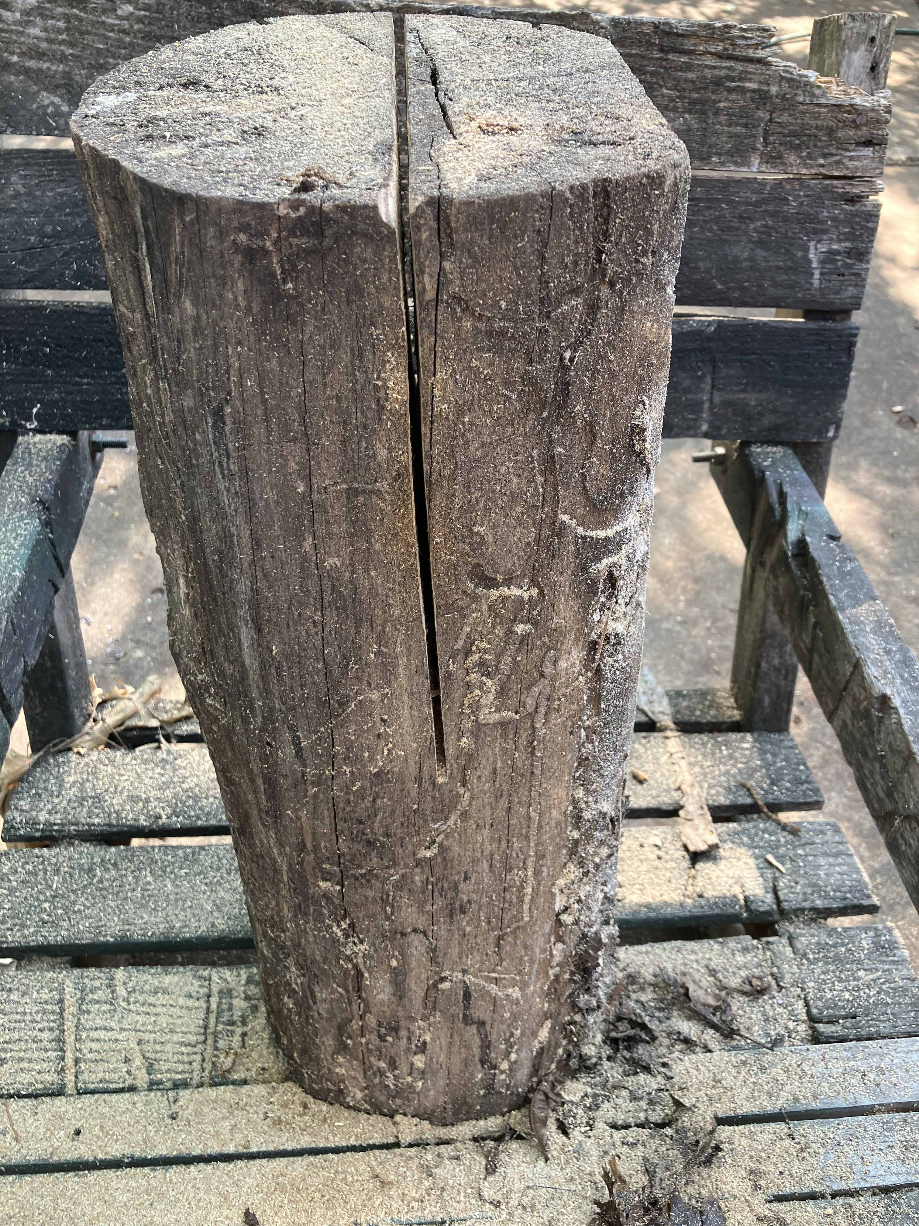 The next cut makes a slab. Looks slightly crooked but no matter.