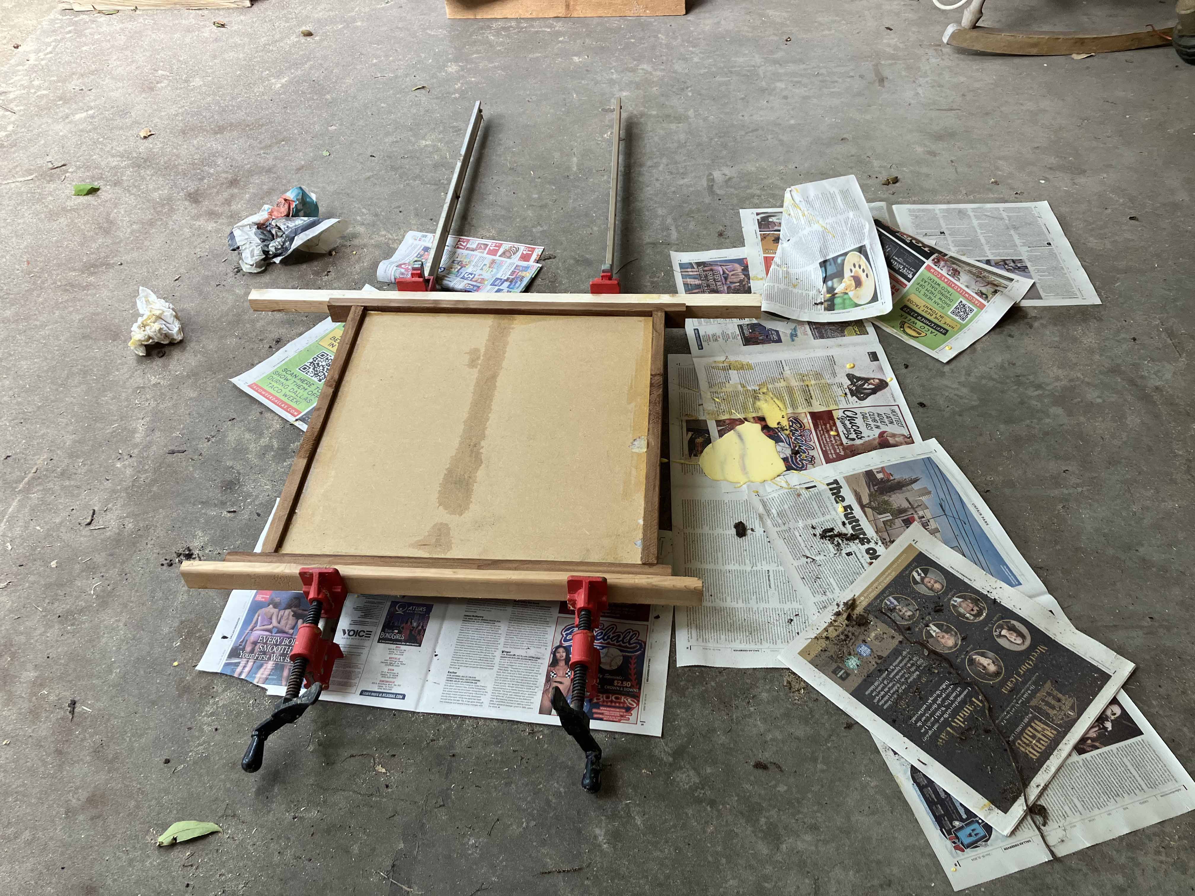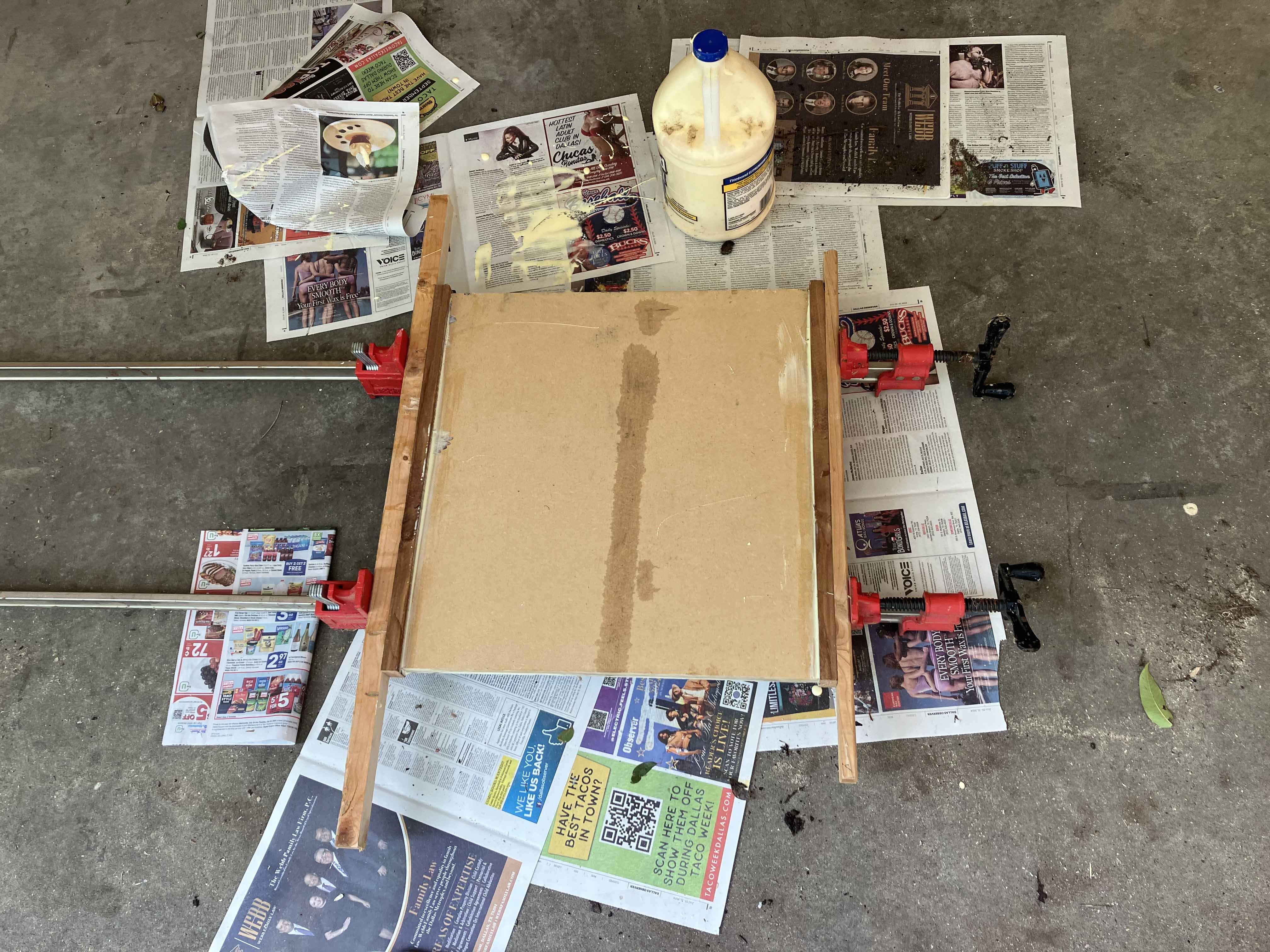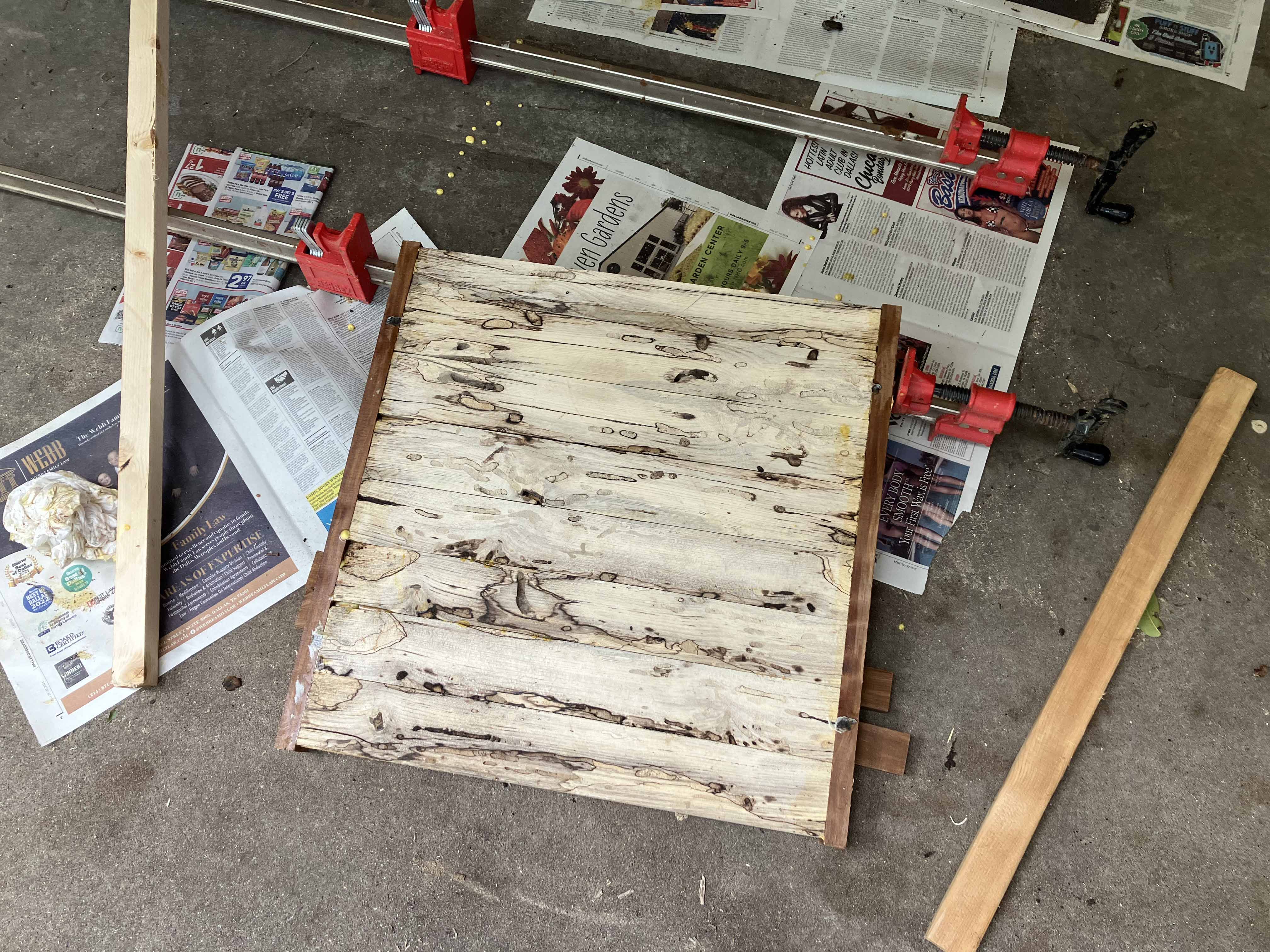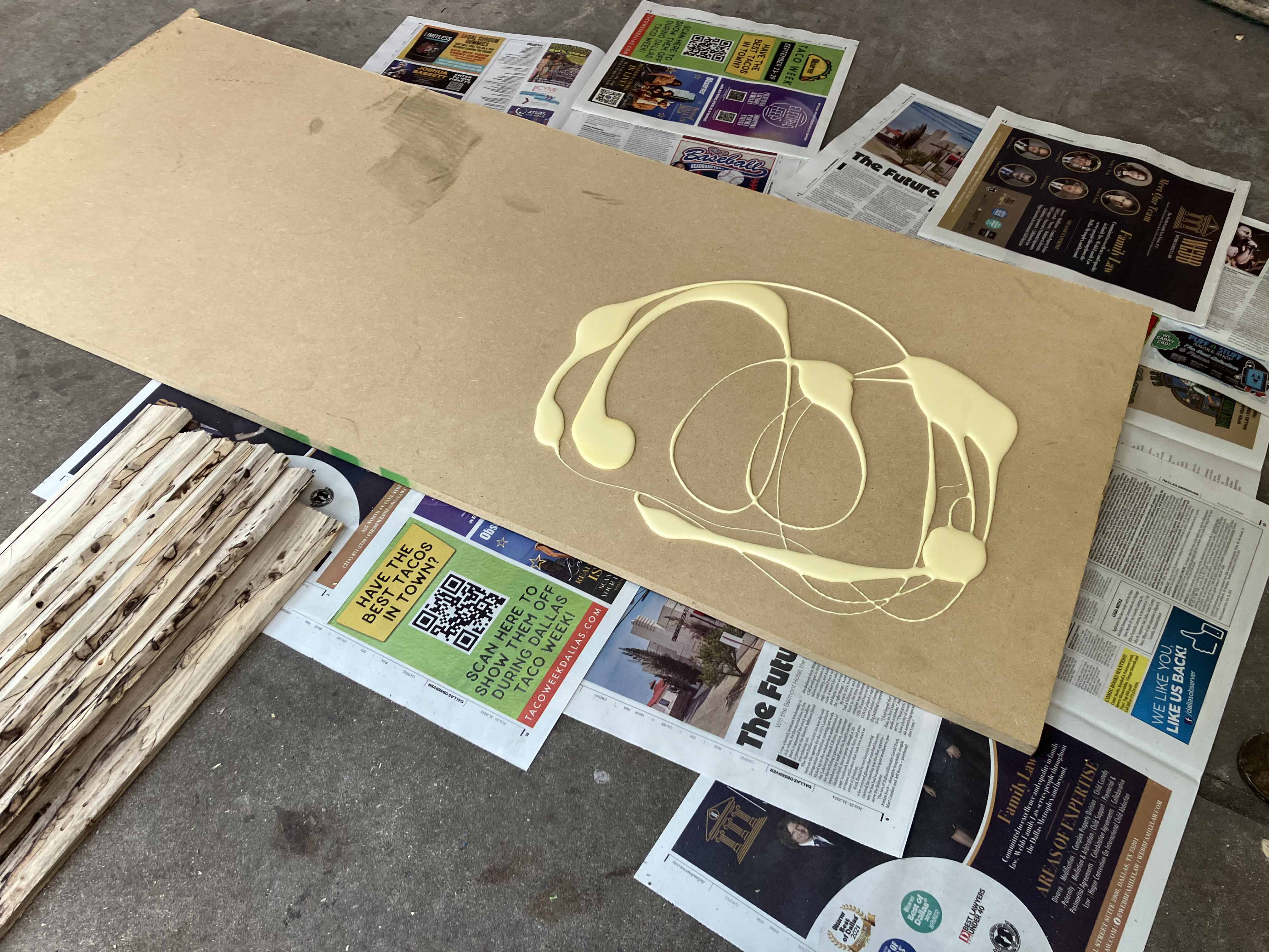 Now we glue the slats onto a backing.