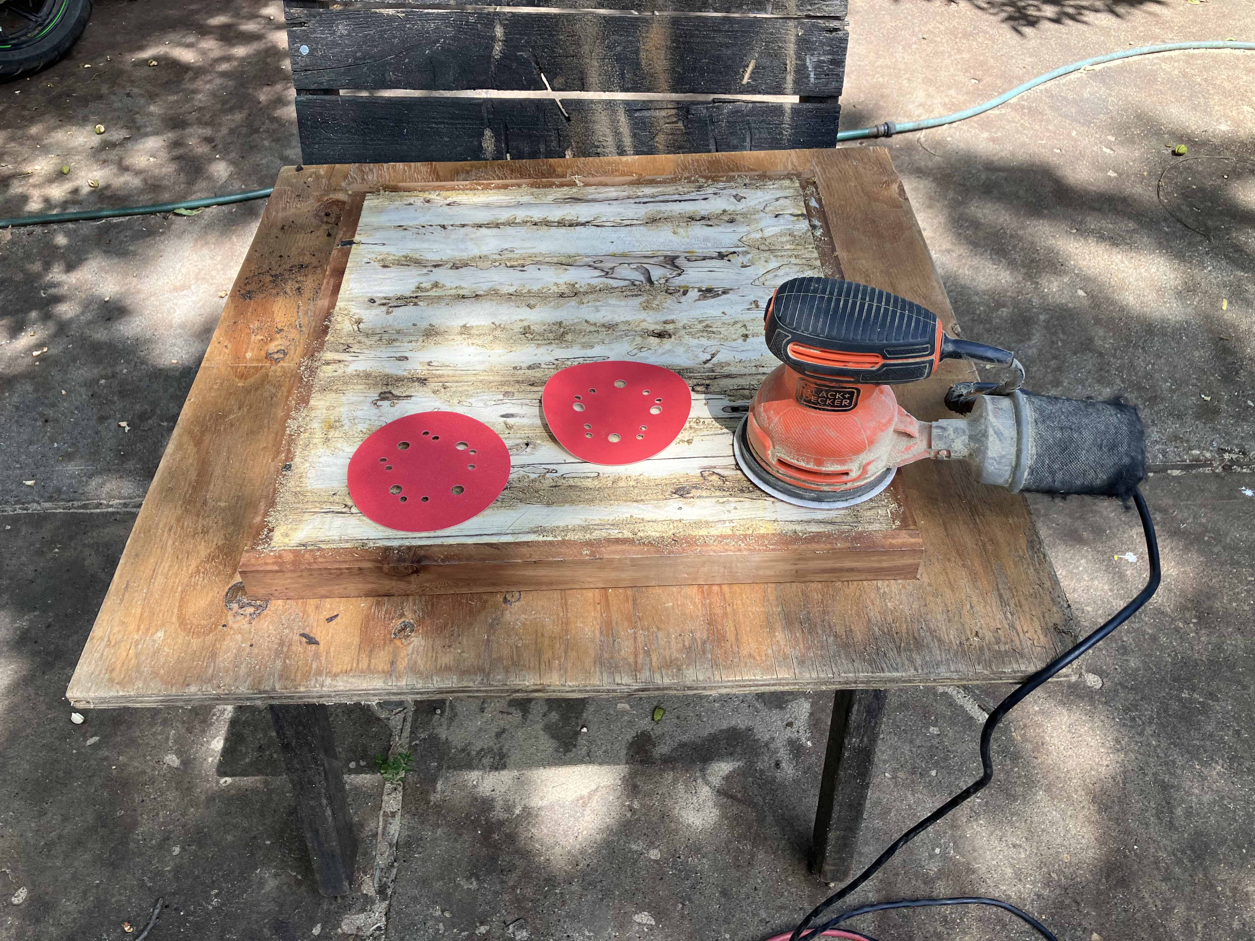 Here the sander is making one edge a bit more straight.