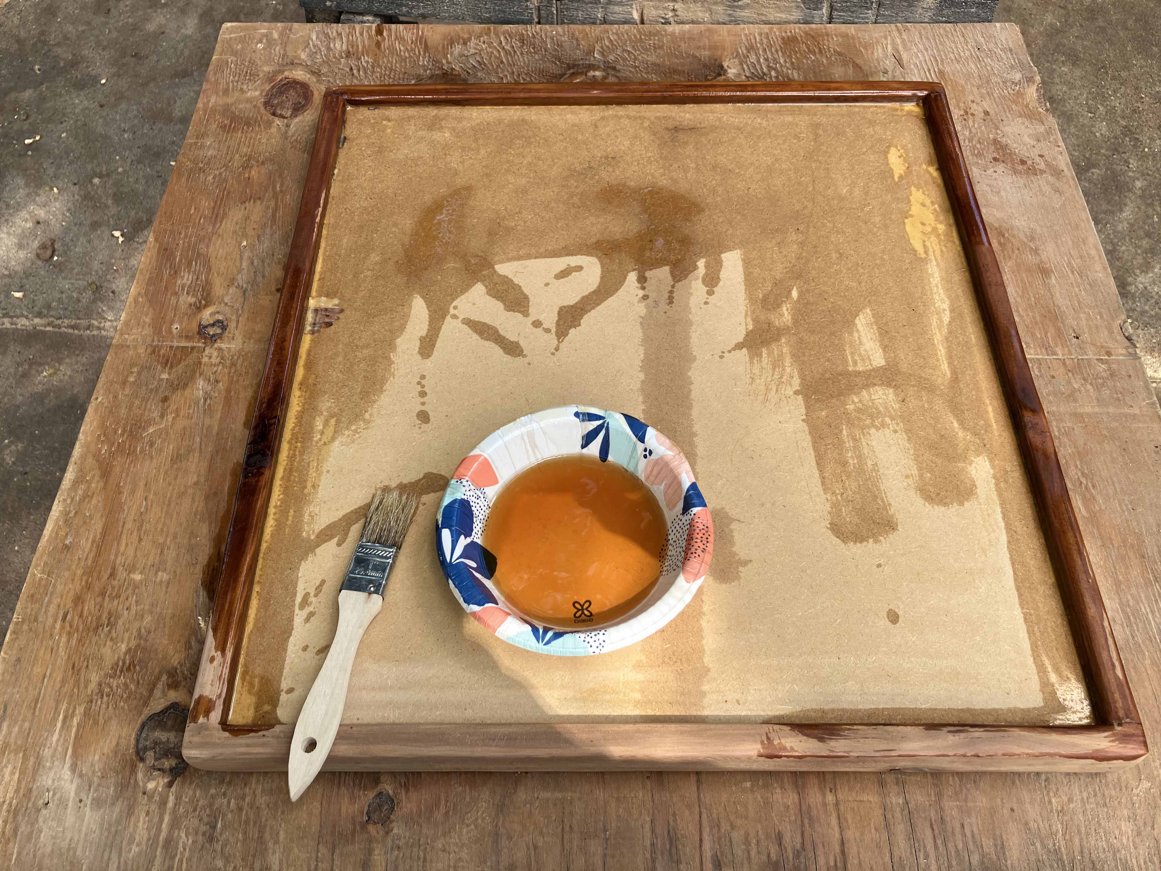 Putting Danish oil on the front. Can do multiple coats if desired.