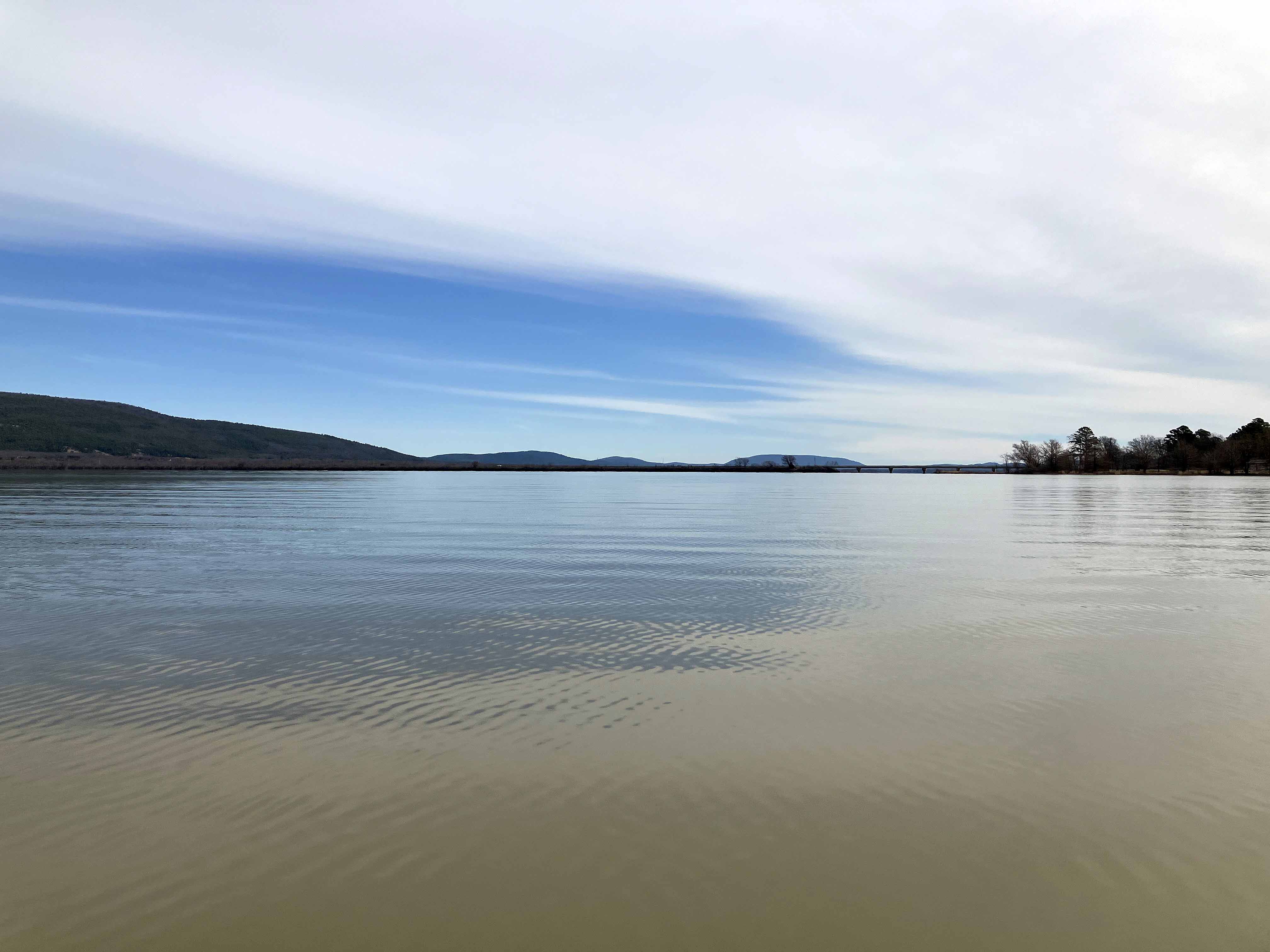 Above: The Ouachita mountains of Oklahoma seen by a person paddling a kayak on Sardis Lake.