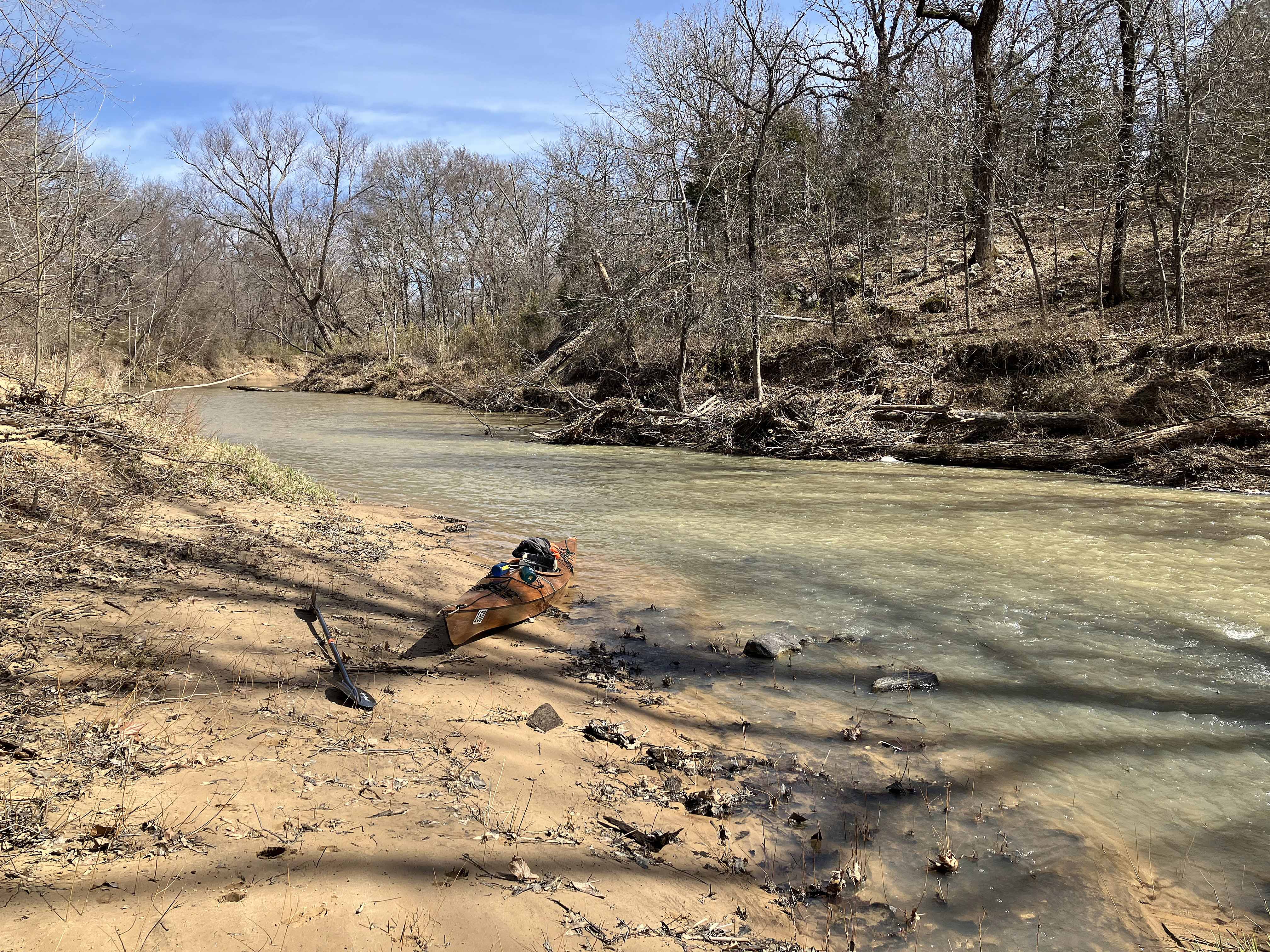 Going up the creek I smelled smoke. Out in some remote section of the paddle, maybe 10 yards from the creek, and behind the brush so I couldn’t see, smoke was rising. Somebody was clearly there, but I don’t know more or why. The smell of smoke is a primitive signal of nearby humans and it puts you on alert very quickly.