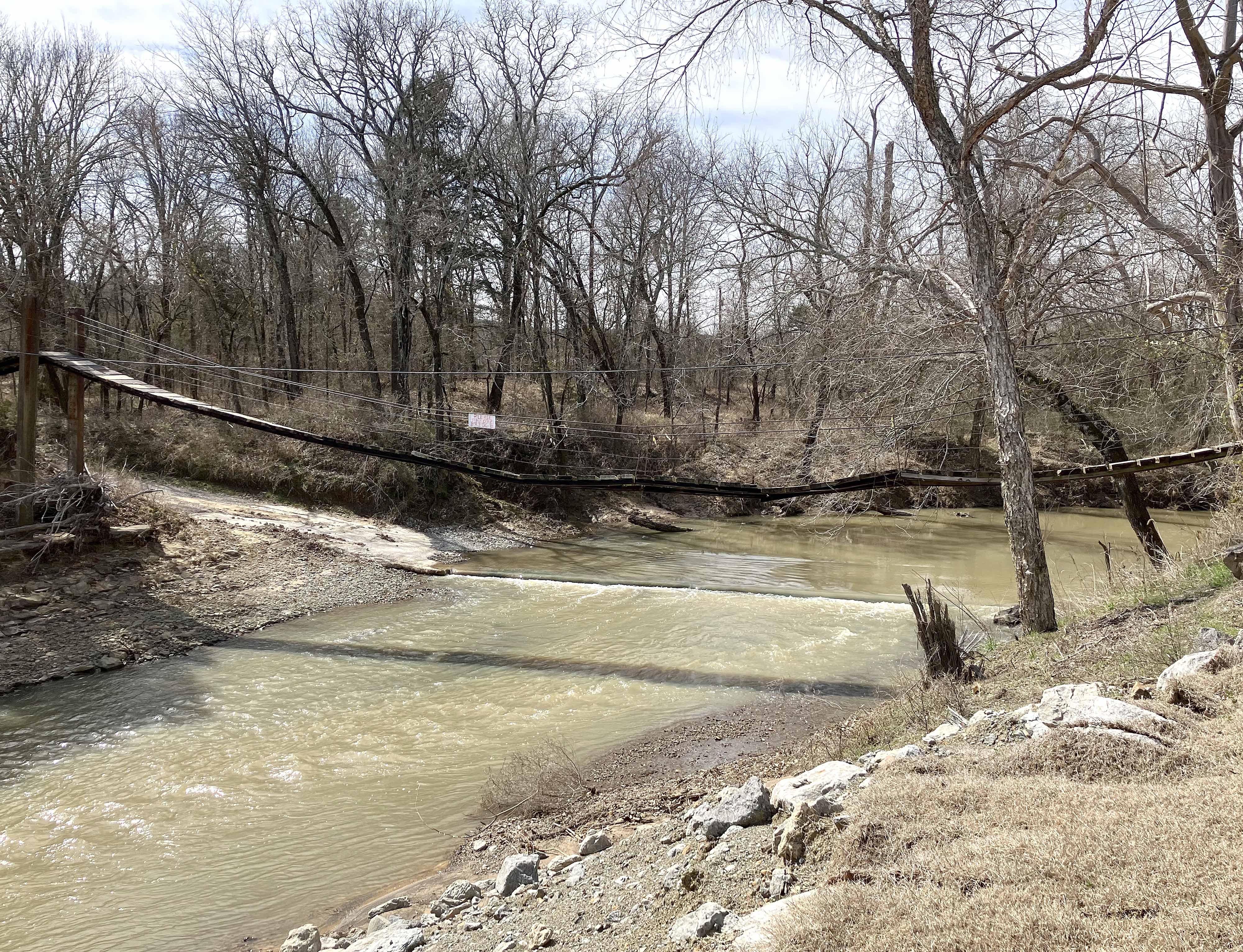 Above: The homemade suspension bridge at the Swinging Bridge Road turnaround point. It is posted.