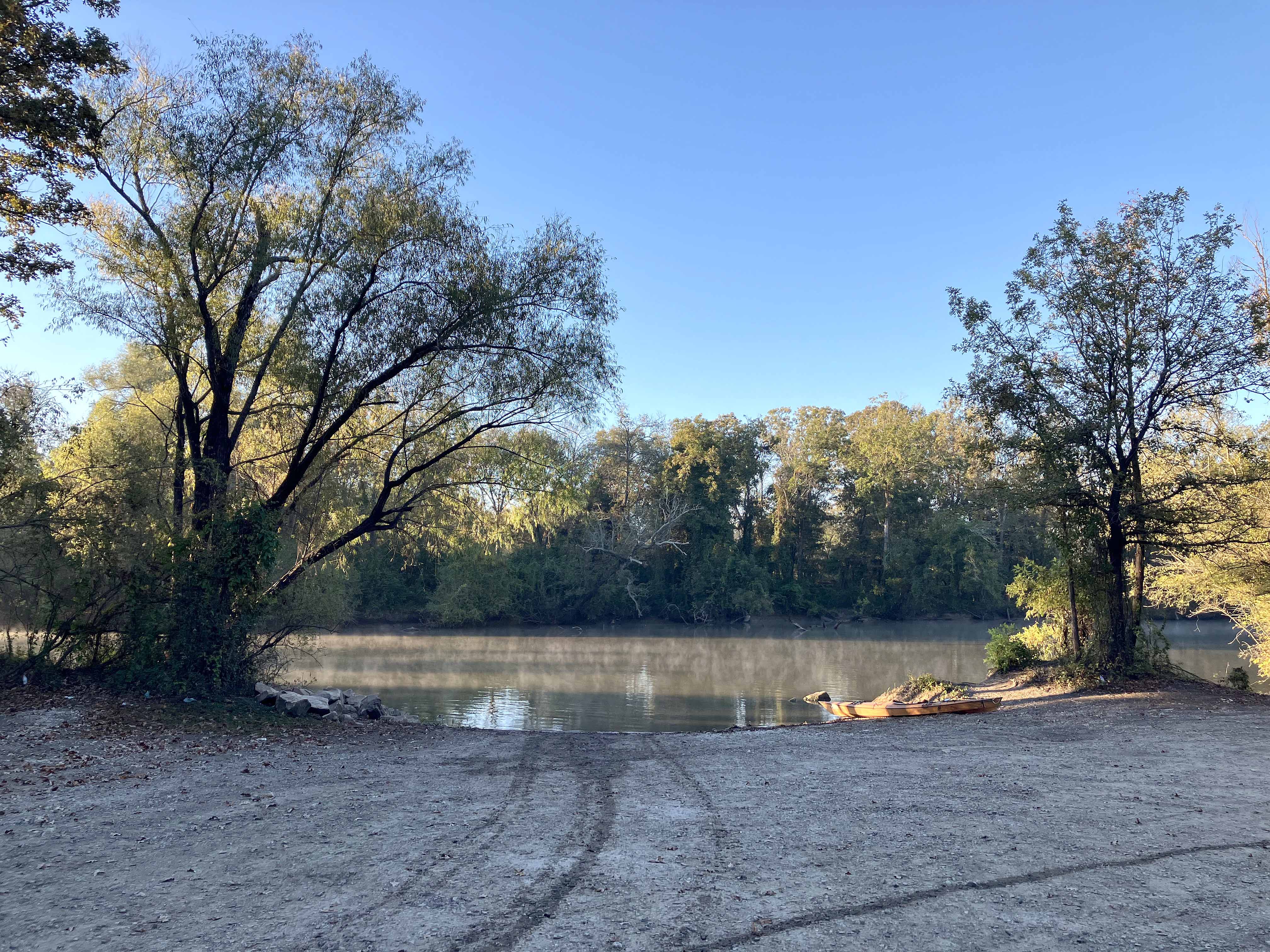 Above: Early morning on the Sulphur River, steam is rising off the water.