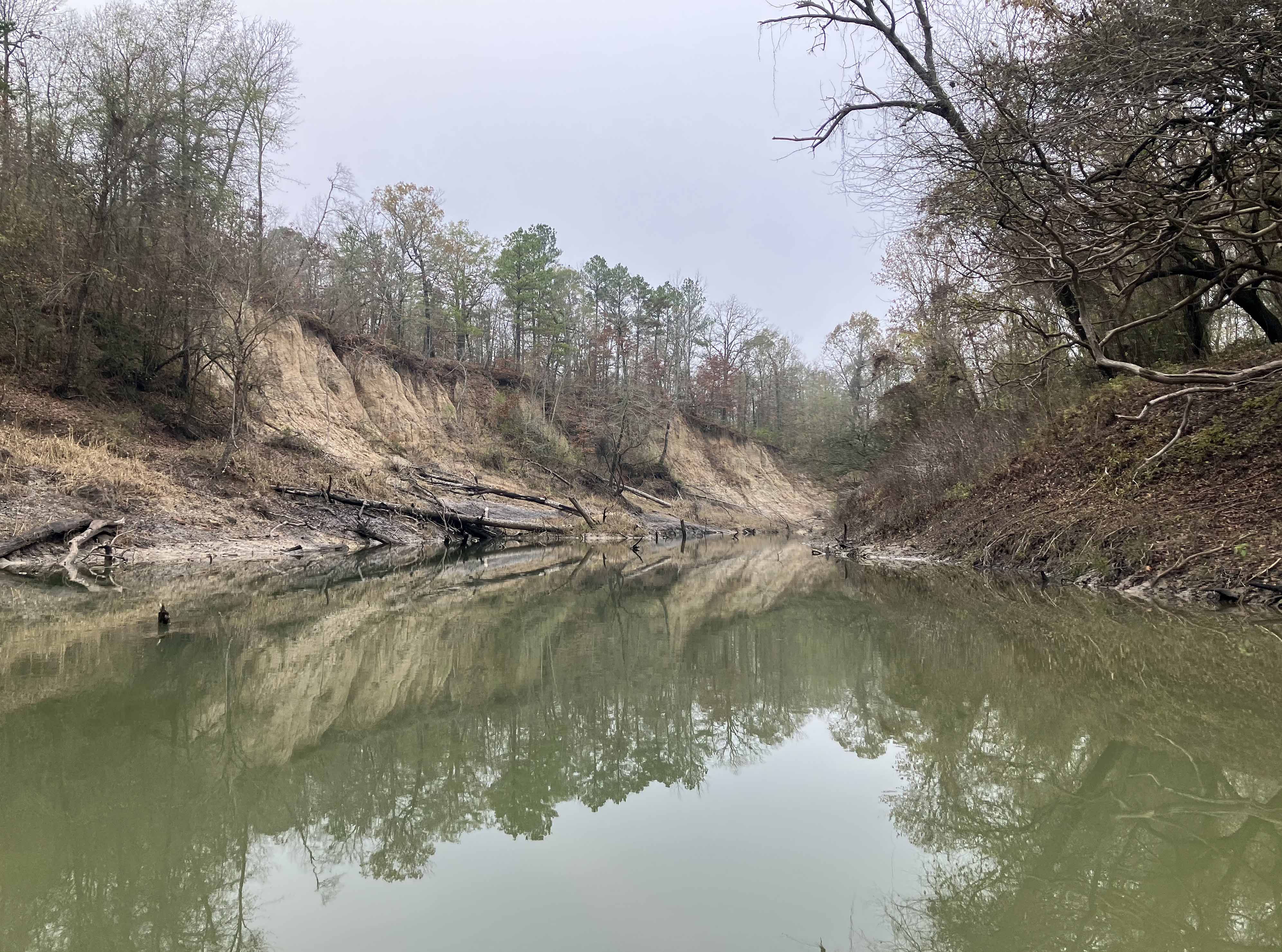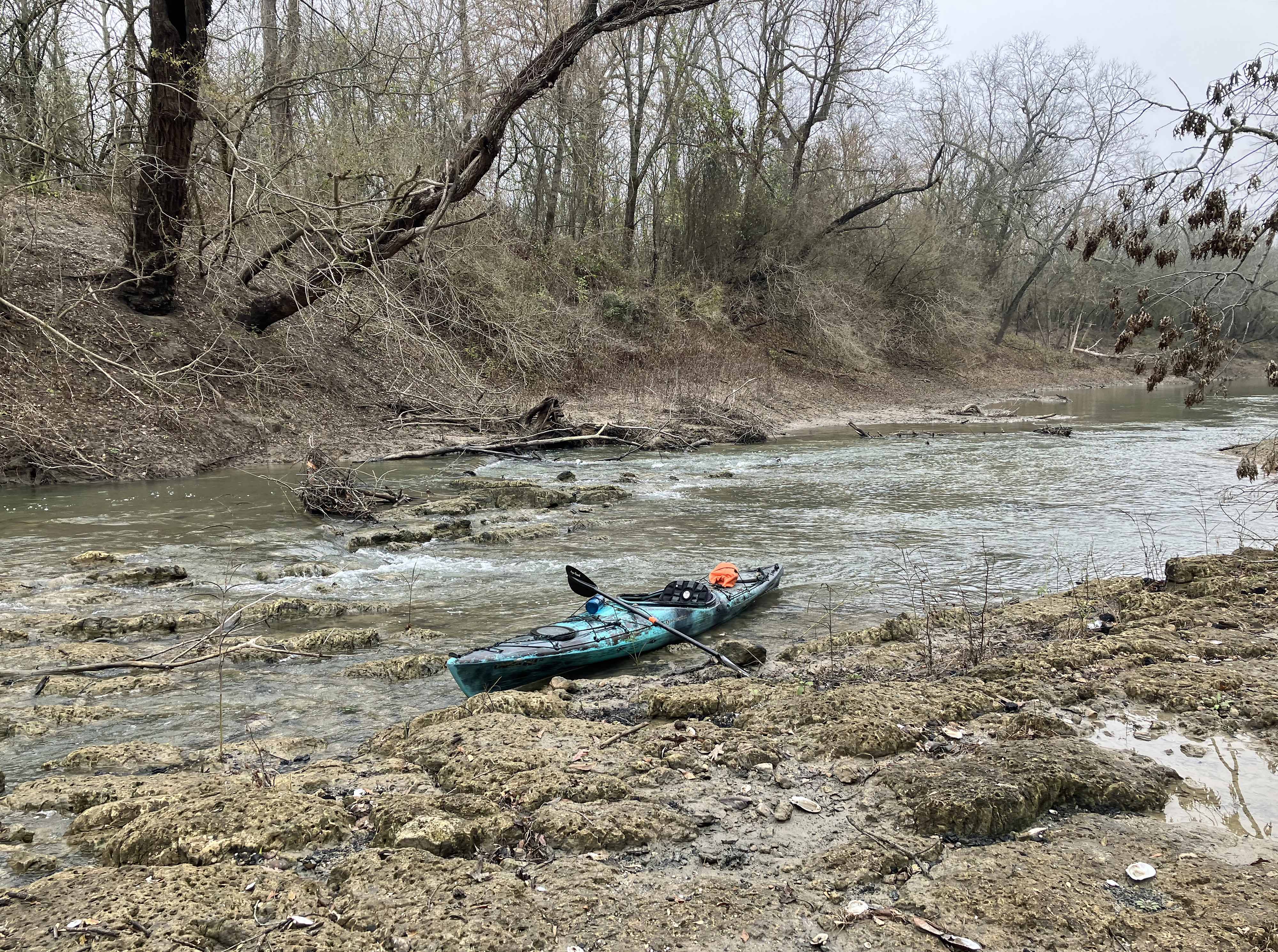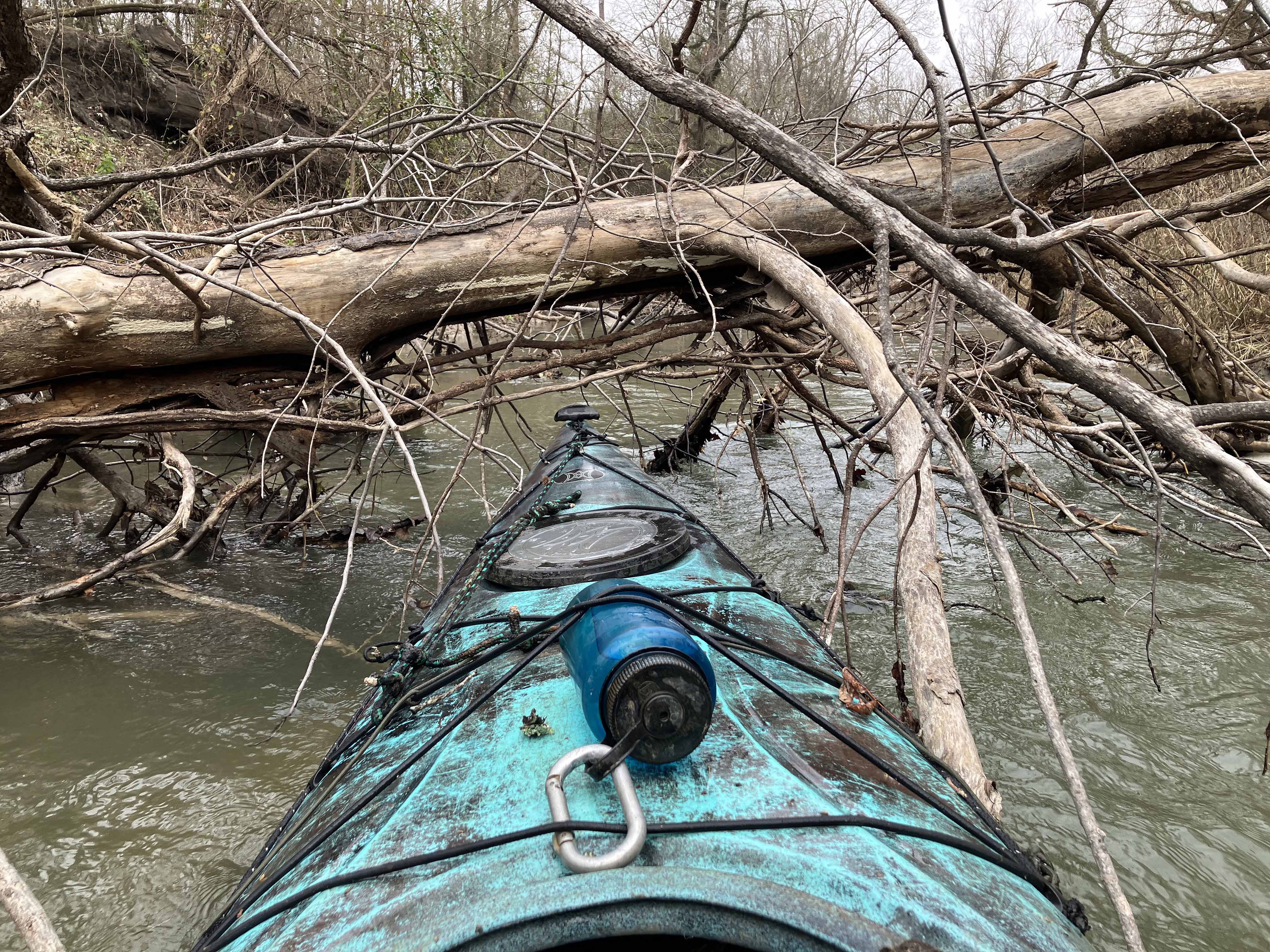 Kayak paddle trail route map on the Sulphur RIver, TX, starting at the Highway 259 Launch. This is a second trip from this launch, this time going upstream. The USGS flow rate of the Sulphur River at I-30 was about 25 cfs, much better than the earlier trip going downstream when the river was at 1 cfs and which was pretty rough log jam-wise. And it had recently flooded so maybe that cleared stuff out as well. The river was wide most places, mild current, easy to paddle, with only a few get out of the boat portages. It should be possible to paddle further upstream but I haven’t found good put-in spots. Saw three beavers and some deer. Winter can be a great time to paddle, stark, silent, crisp, the pictures show the feel of it. Three hours up to a turnaround point, two and a half back. Game warden was waiting, blocking the exit from ramp, verified I wasn’t hunting (there is a nearby White Oak Creek WMA that people camp/poach on), verified I had a life jacket, then told me some amusing stories, interesting fellow.