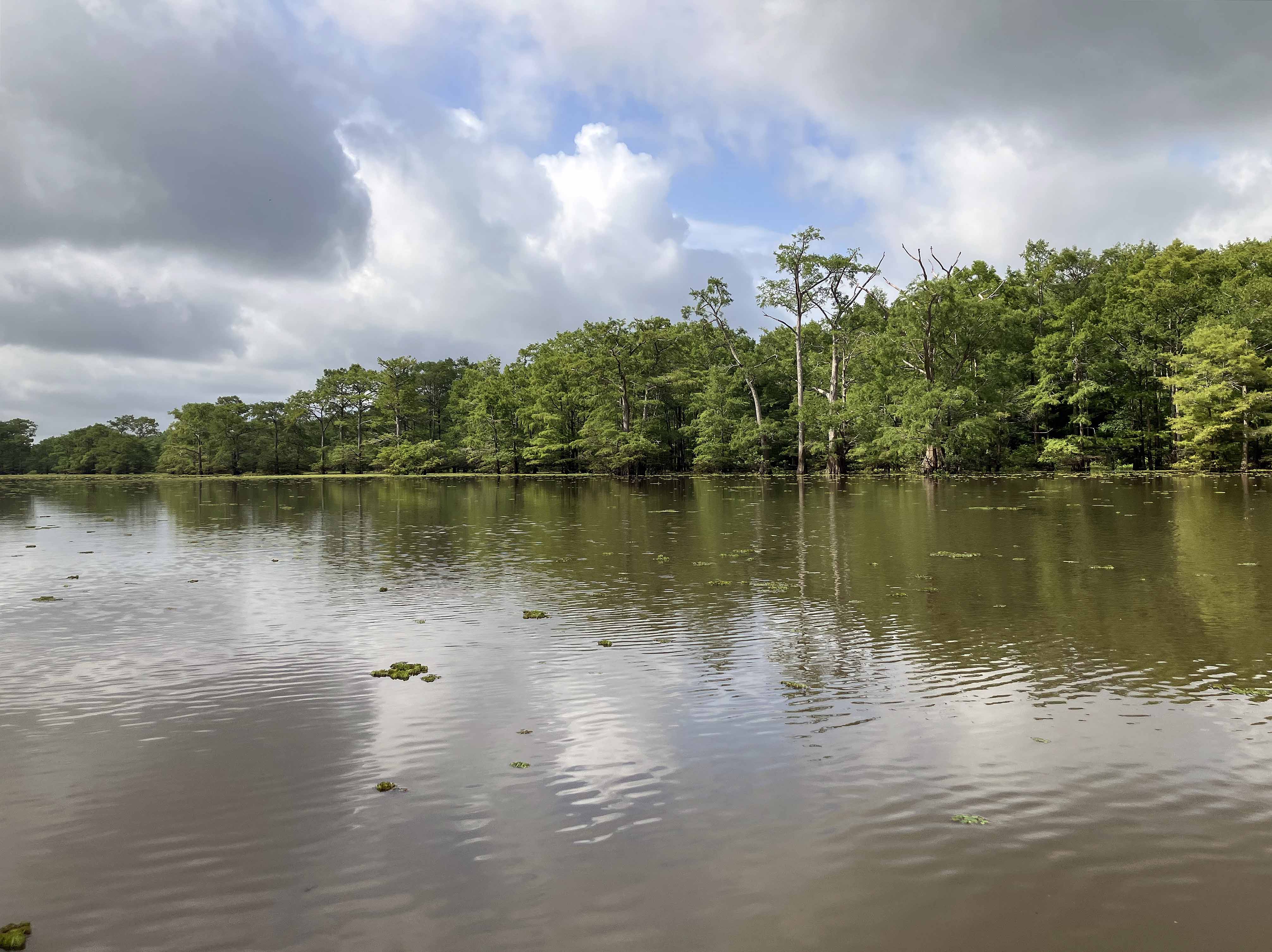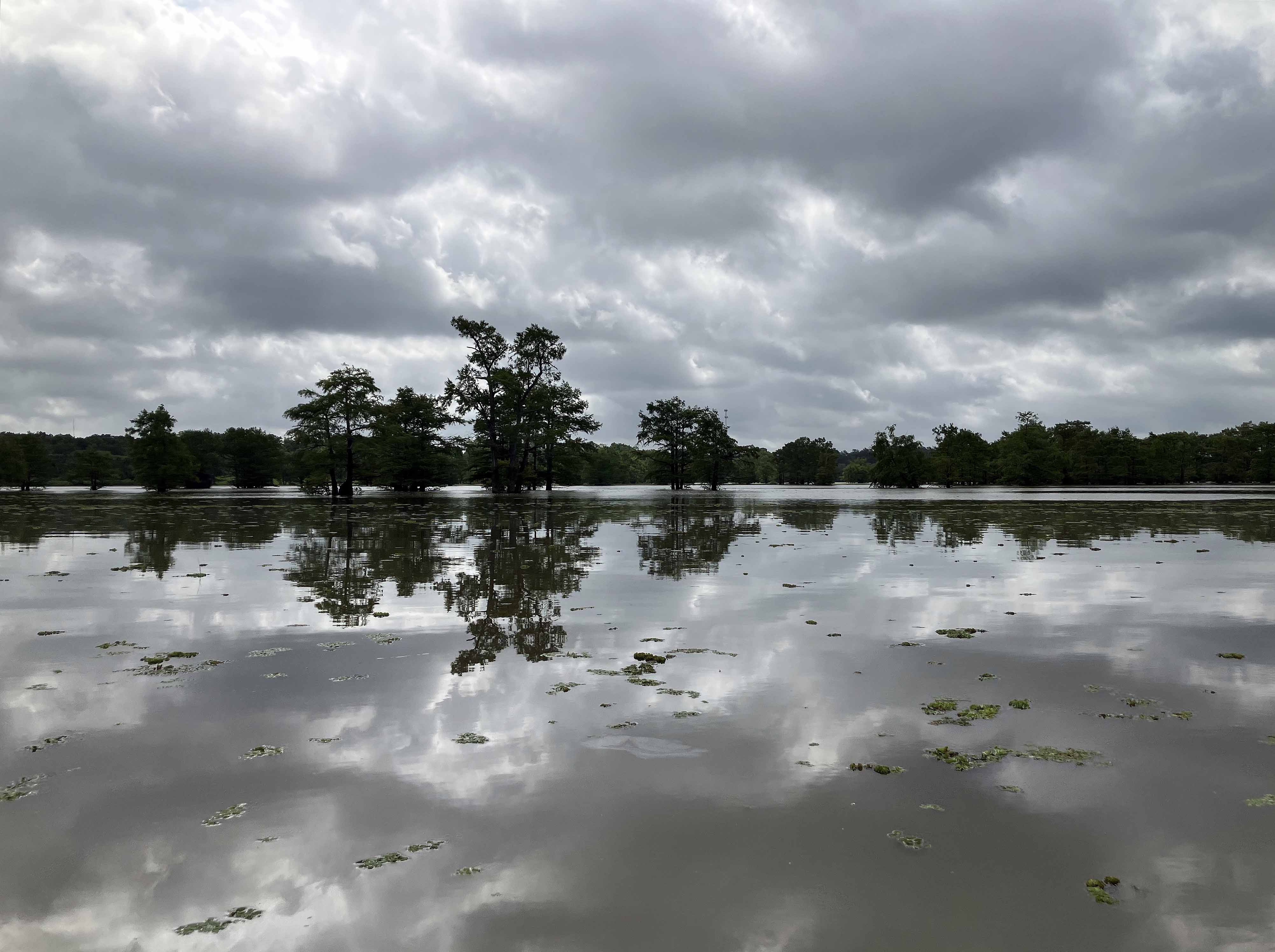 A second kayak route trip map out at Wallace Lake, launching from Milton James Cameron Park just south of Shreveport, LA. I drove from Dallas early on a Saturday morning and there was nobody else at the launch, kind of surprising. The goal for this trip was to head down to the Wallace Lake Dam, but the salvinia stopped progress at the point of the yellow dot turnaround shown on the map. After turning the boat around, which wasn’t easy, I followed the west ‘coast’ back up towards the launch site, exploring all the nooks and crannies that I could. The route then goes up to the I-49 bridge and into a lake there, and finally returns to the park to load the boat for the drive back back to Dallas. Like Caddo, the shoreline of Wallace Lake is not always easy to get to so you mostly paddle in and around the cypress. Beautiful day, cool, a nice North Louisiana swamp paddle. Wallace Lake level at 144.57.