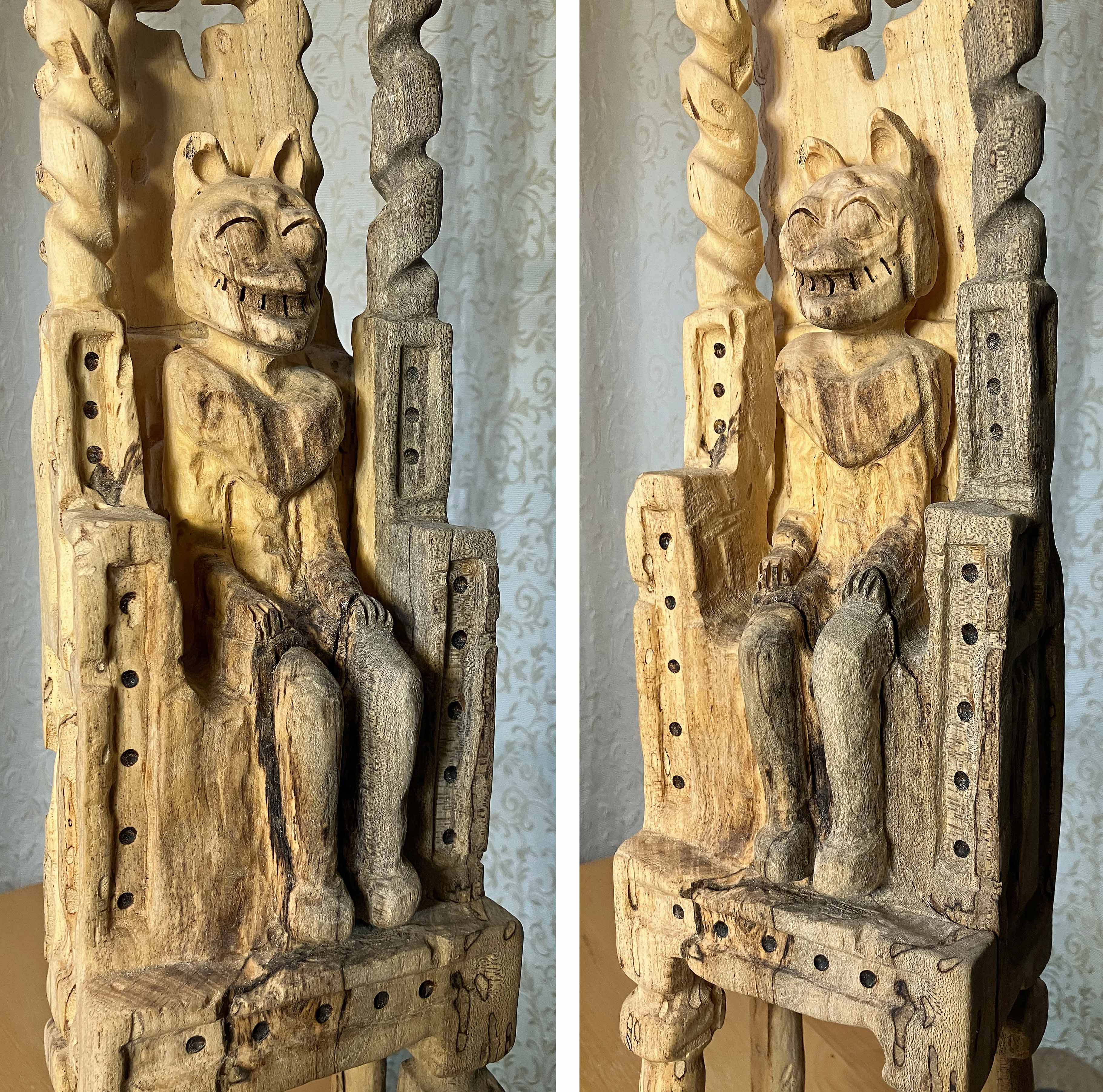 Above: The trickster–this one with a triumphant, mischievous grin, sitting upon a high-backed and ornate throne. How he got there is uncertain, even suspect, but he is obviously pleased to be there.